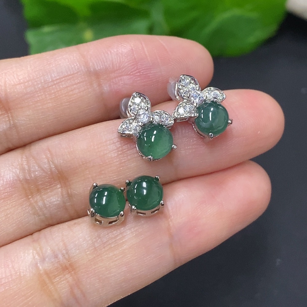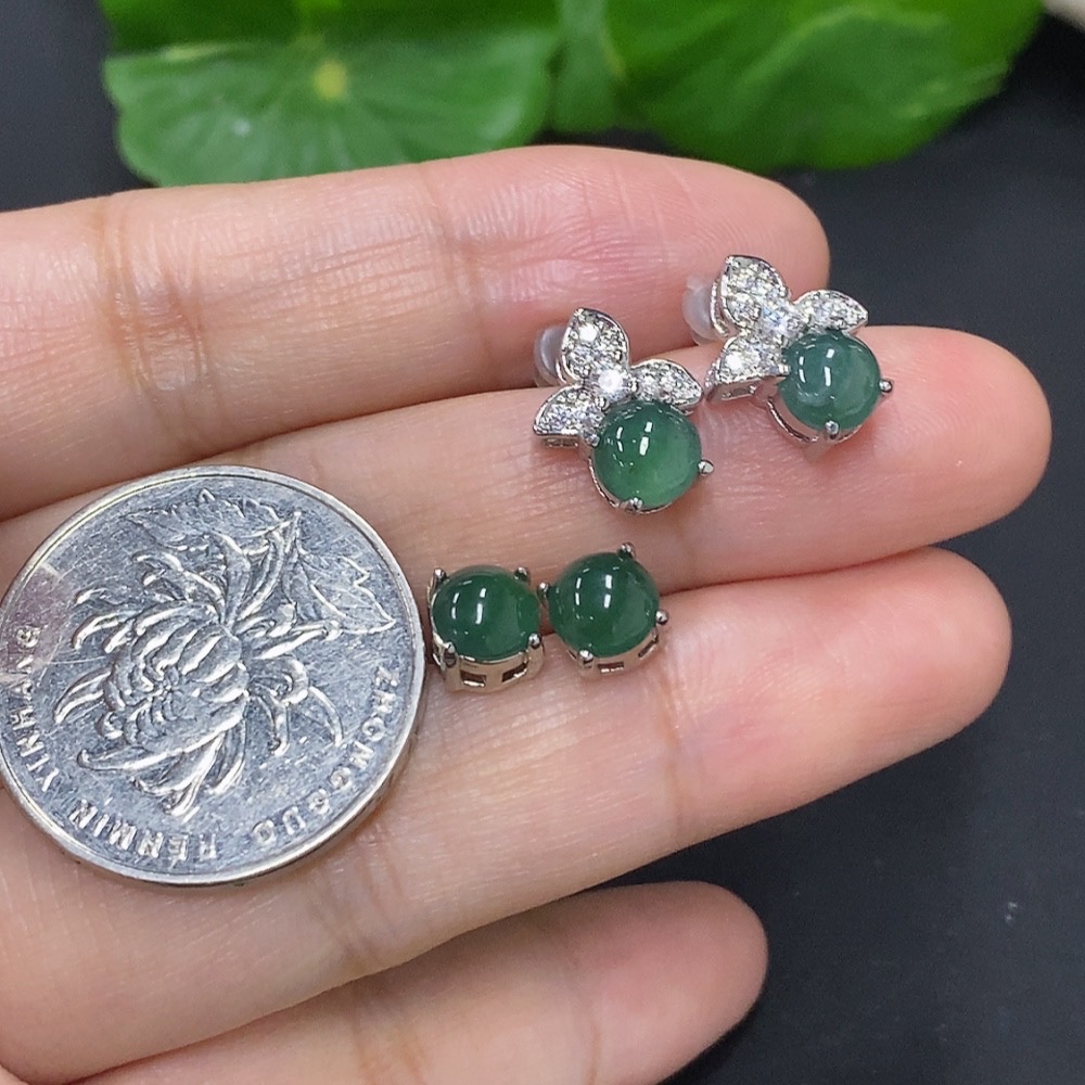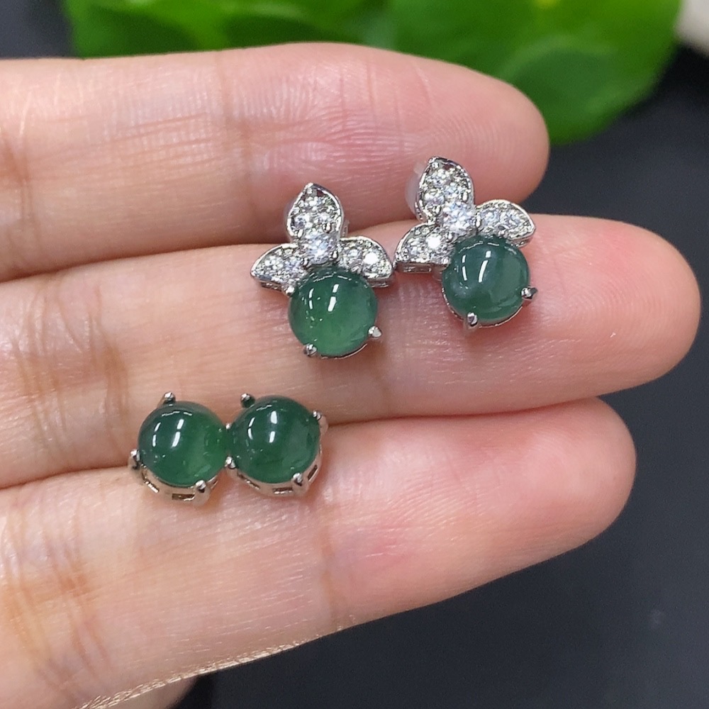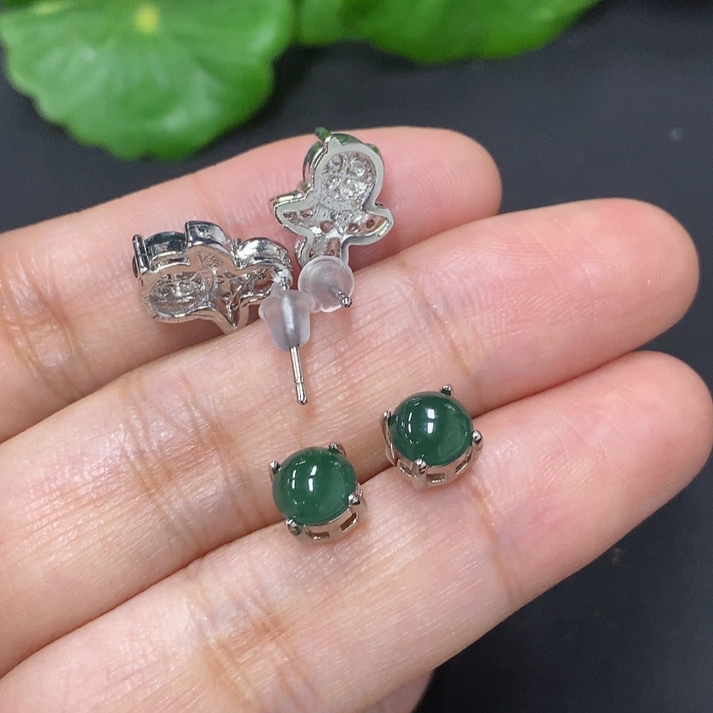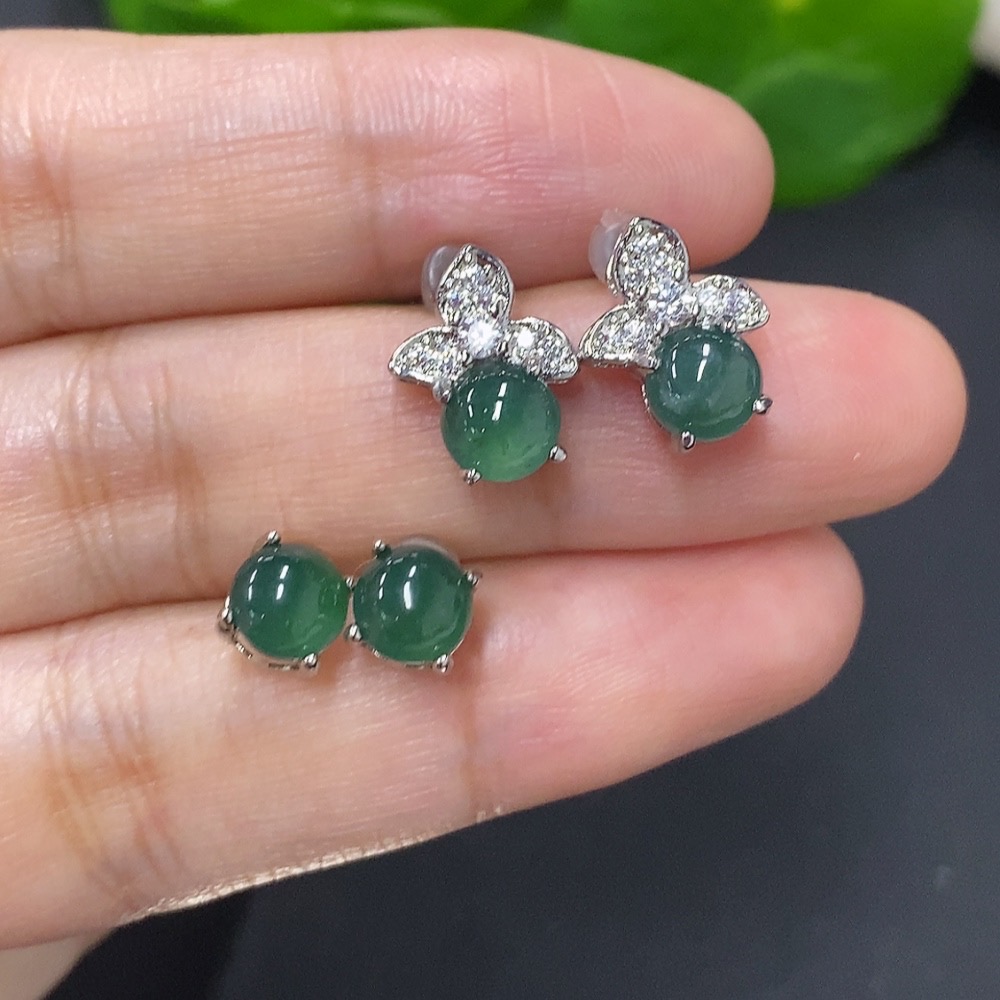 Jadeite Inlaid Earrings Sell as a Lot Non-Gold