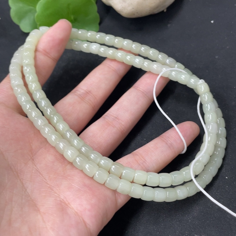 Hetian Jade Bead Necklace, Approx. 5.6mm, Total Weight Approx. 43.5g