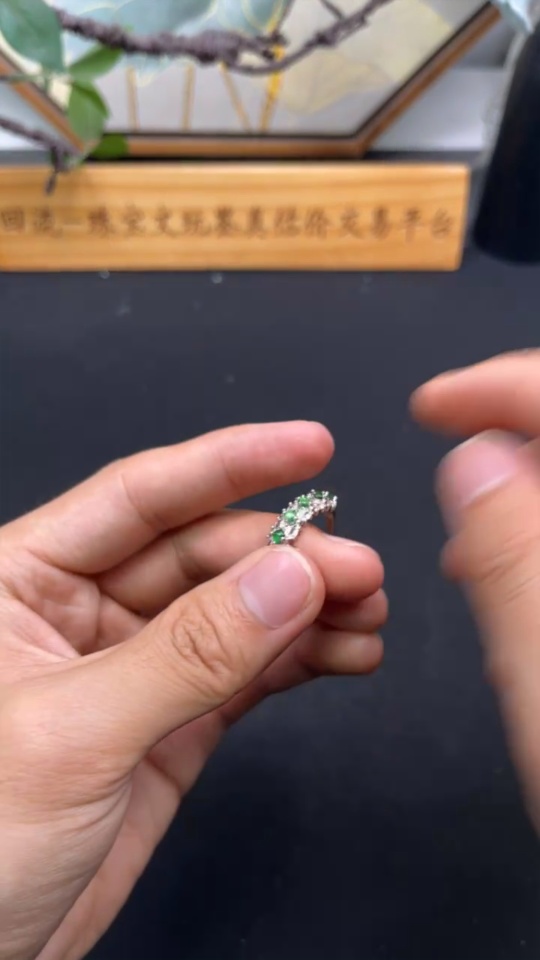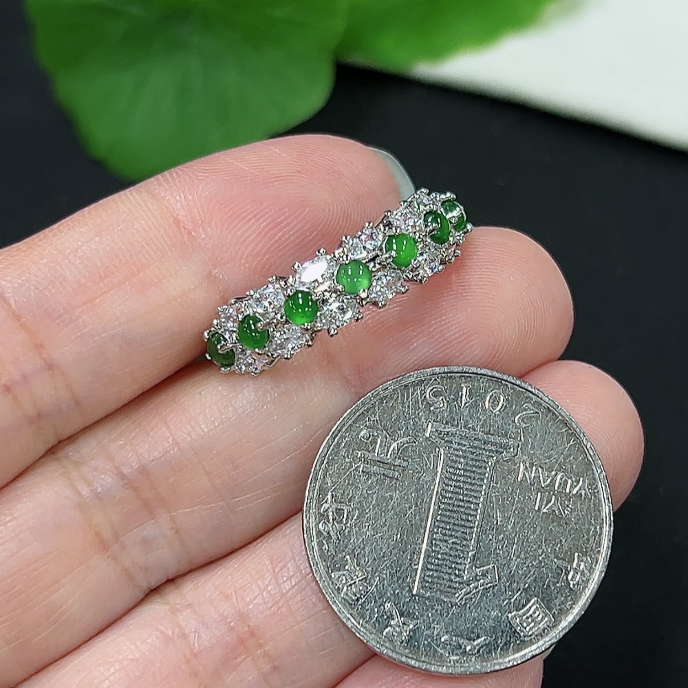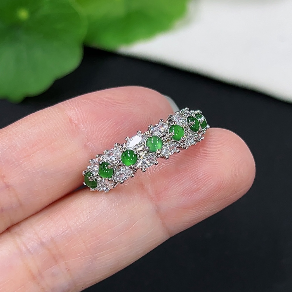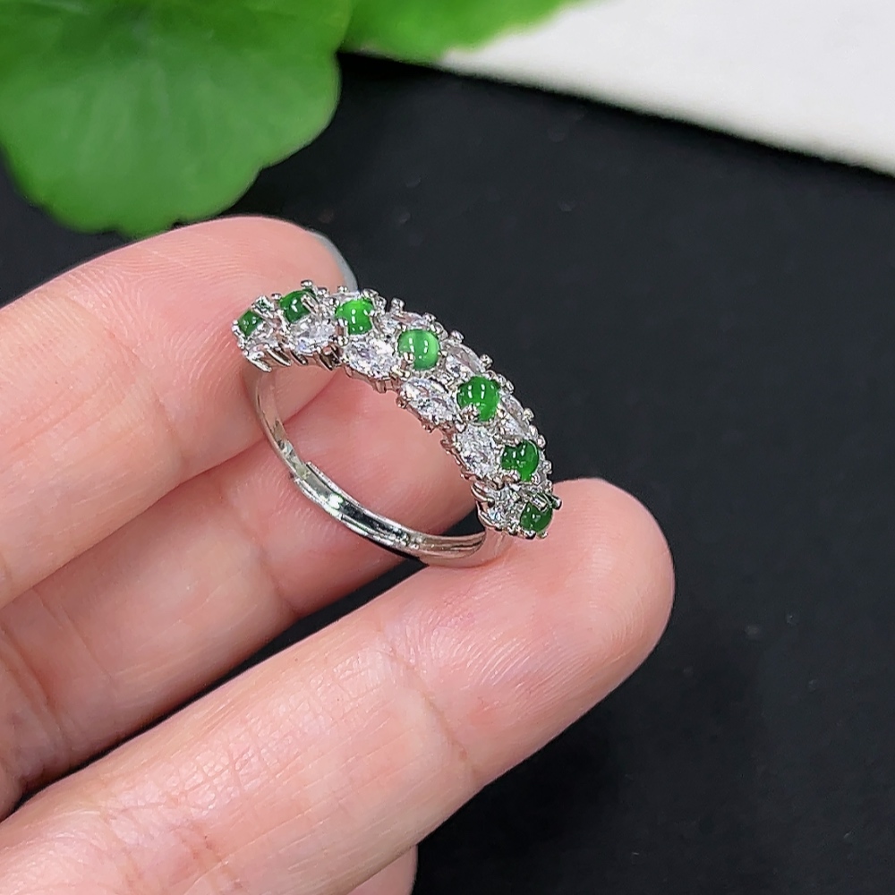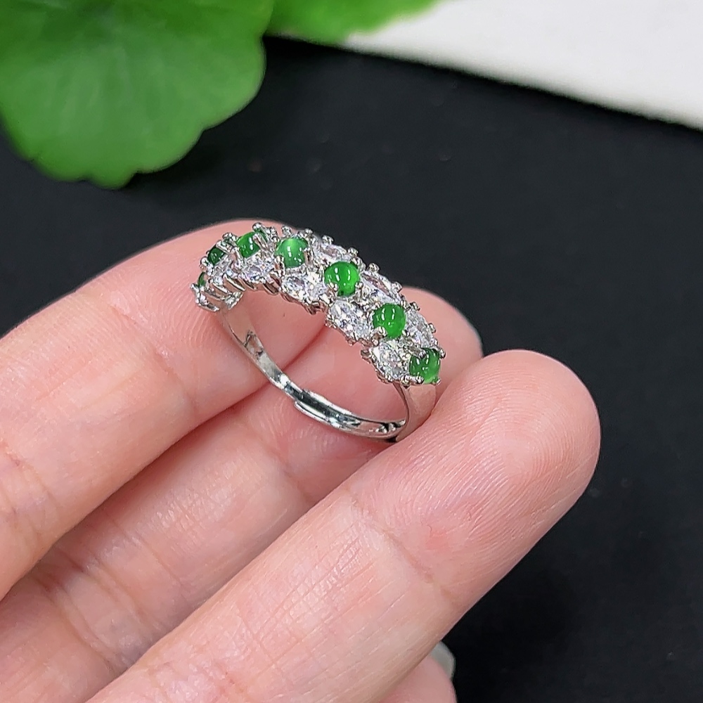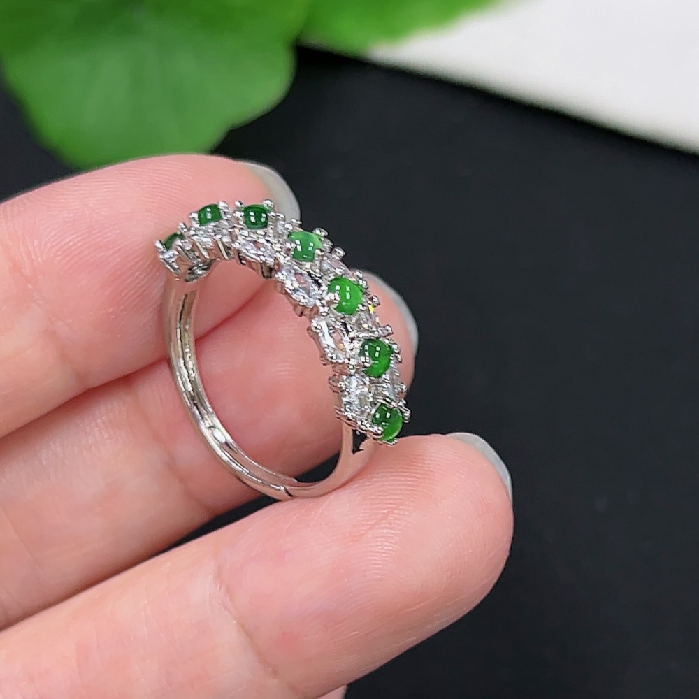 Jadeite Inlaid Ring Total weight about 2.5g non-gold inlaid adjustable