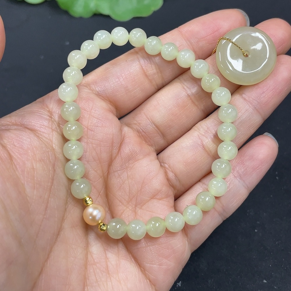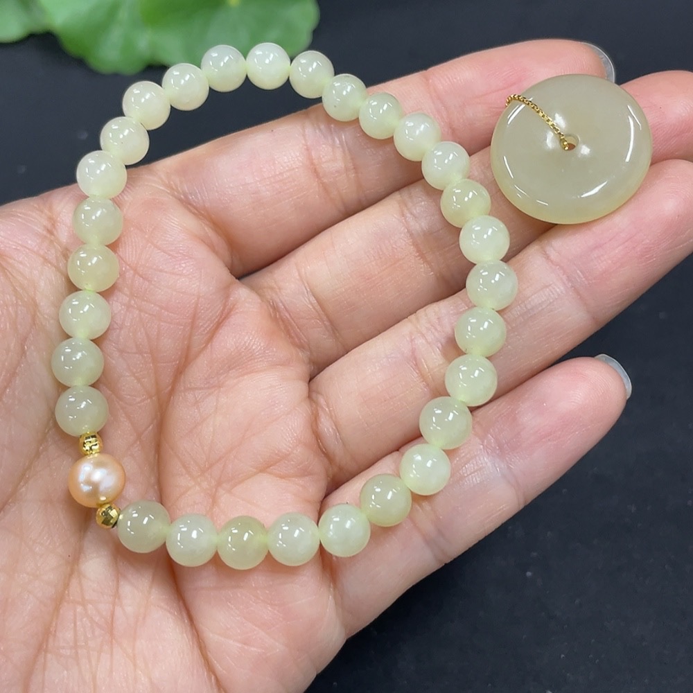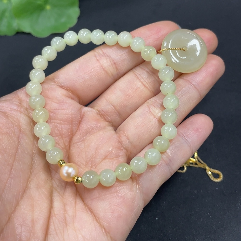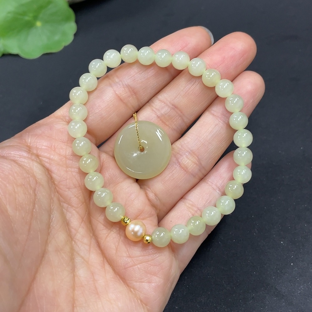 Hetian Jade Bracelet + Inlaid Pendant Non-Gold Total Weight Approx. (Including Chain) 13.3g
