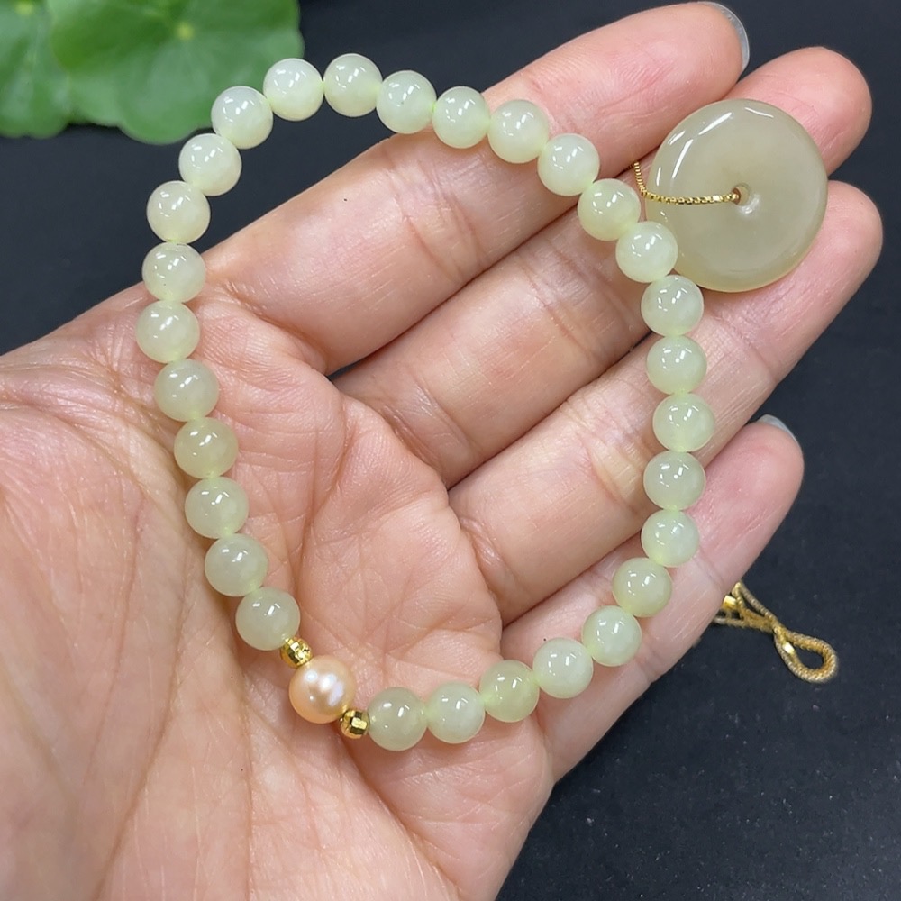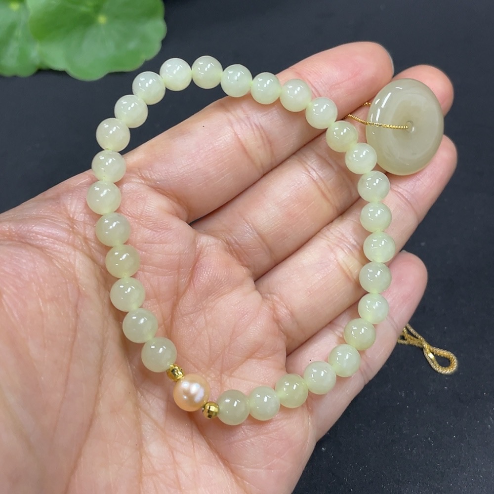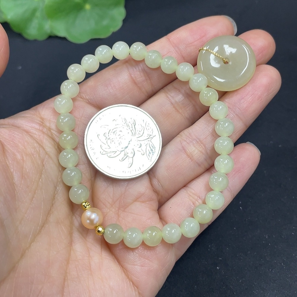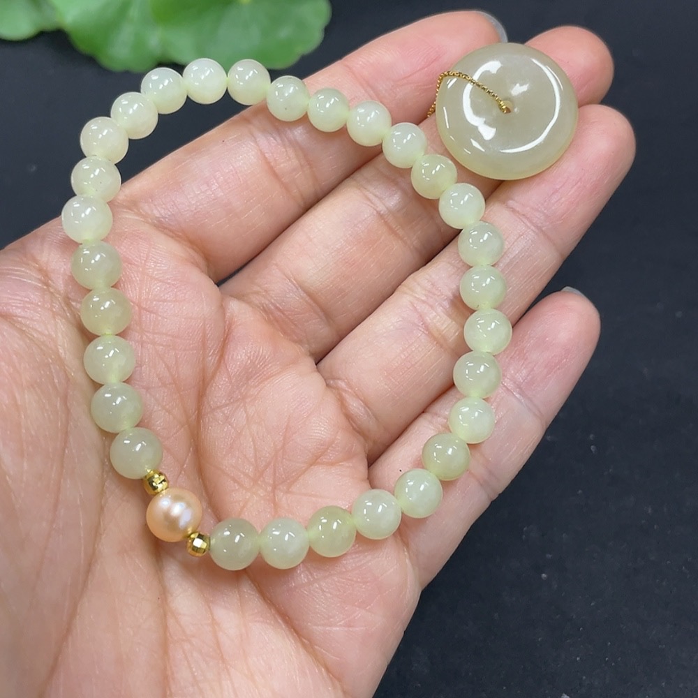 Hetian Jade Bracelet + Inlaid Pendant Non-Gold Total Weight Approx. (Including Chain) 13.3g