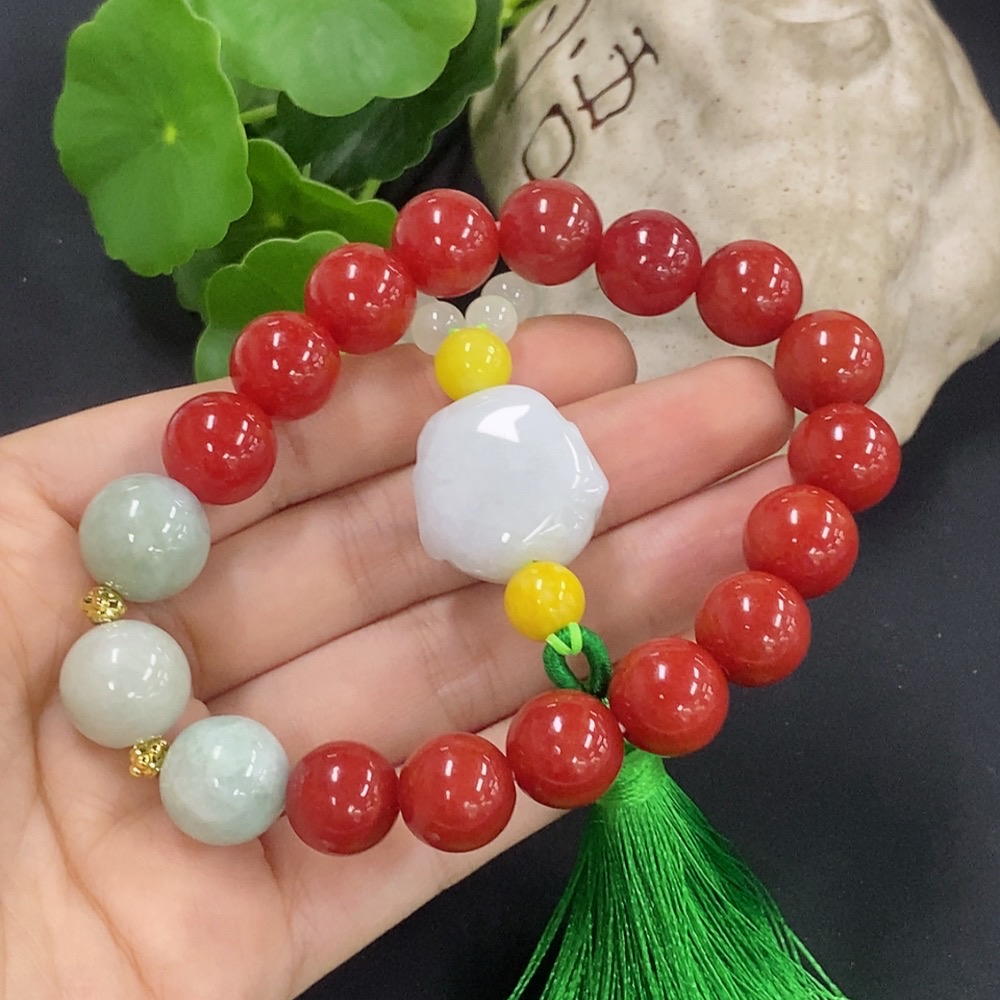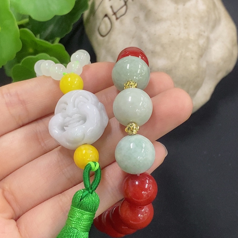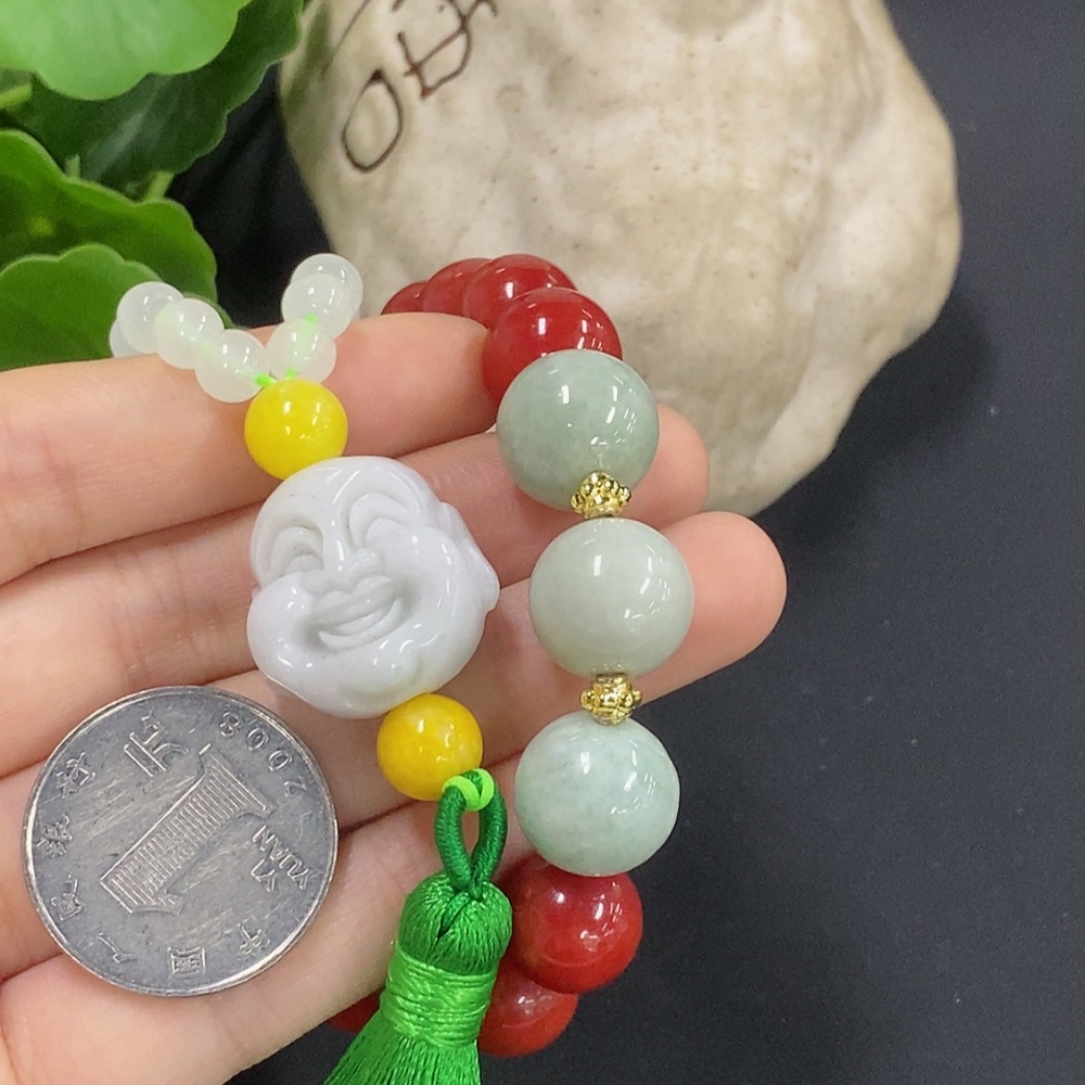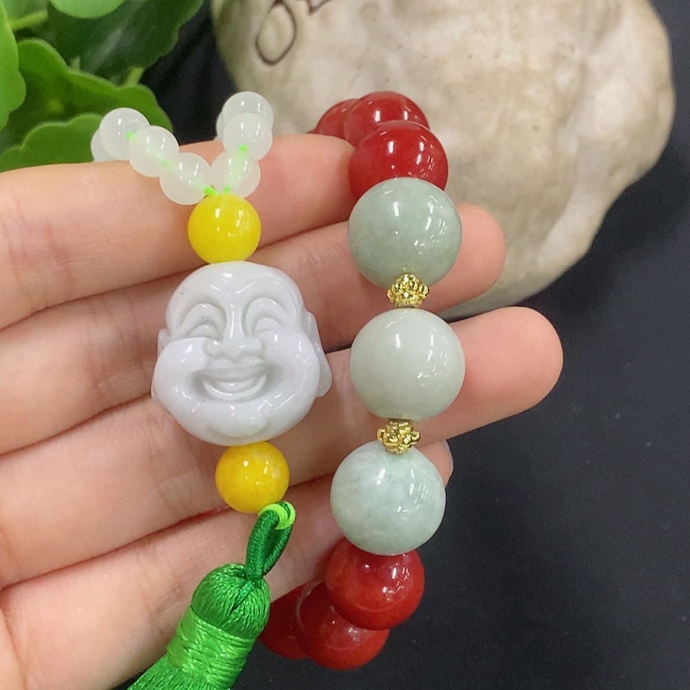 Jadeite Buddha Pendant/Bracelet with Non-A (Red Bead) Non-Gold Inlay