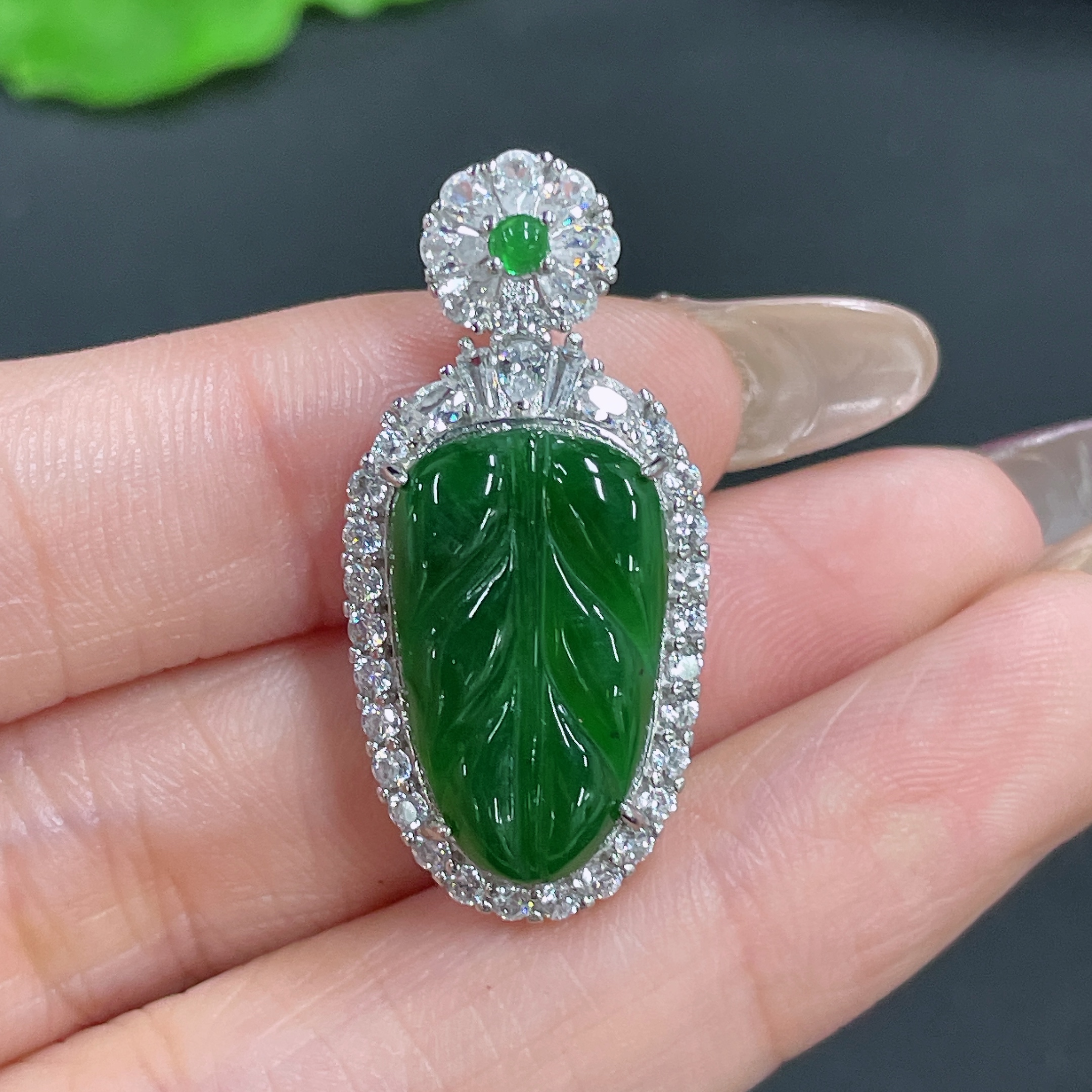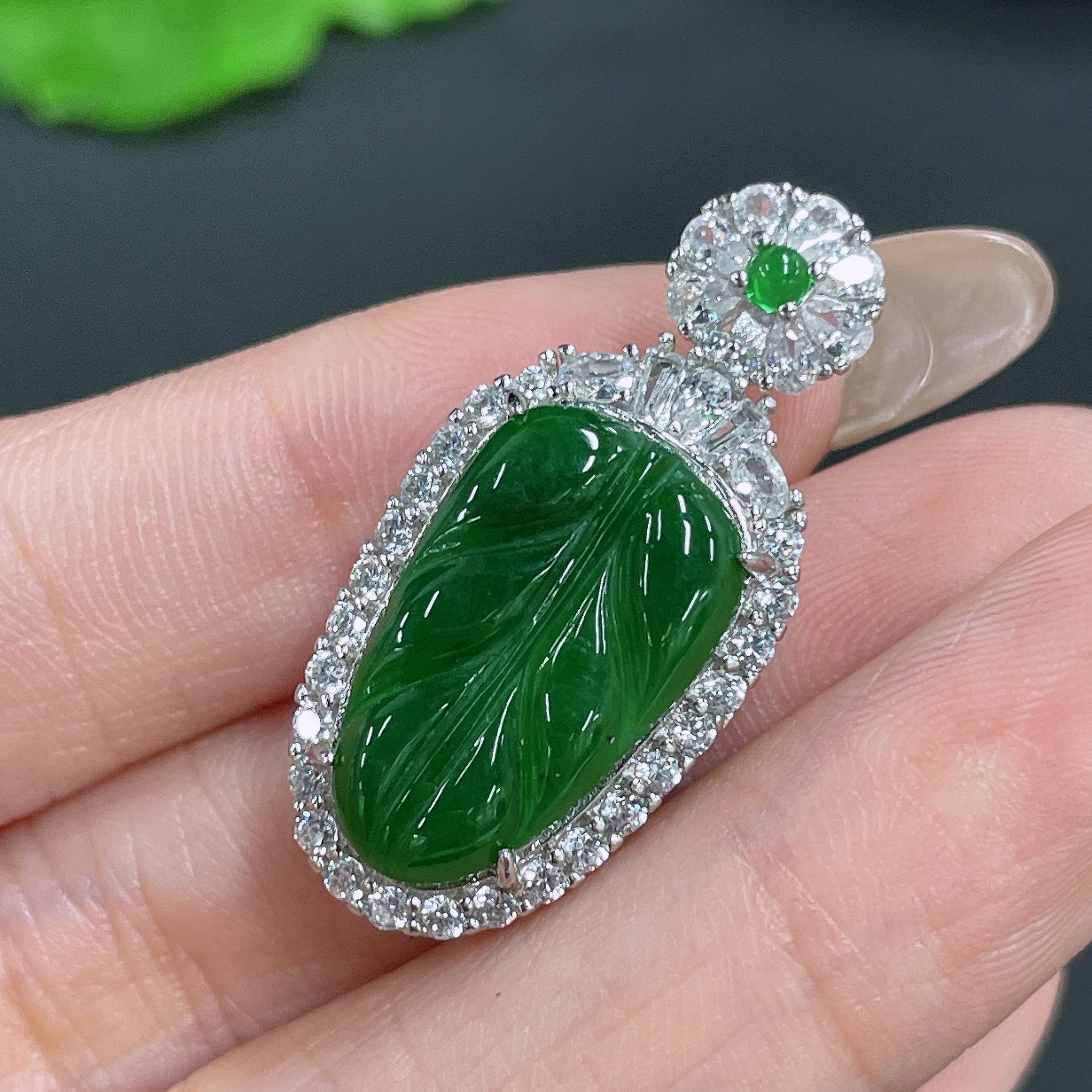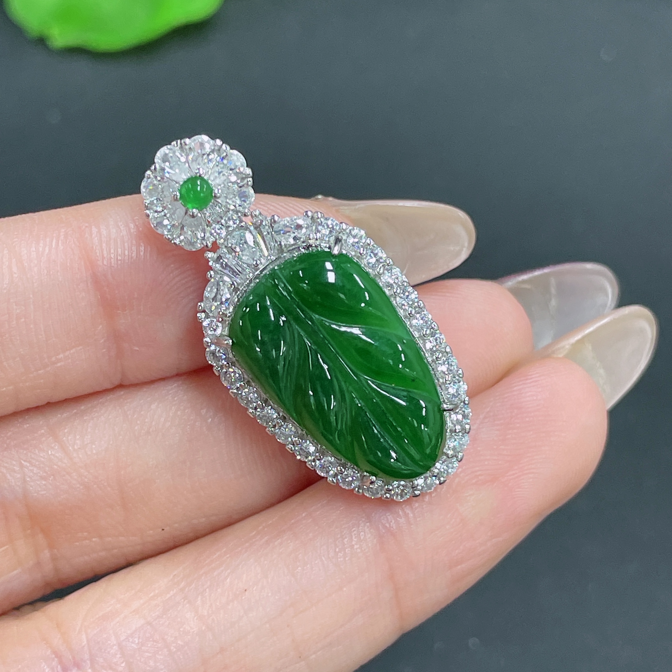 Jadeite Pendant Leaf Non-Gold Beads Non-A Total Weight Approx. 4.94g