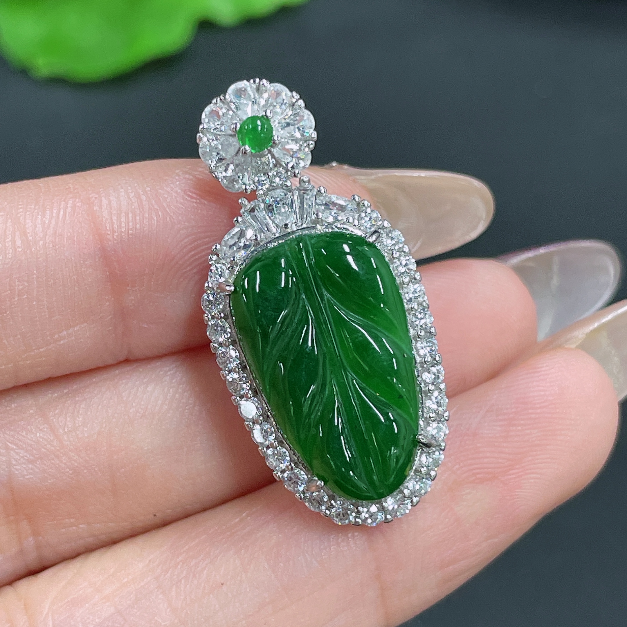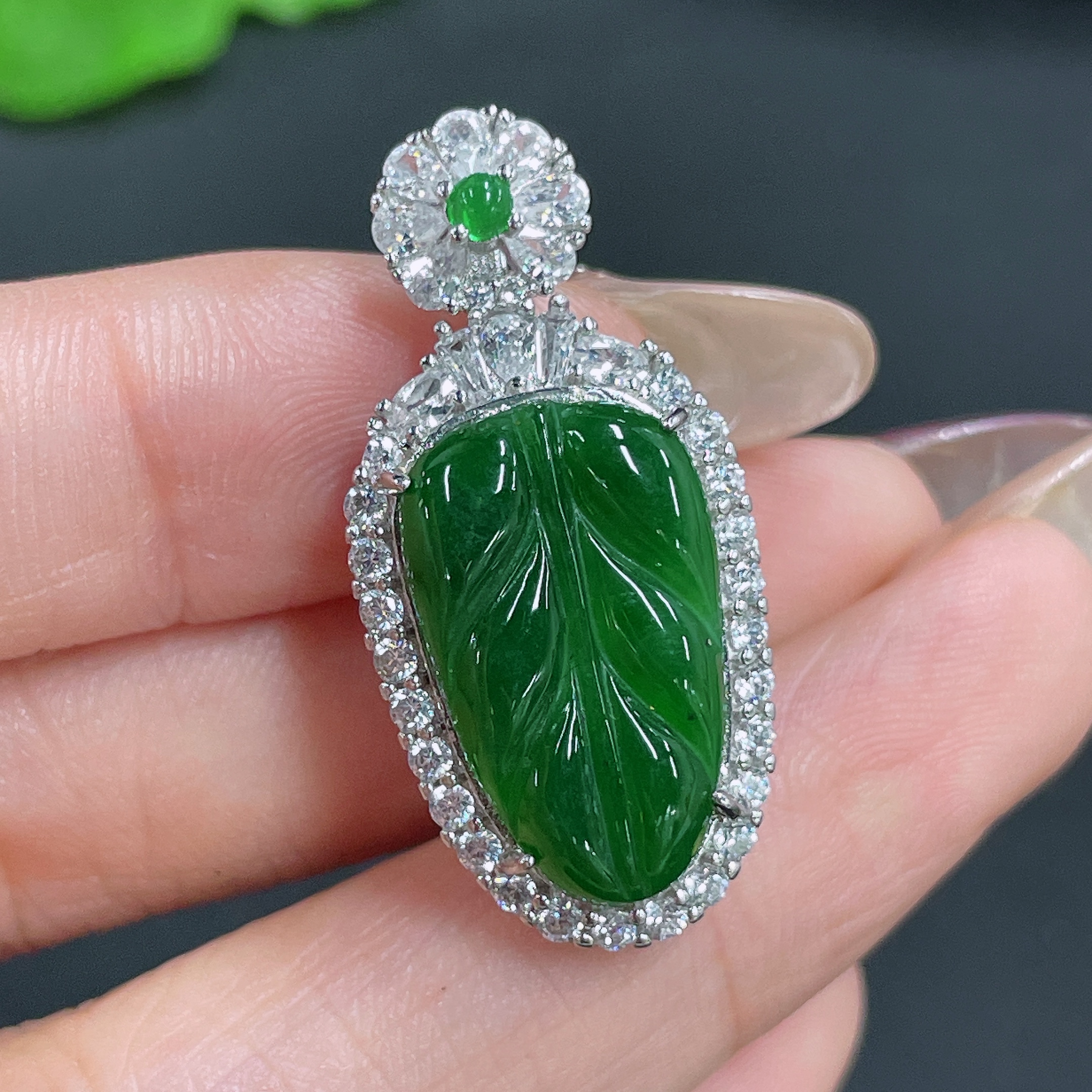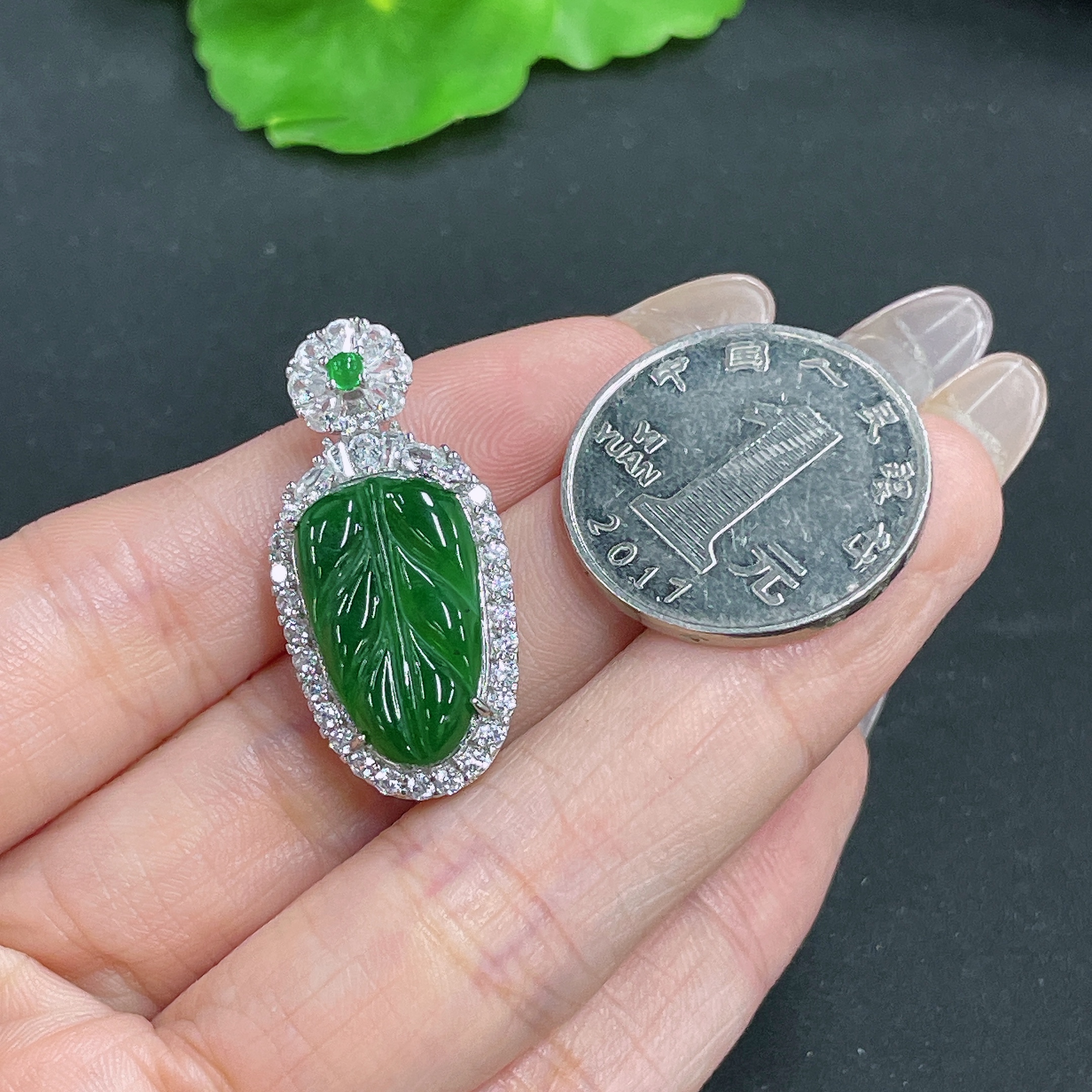 Jadeite Pendant Leaf Non-Gold Beads Non-A Total Weight Approx. 4.94g