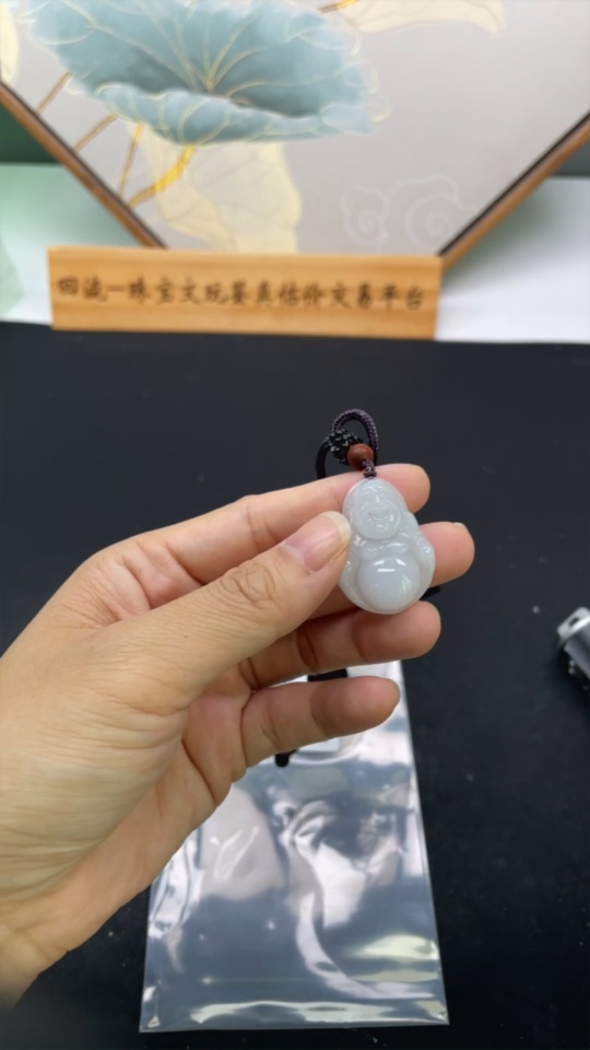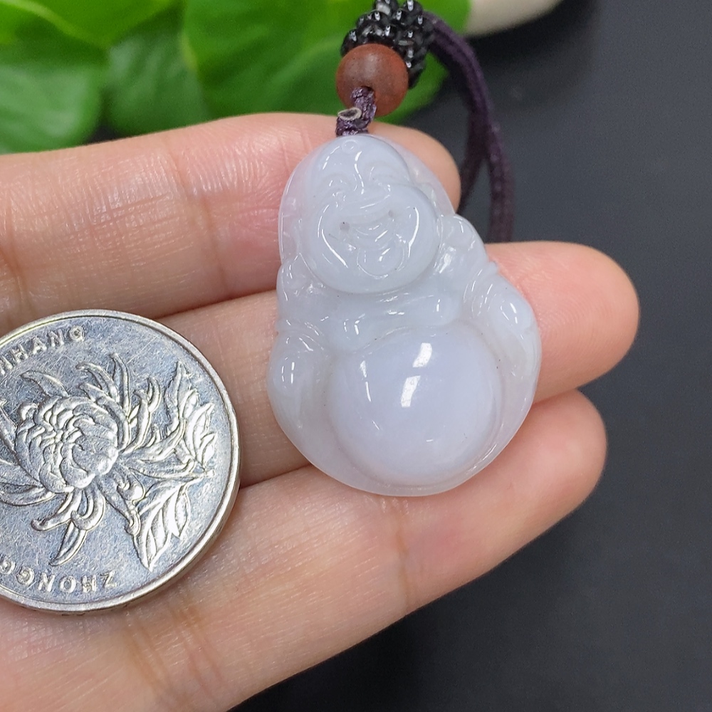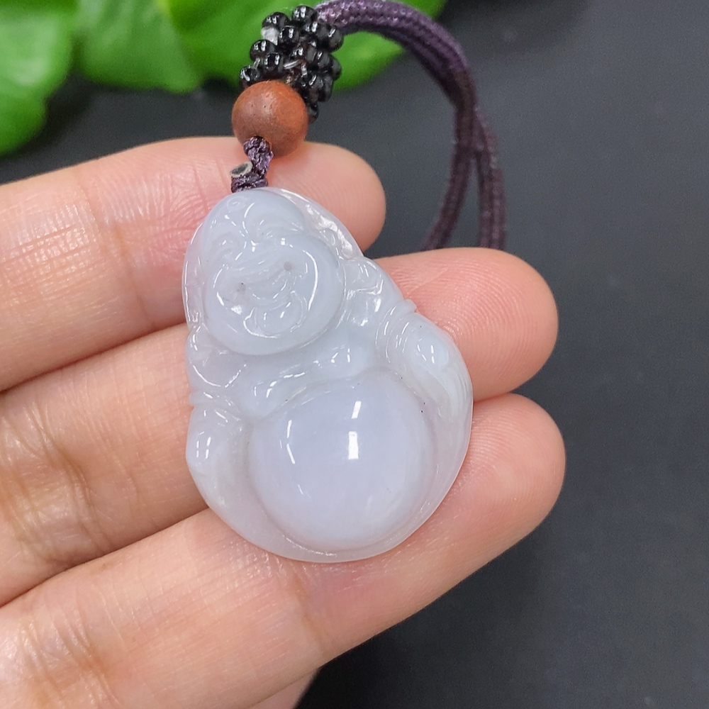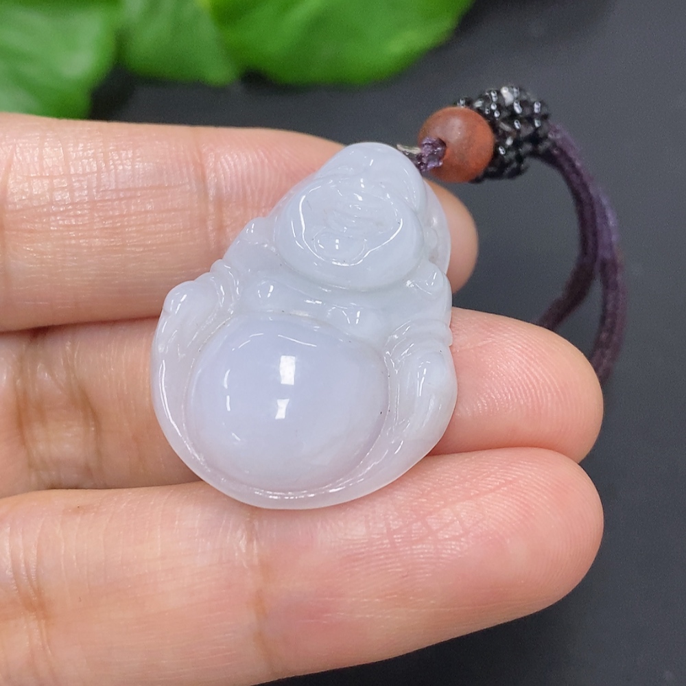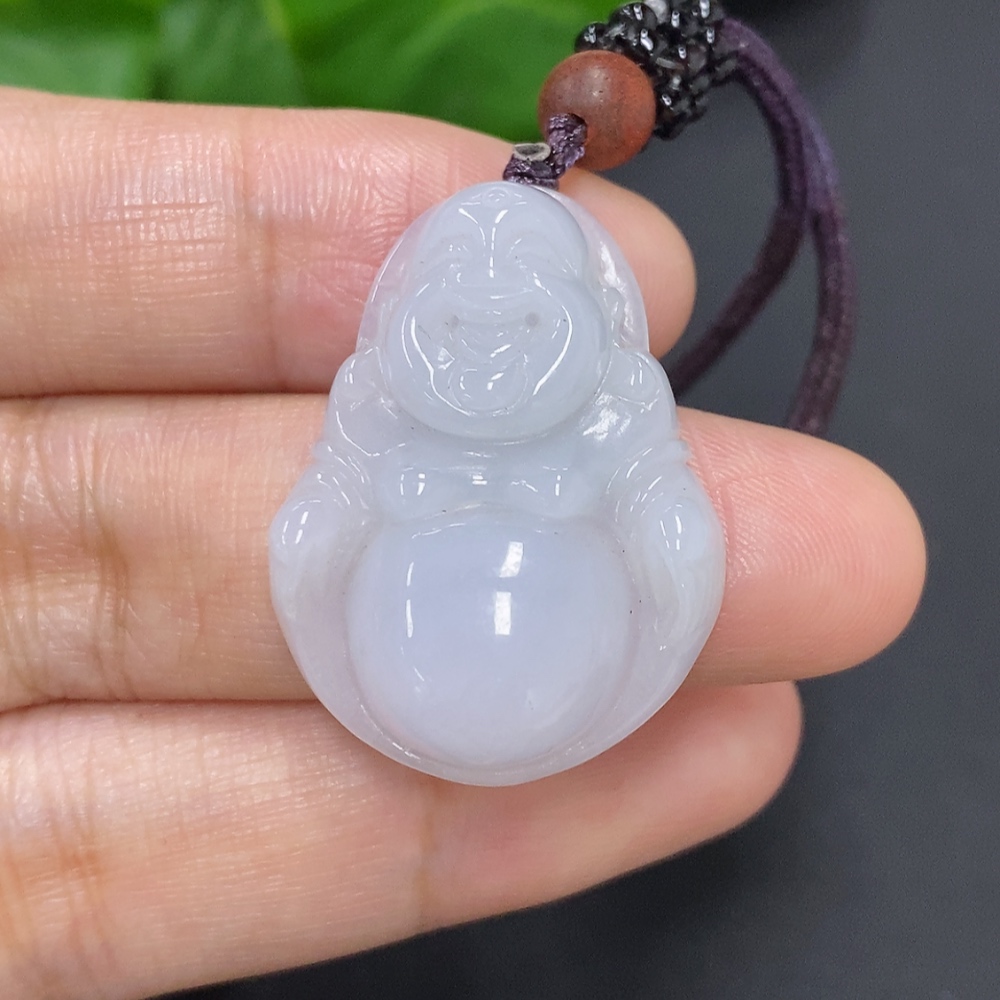Jadeite Buddha Pendant, Total Weight Including Rope Approximately 9.3g