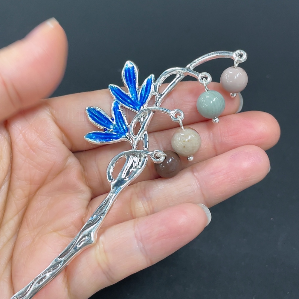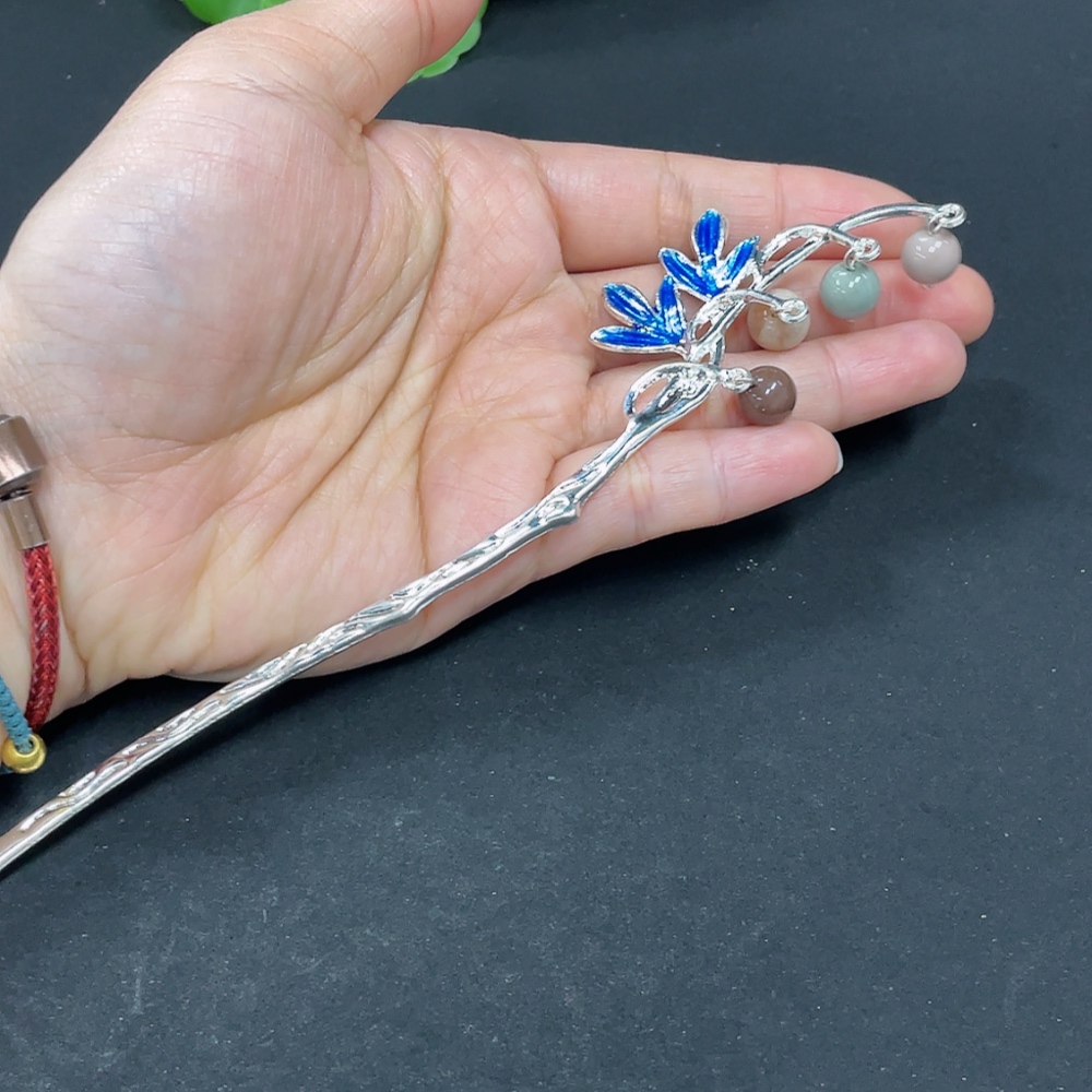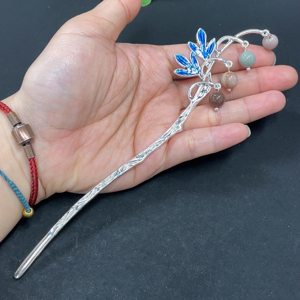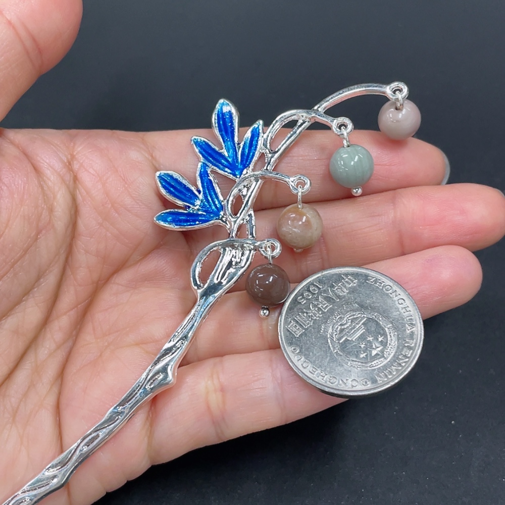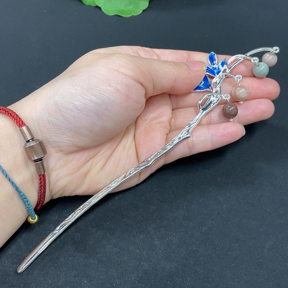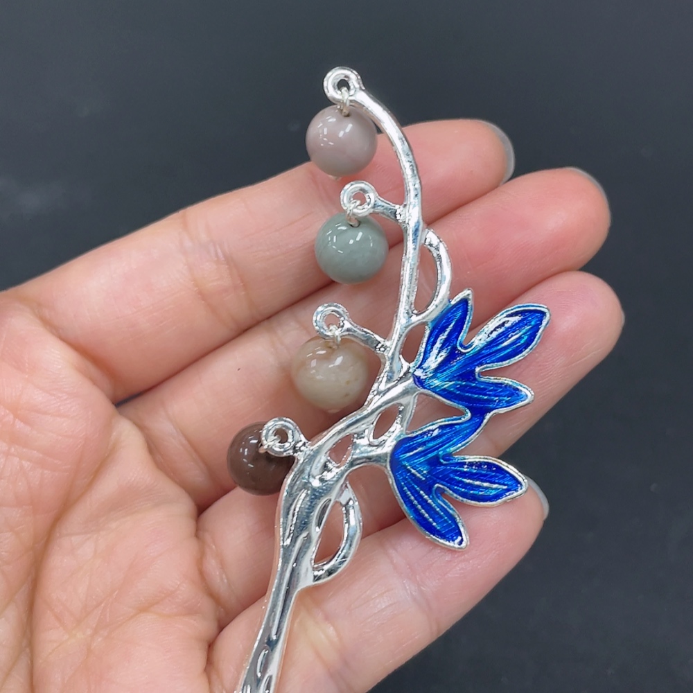 Alashan Agate Hairpin, Non-Gold Inlaid, Total Weight Approx. 12.6g, Contains Other Mineral Components