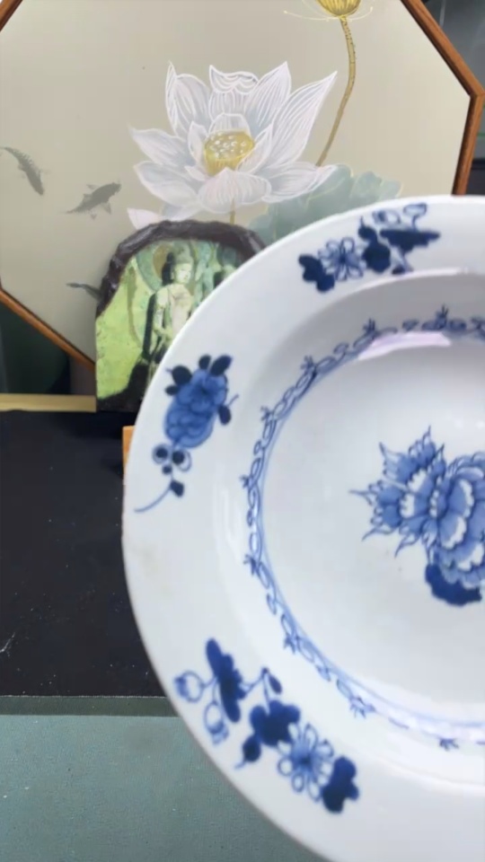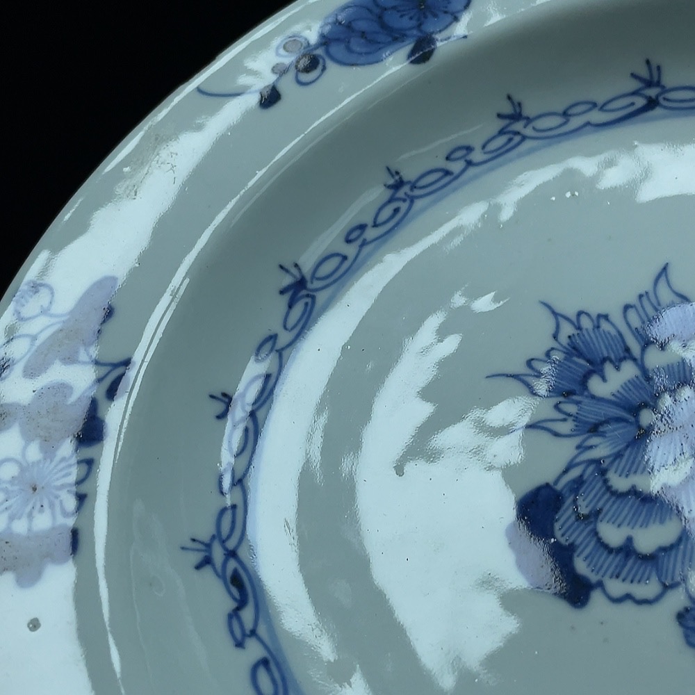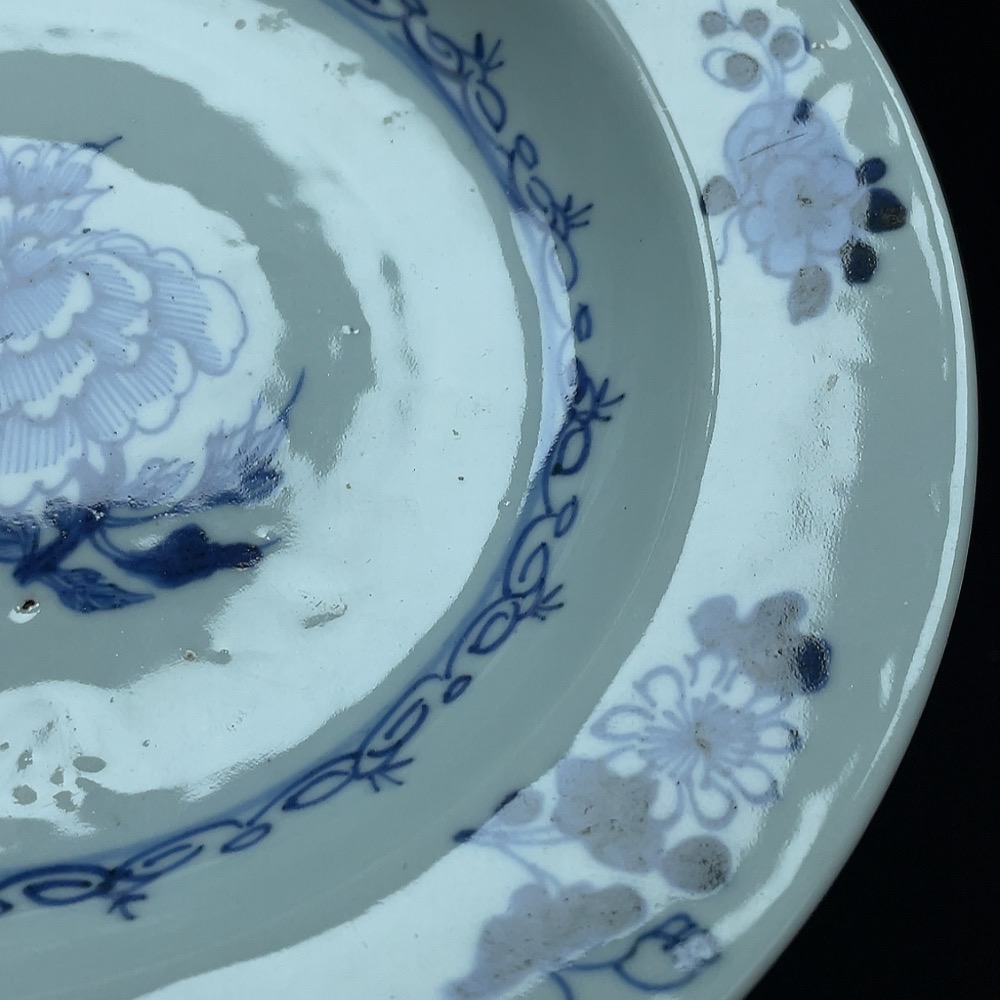 Ceramic Flaking Qing Dynasty Blue and White Floral Plate