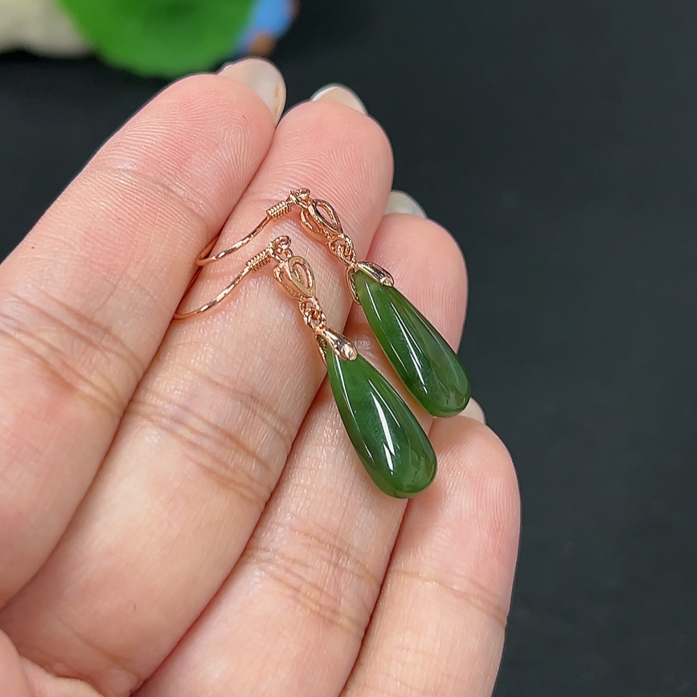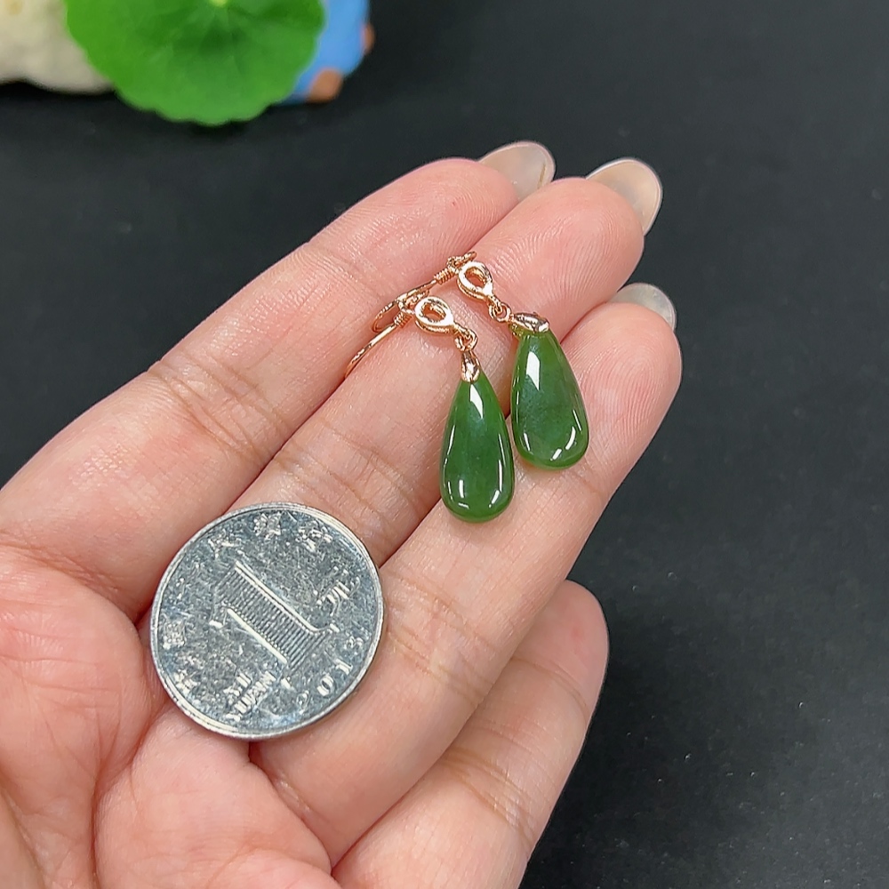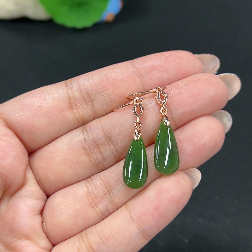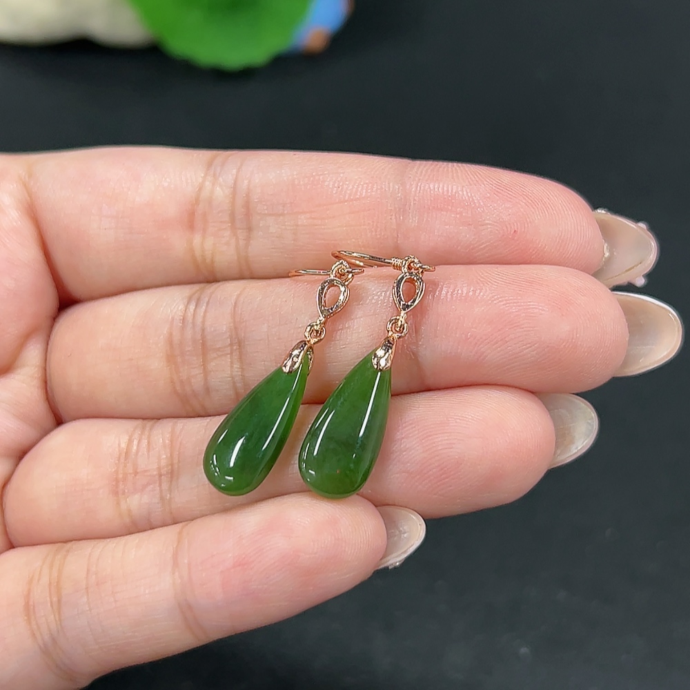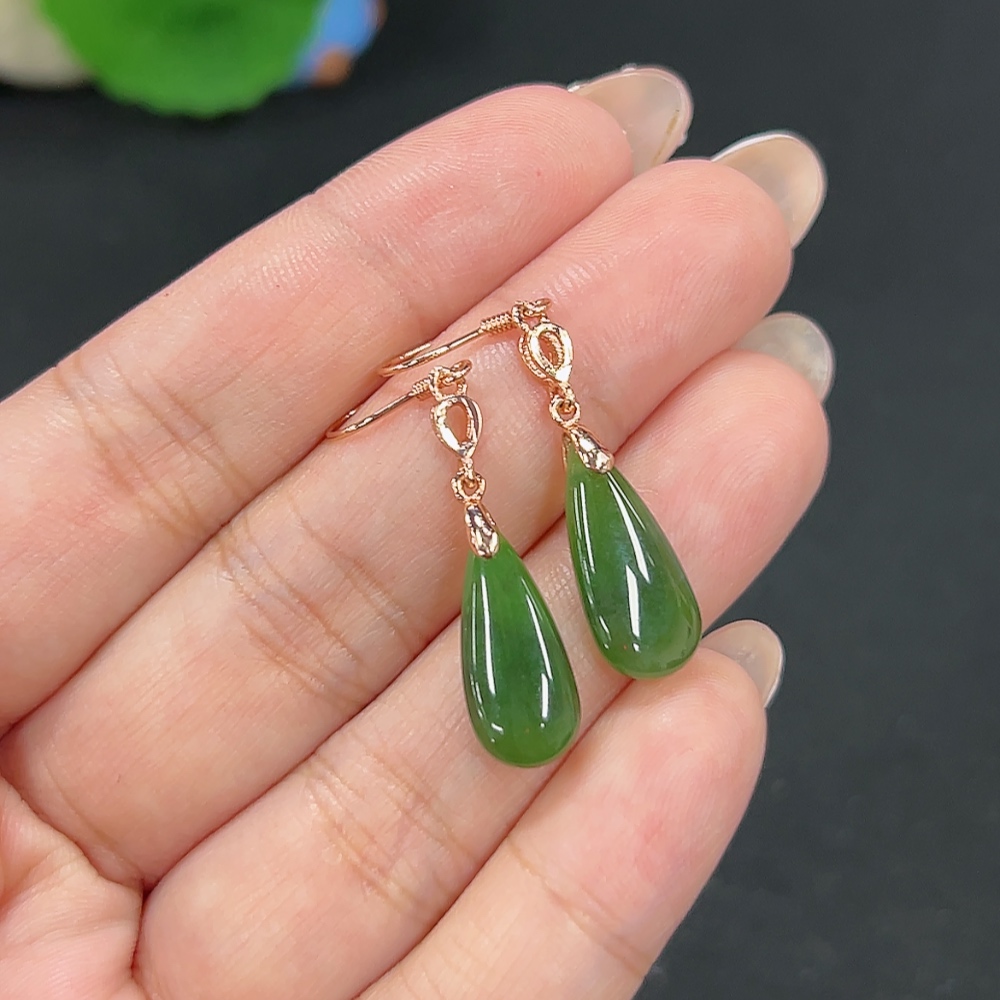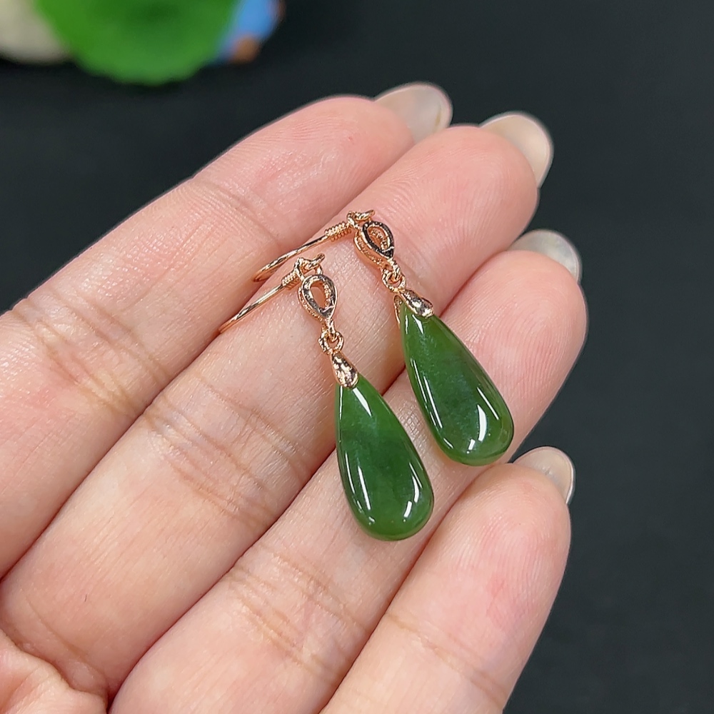 Hetian Jade Inlaid Earrings Drop Total Weight About 2.8g Non-Gold