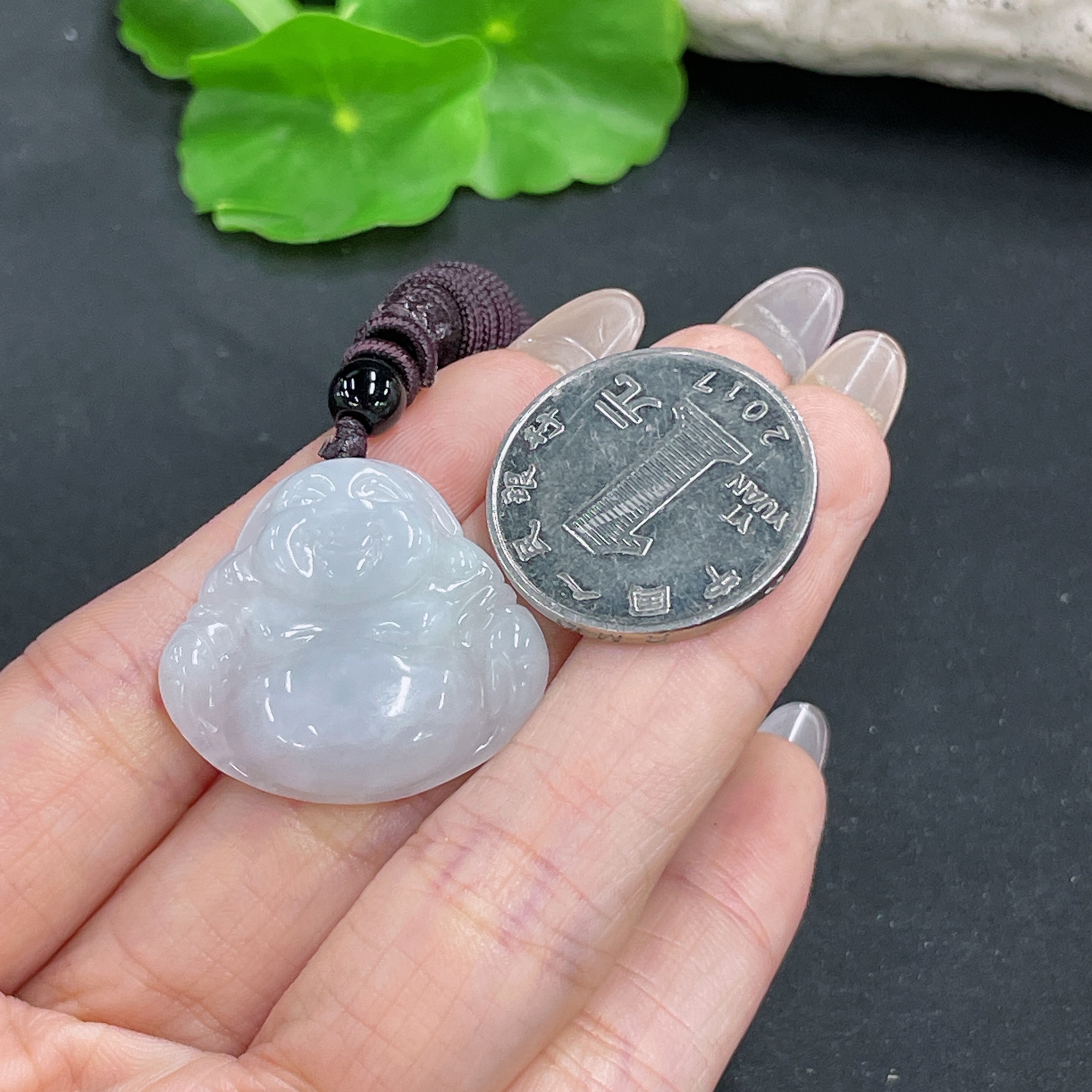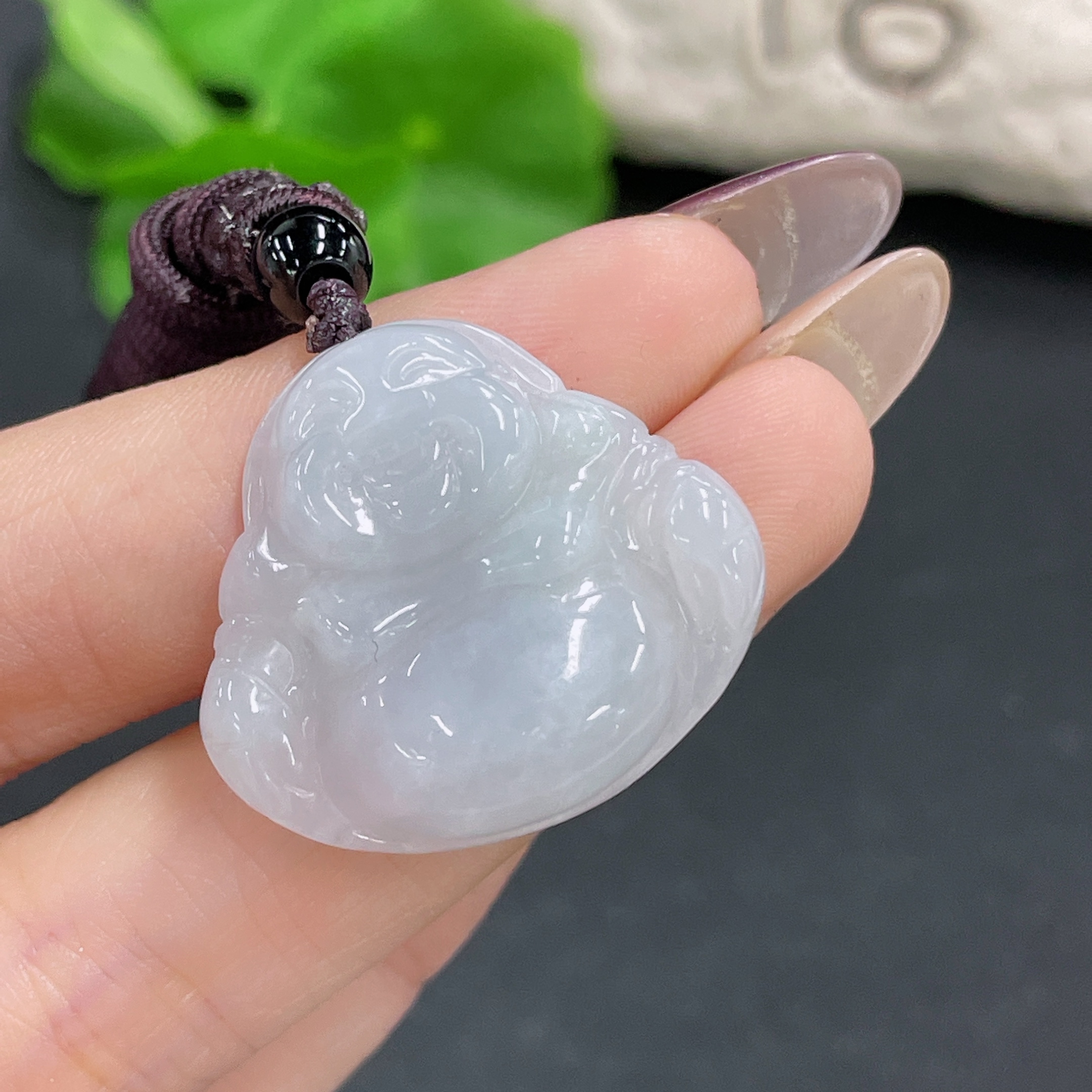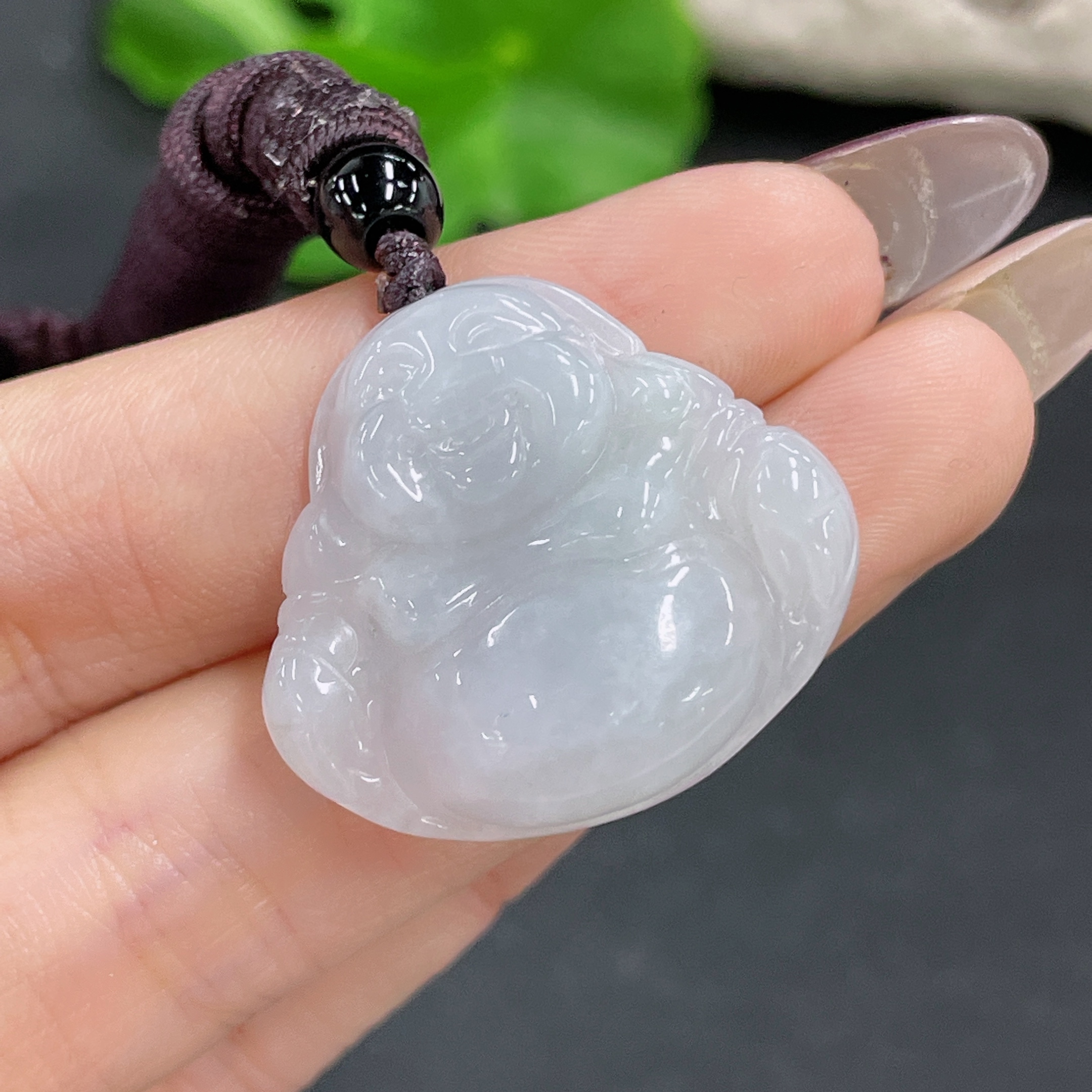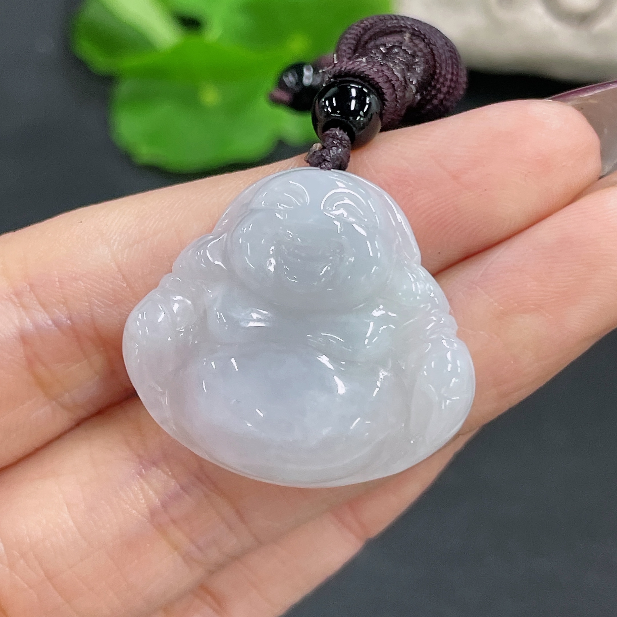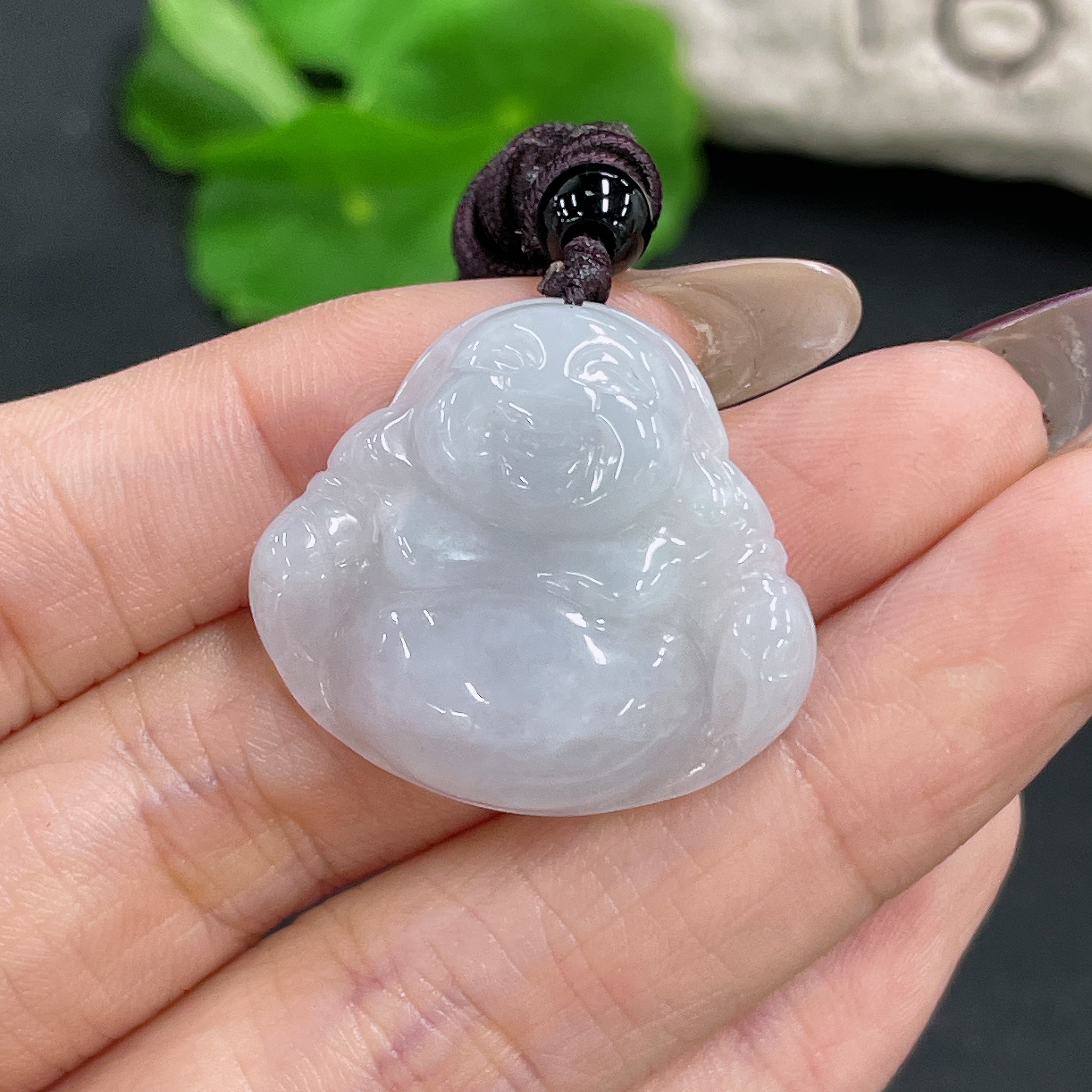 Jadeite Buddha Pendant Total Weight Approx. 9.9g (Including Cord Weight) (Matching Beads Not Grade A)