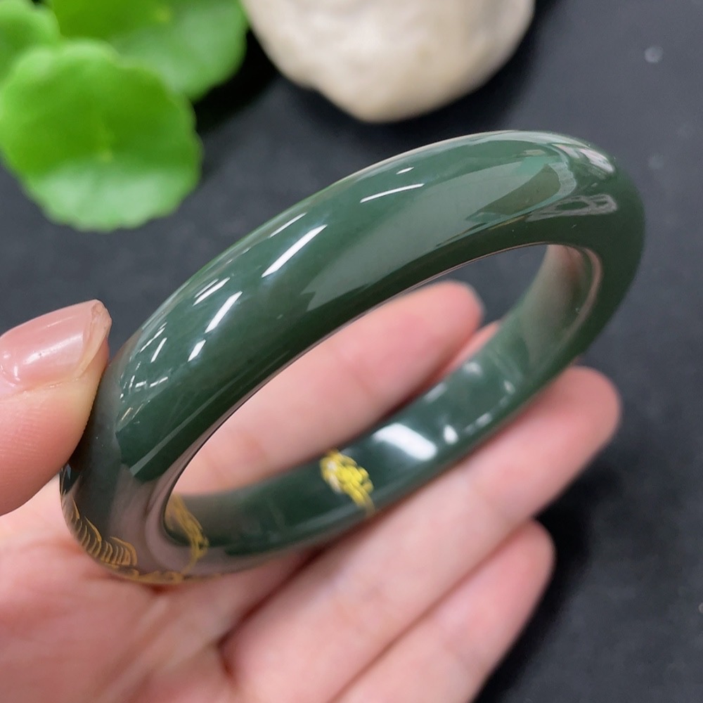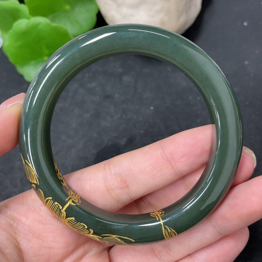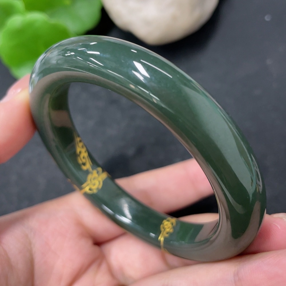 Hetian Jade Round Bracelet Size 55.2 Total Weight Approx. 52.5g with Crack