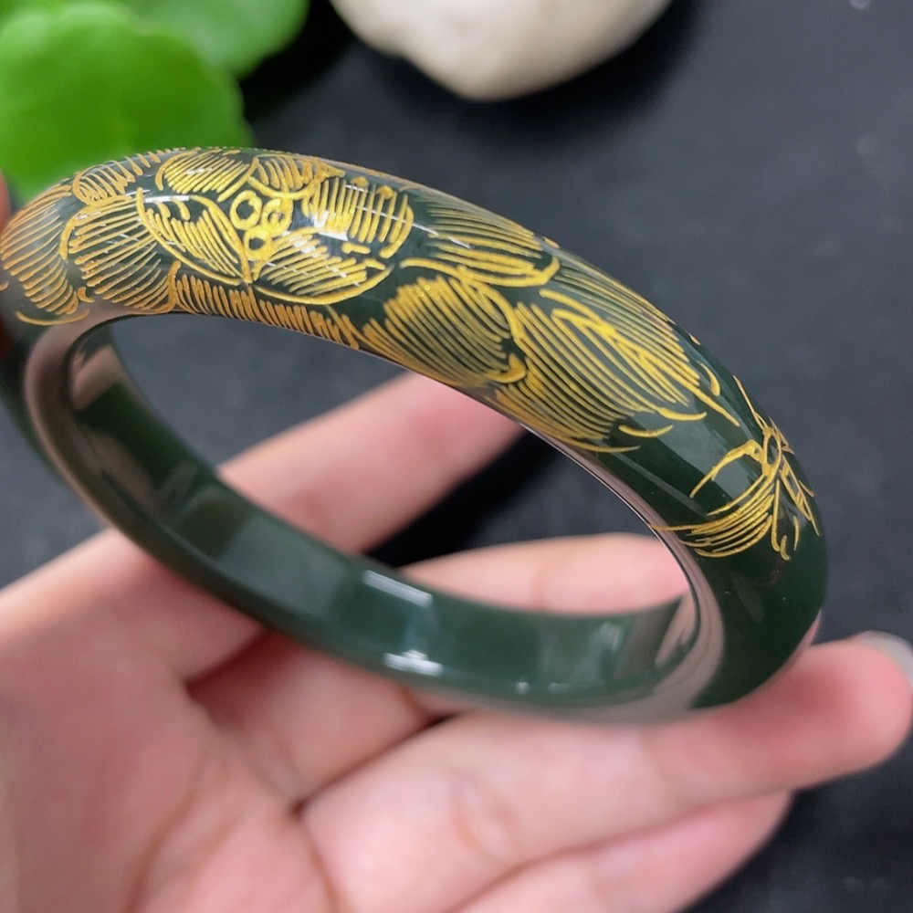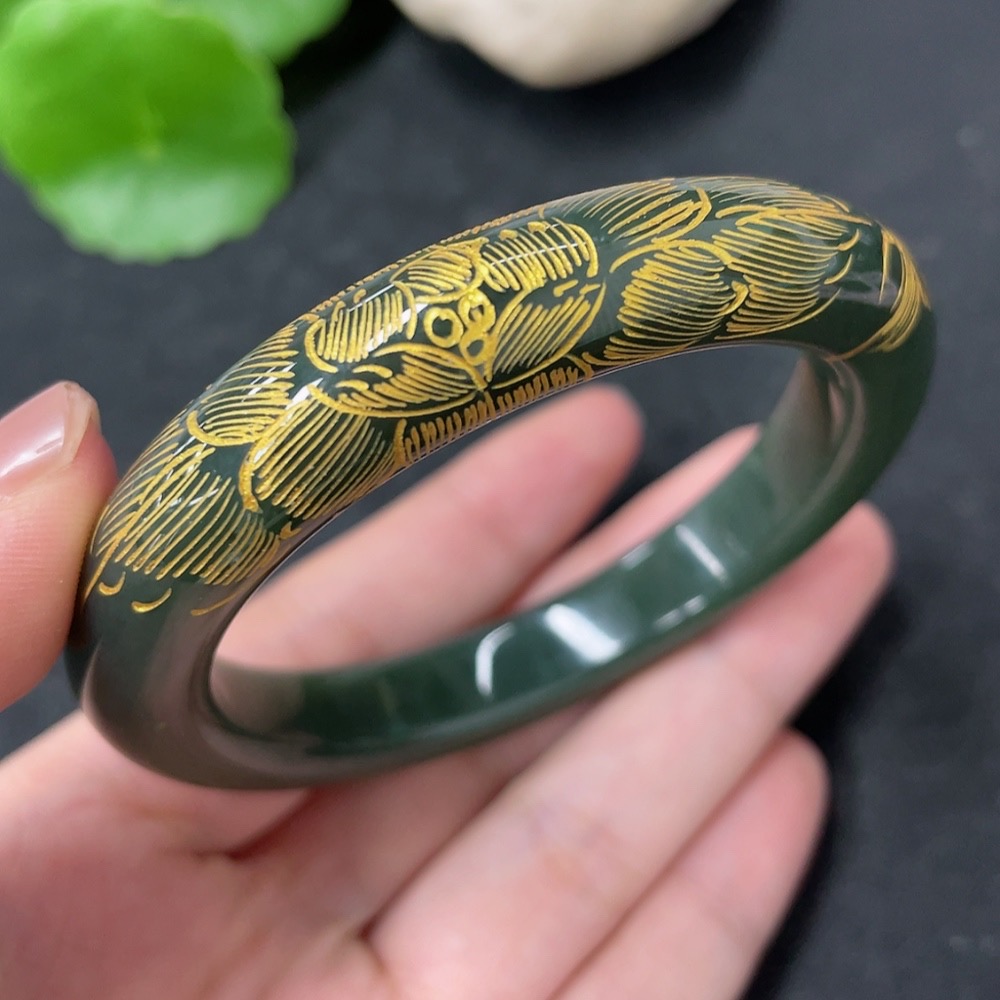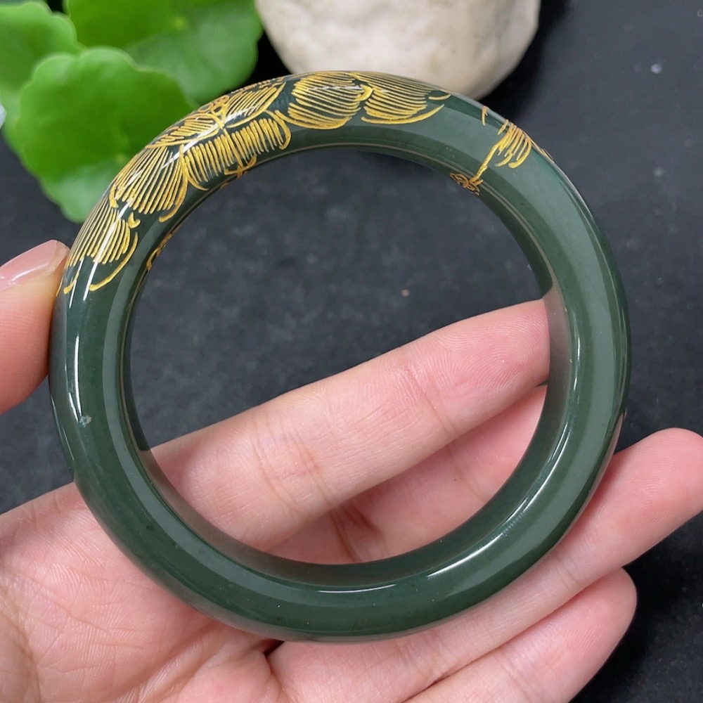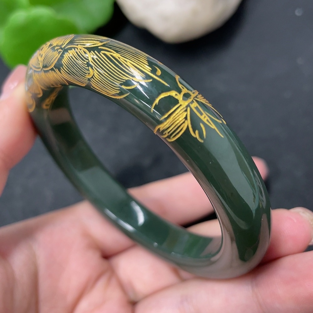Hetian Jade Round Bracelet Size 55.2 Total Weight Approx. 52.5g with Crack