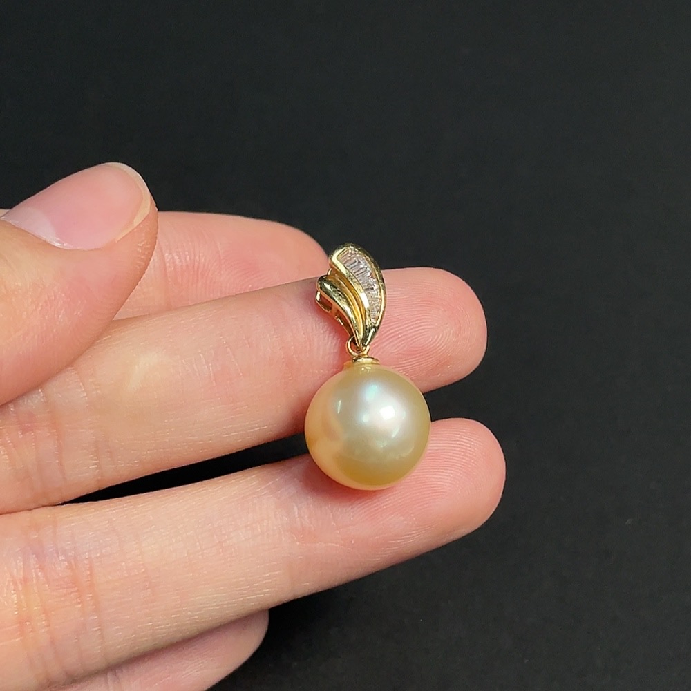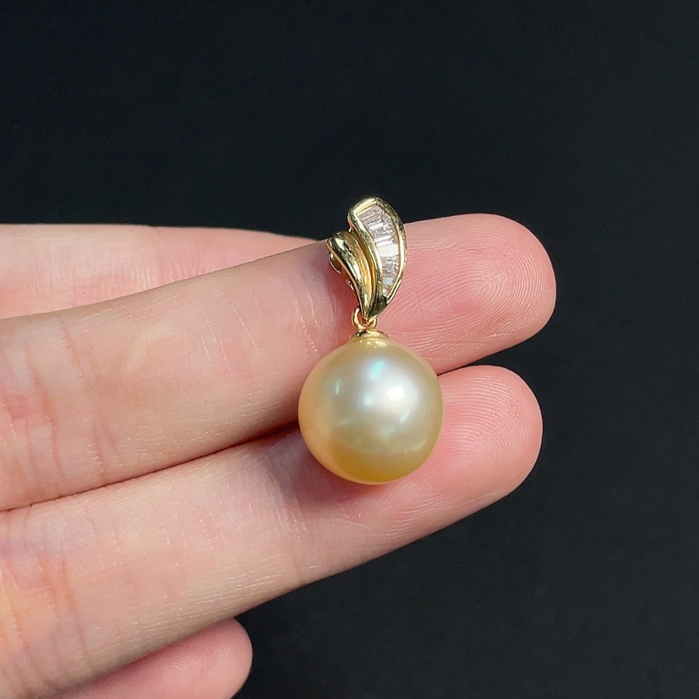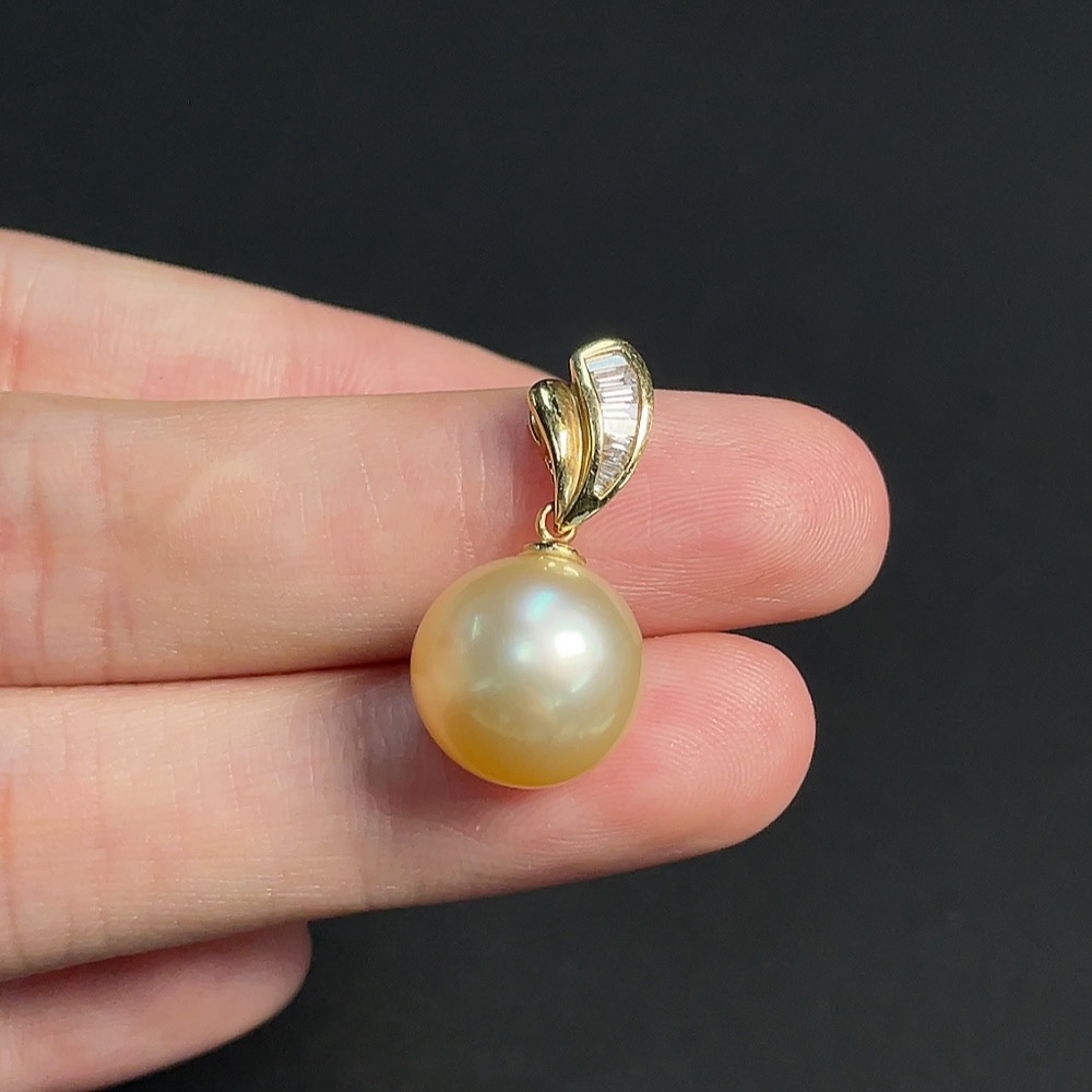 18k seawater pearl pendant with undetermined color origin, accented with diamonds, total weight approximately 3.37g, size about 11.9mm