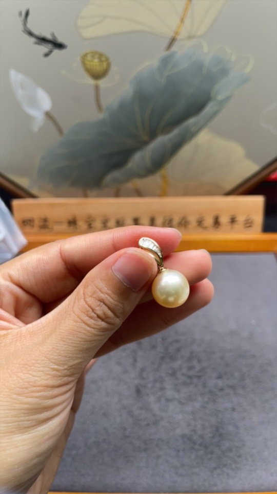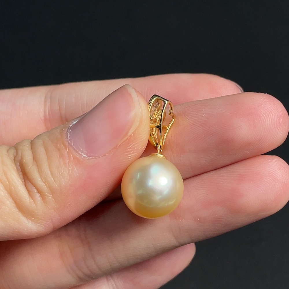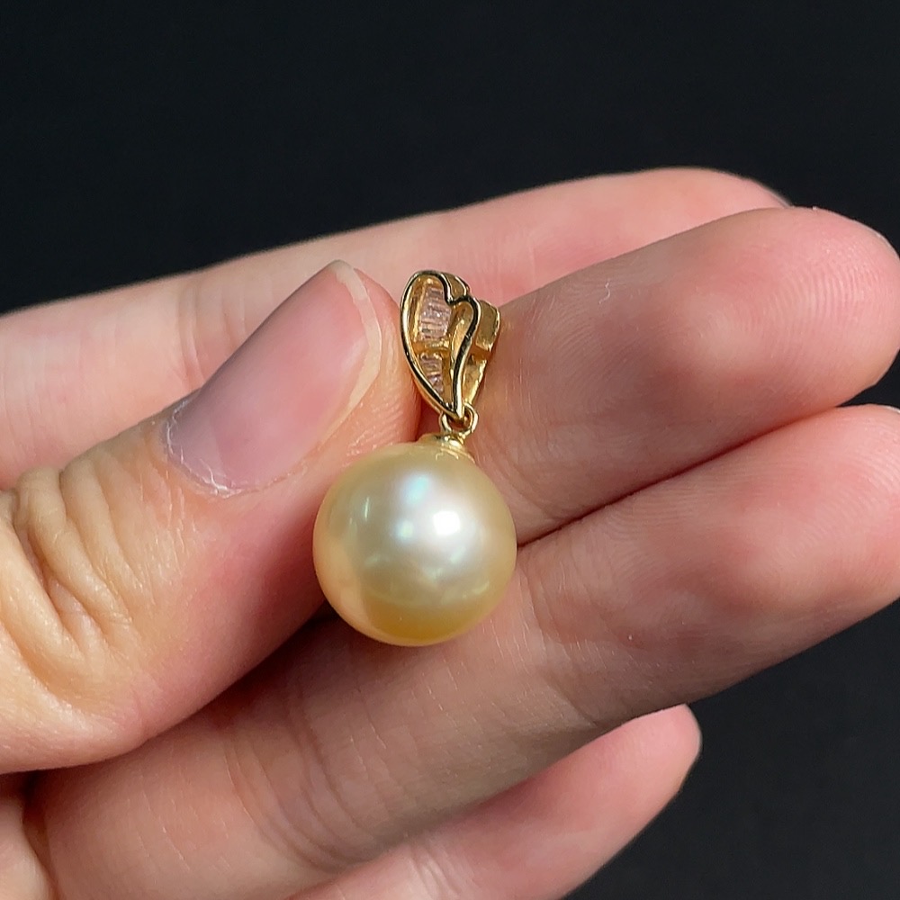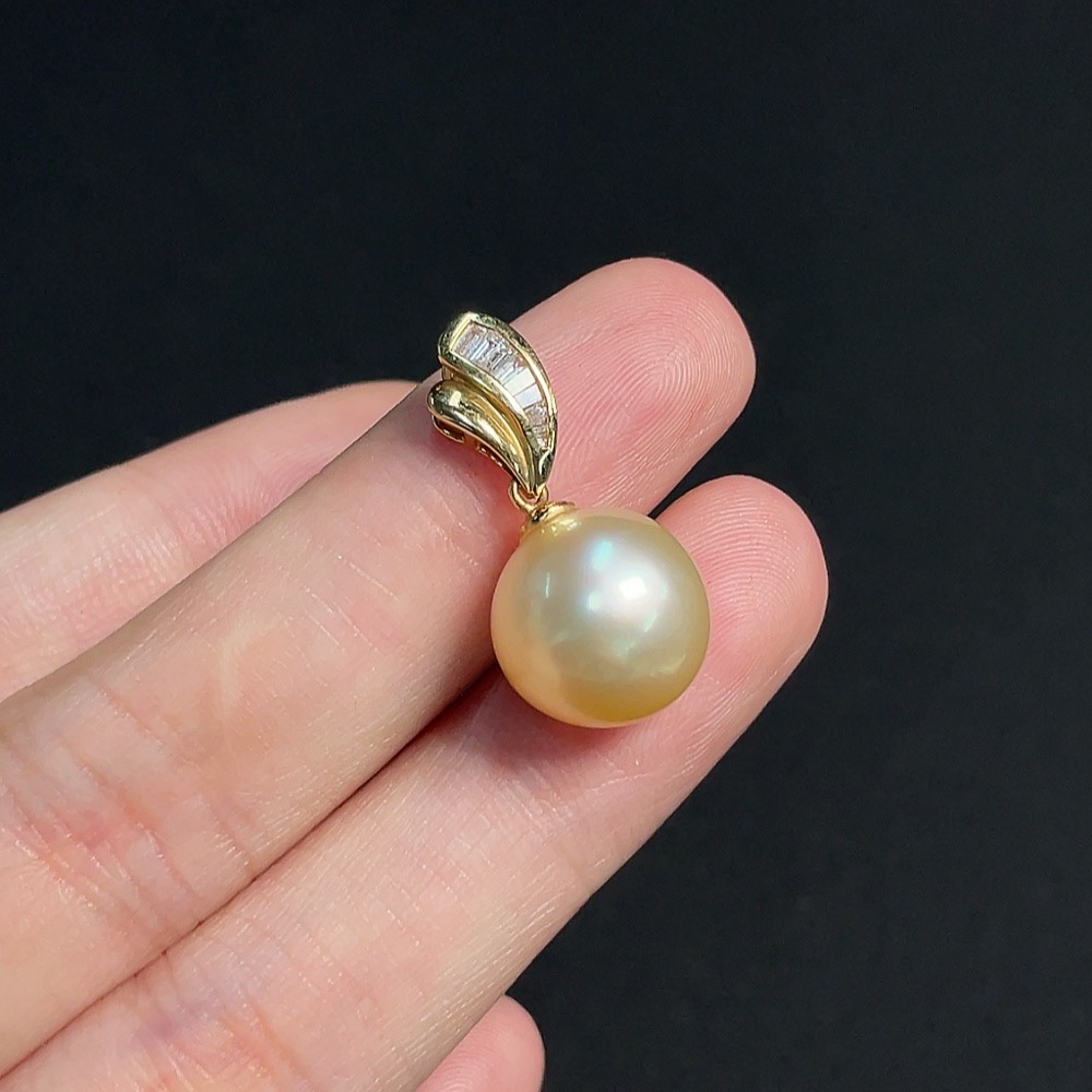 18k seawater pearl pendant with undetermined color origin, accented with diamonds, total weight approximately 3.37g, size about 11.9mm