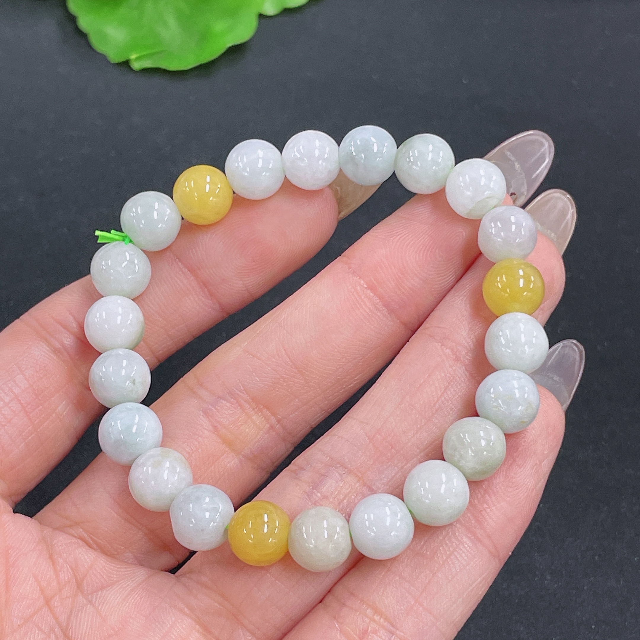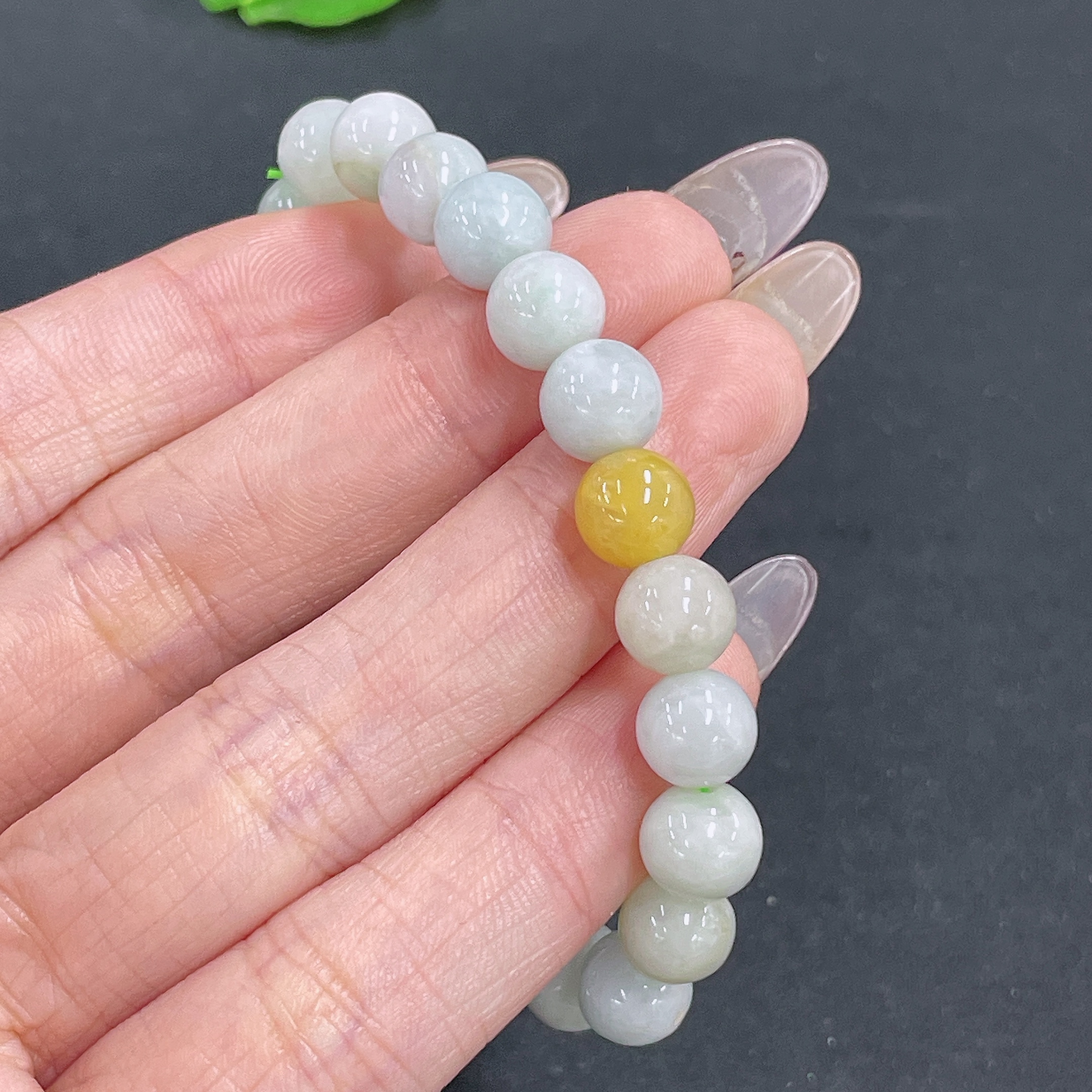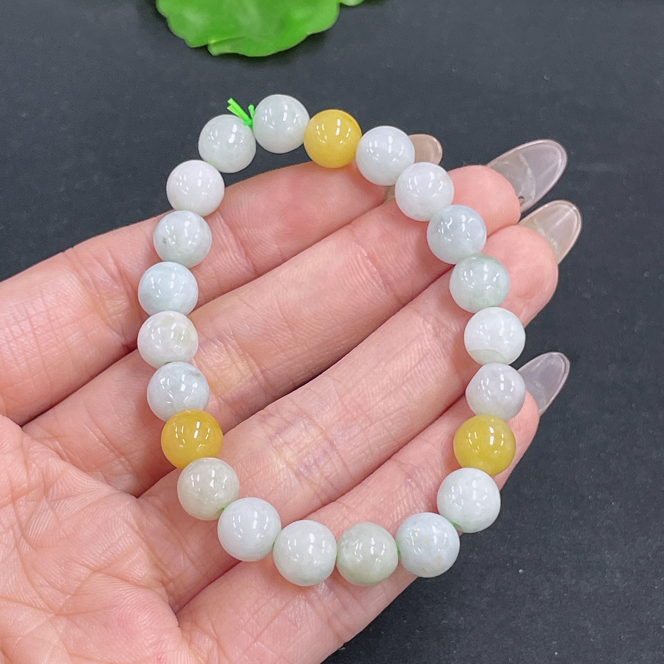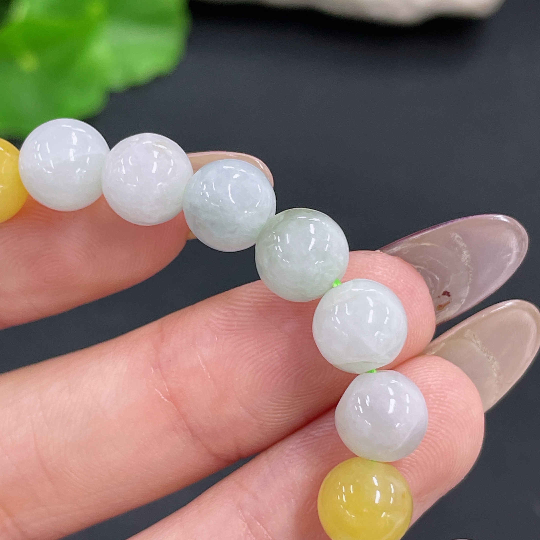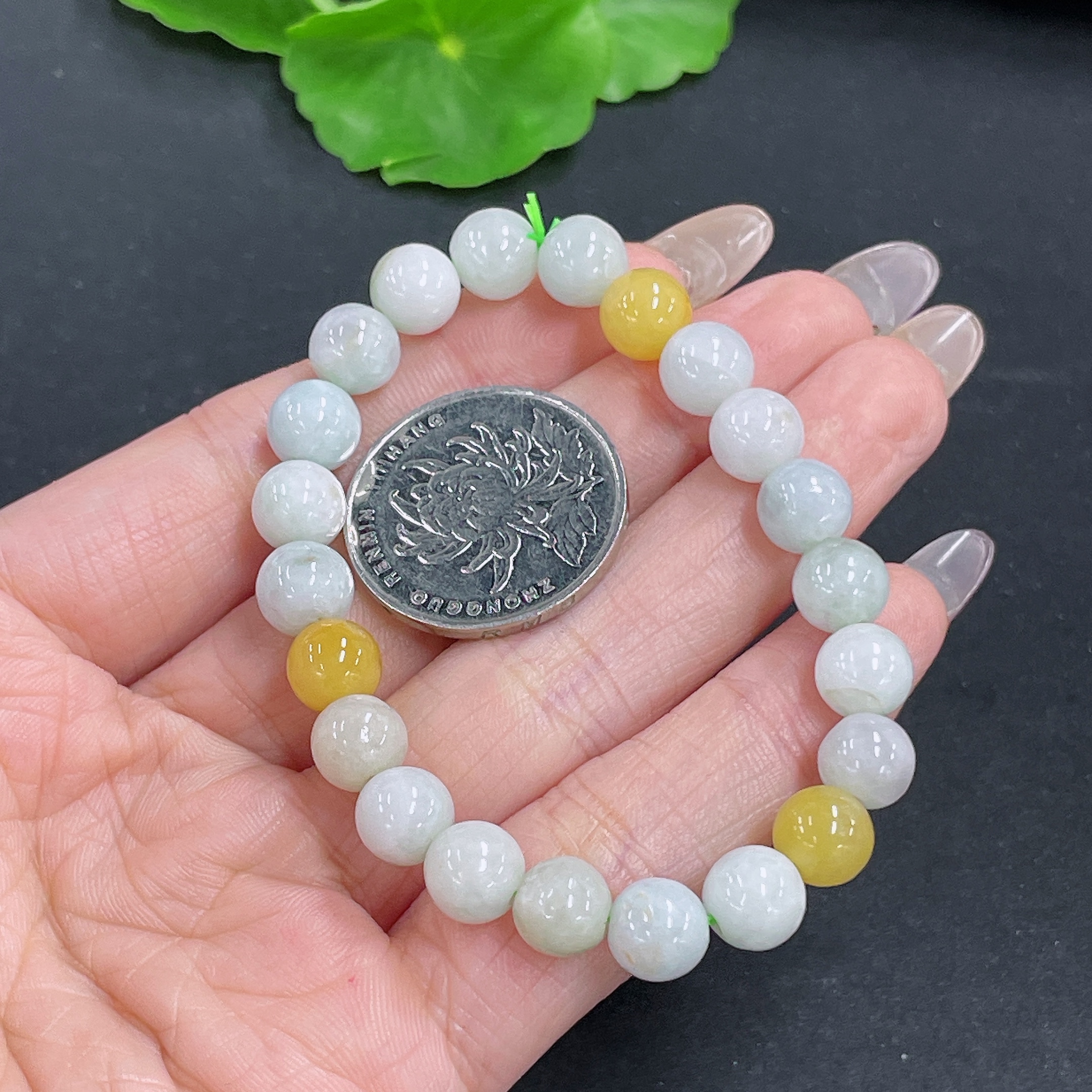 Jadeite Bracelet Yellow Beads Non-A Total Weight Approx. 18.7g Size 8mm