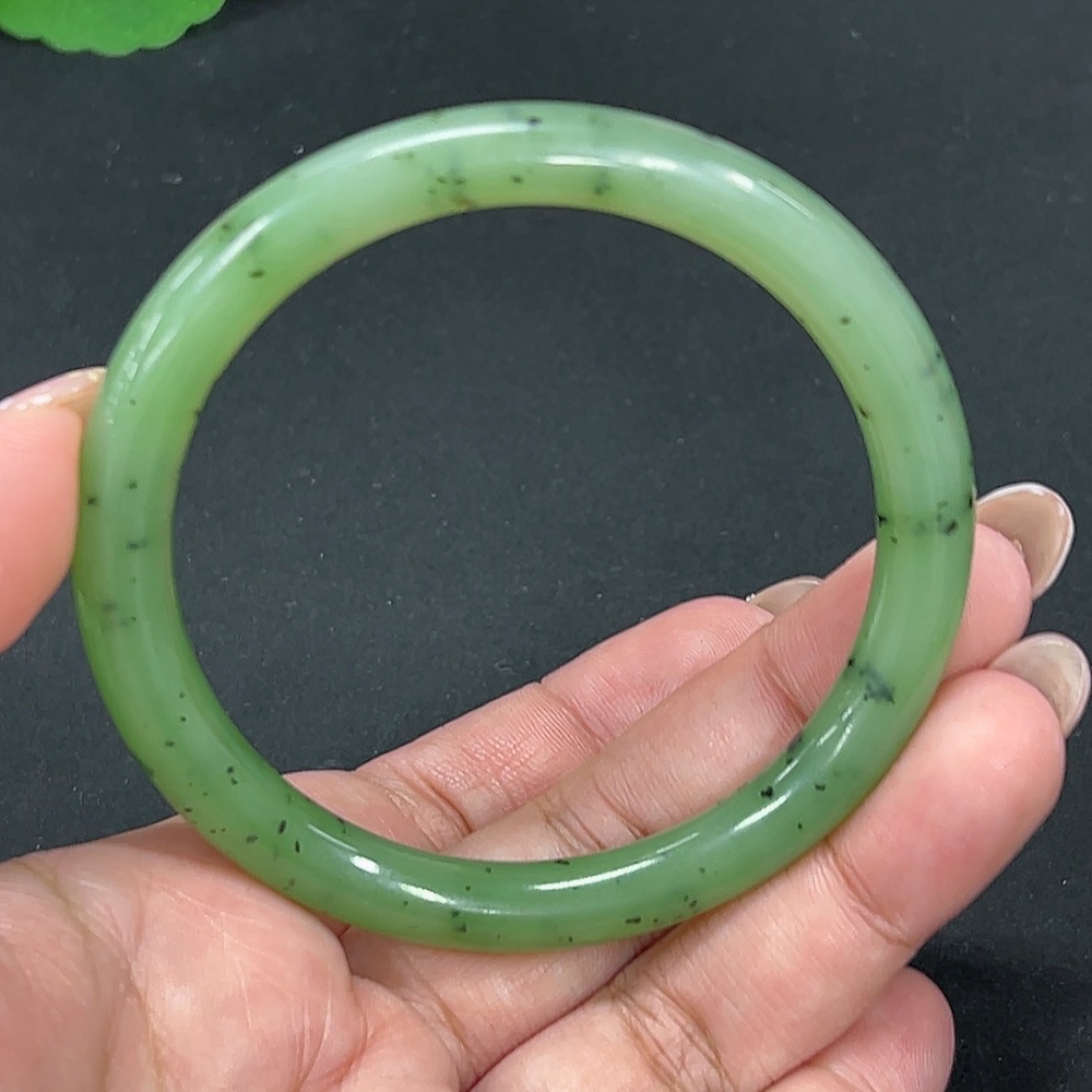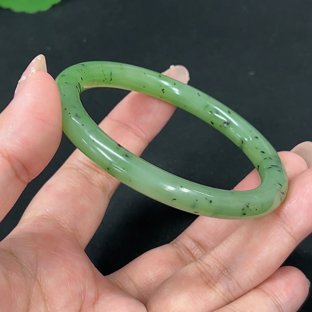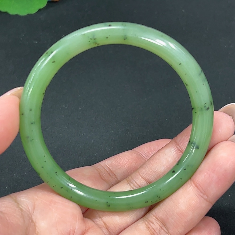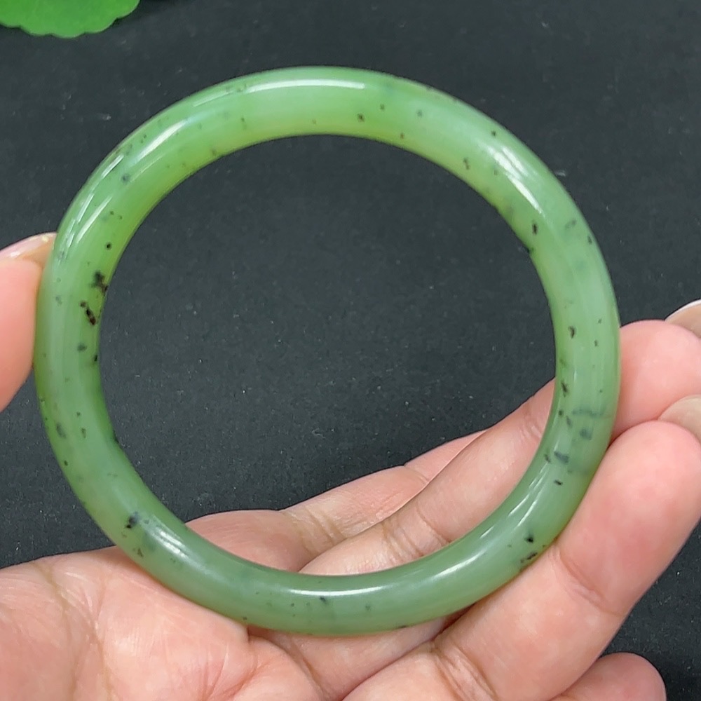 Hetian Jade Green Jade Round Bangle Size 58.4 Total Weight Approx. 30.4g