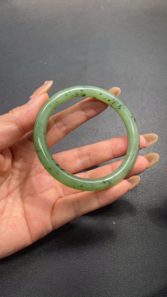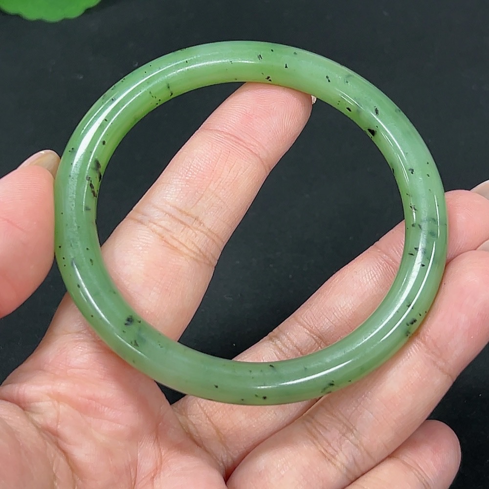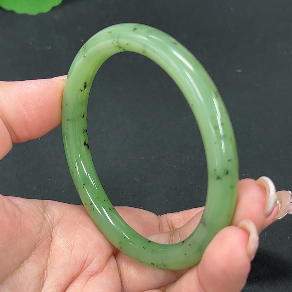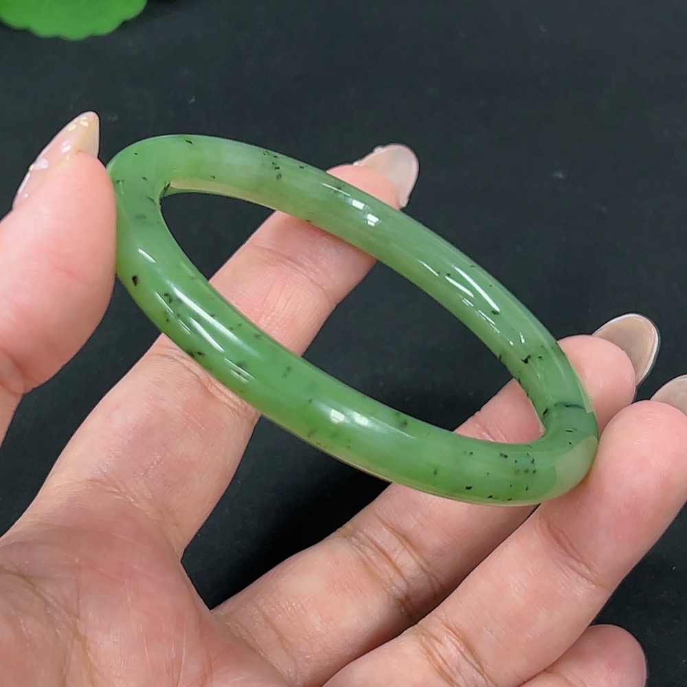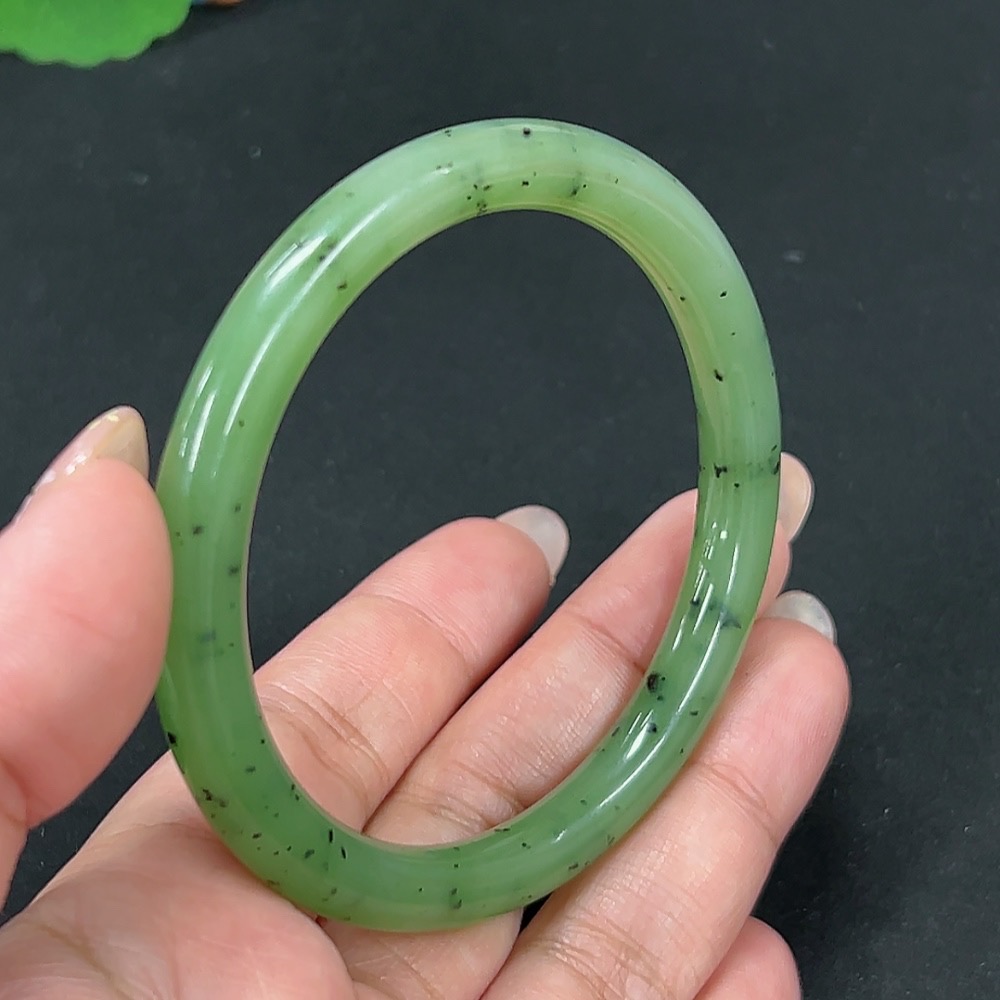 Hetian Jade Green Jade Round Bangle Size 58.4 Total Weight Approx. 30.4g