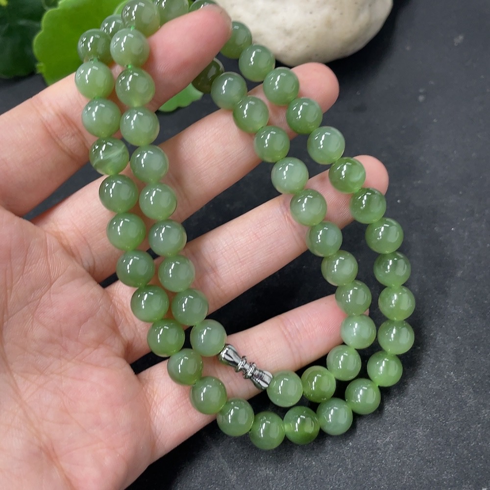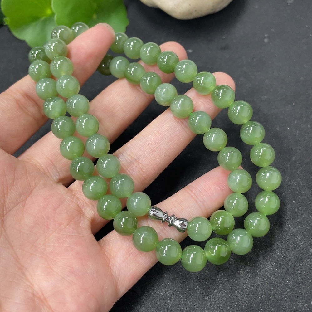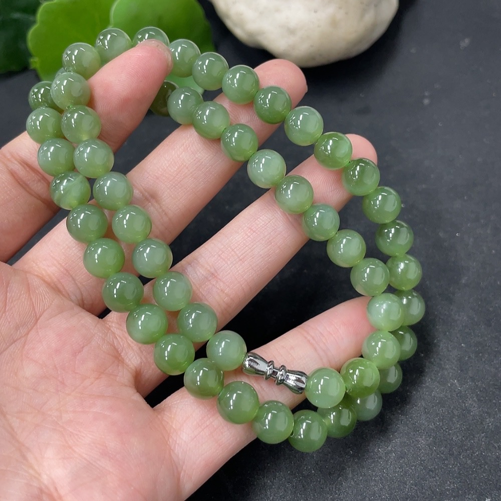 Hetian Jade Jasper Bead Necklace Approx. 7.7mm Total Weight Approx. 45.5g Non-Gold