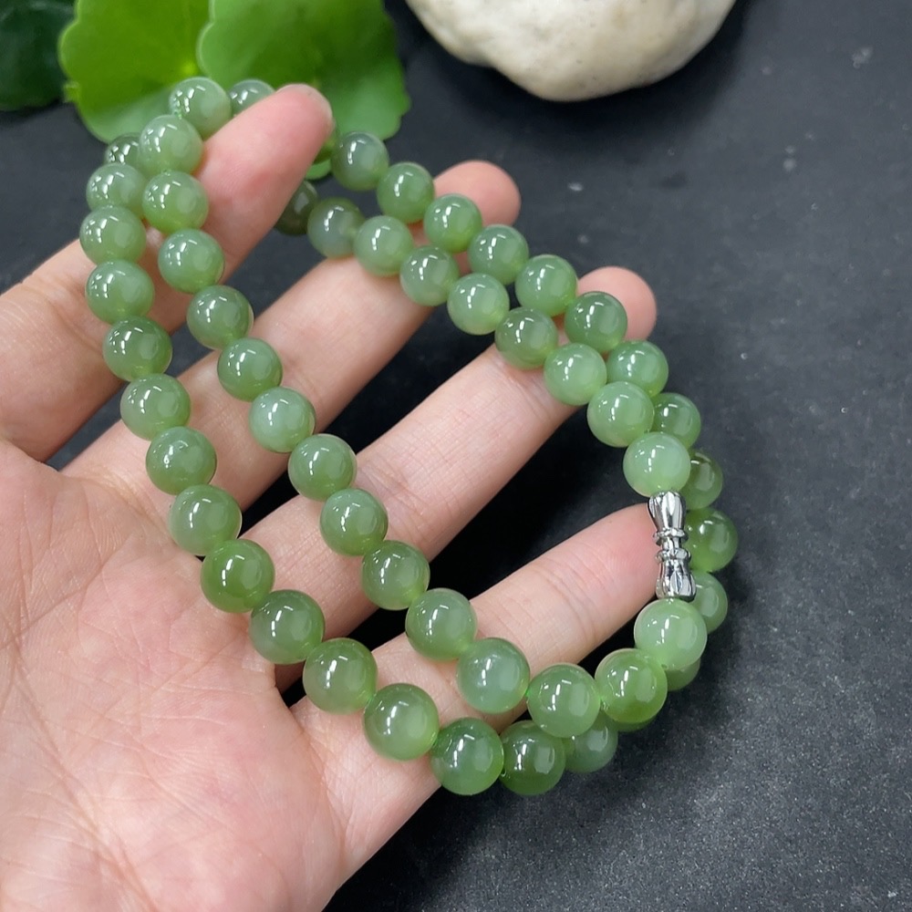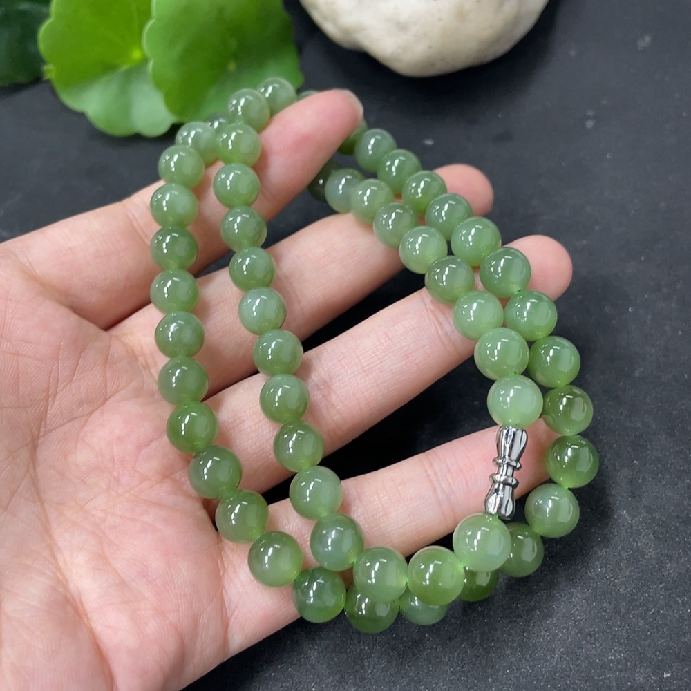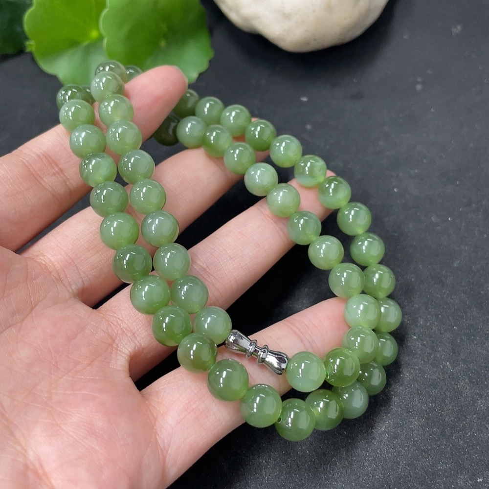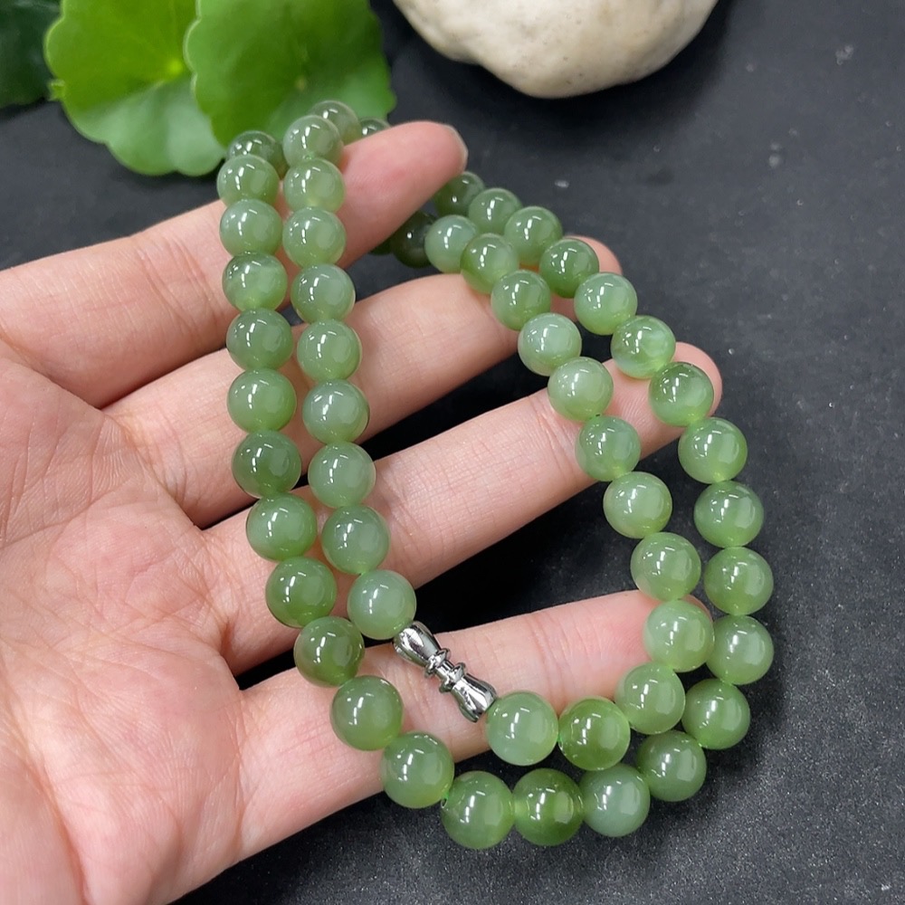 Hetian Jade Jasper Bead Necklace Approx. 7.7mm Total Weight Approx. 45.5g Non-Gold