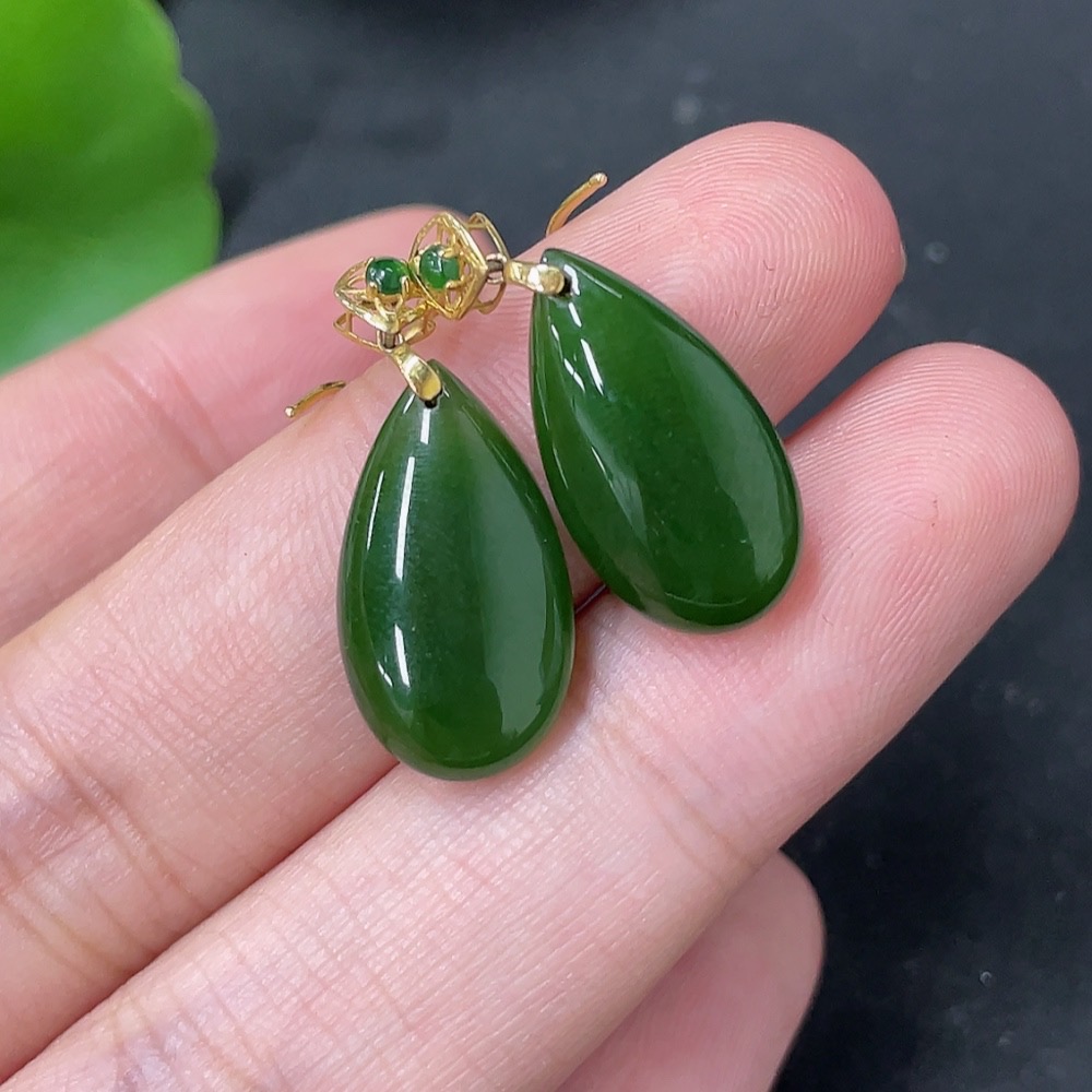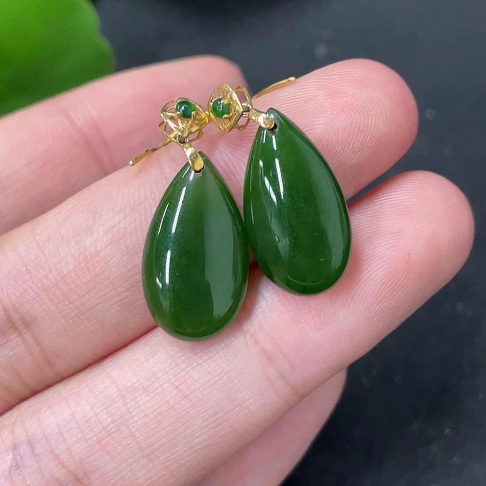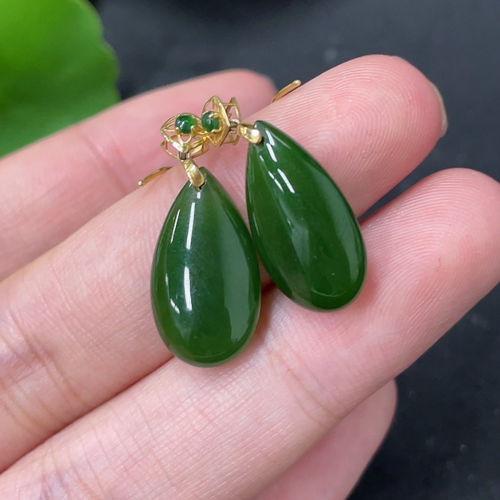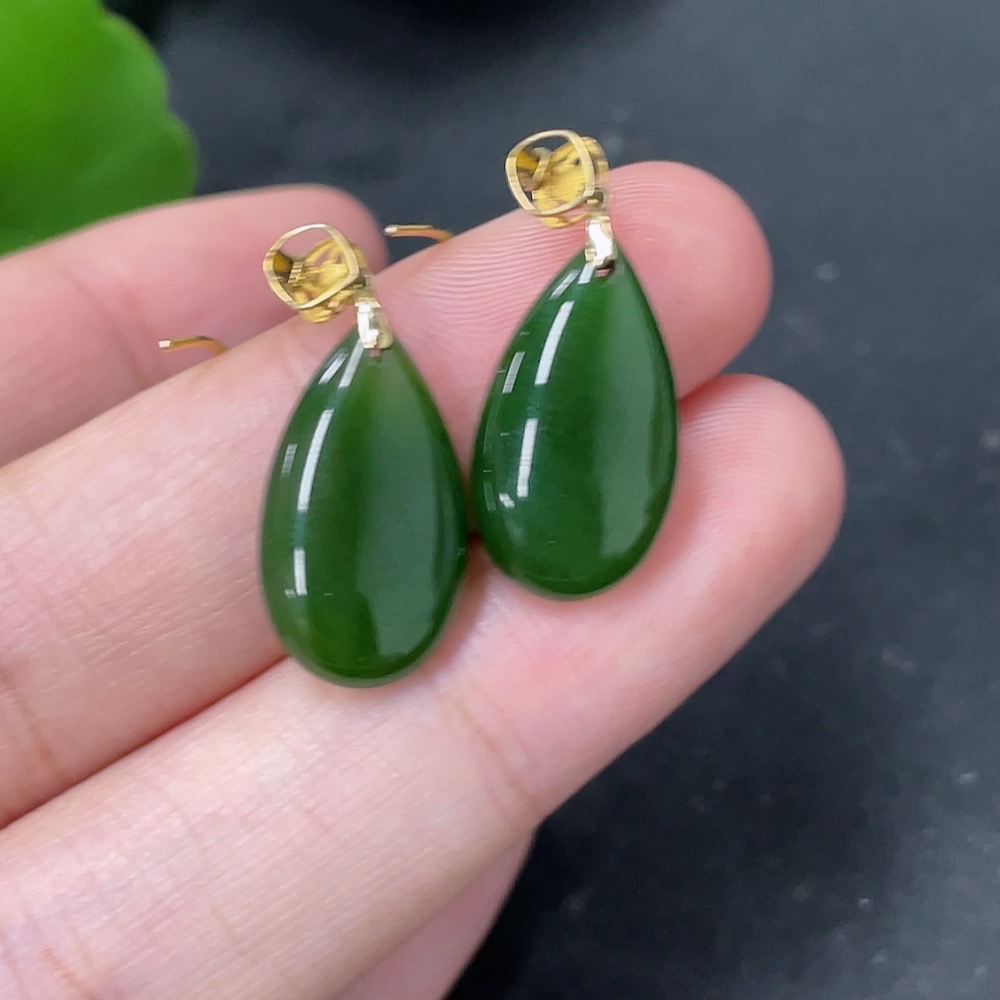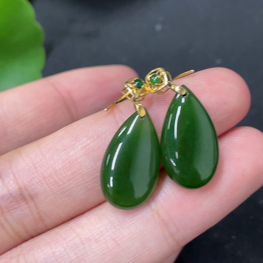 Hetian Jade Jasper Inlaid Earrings 18k Gold, Total Weight Approx. 3.3g