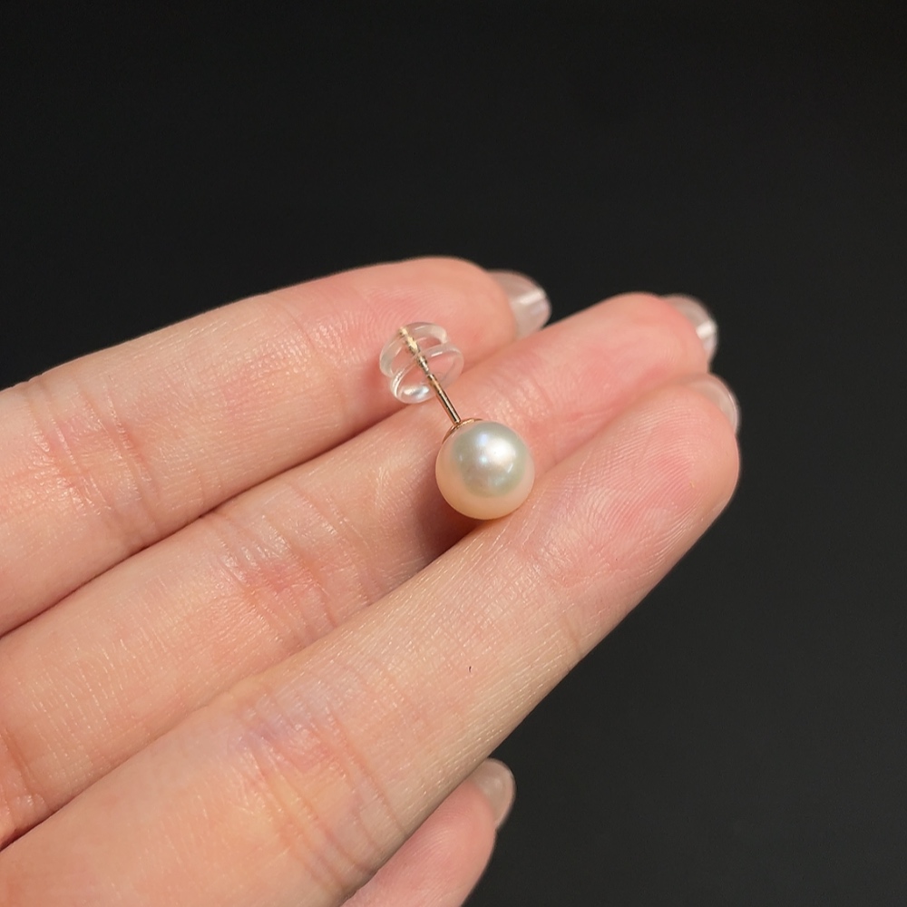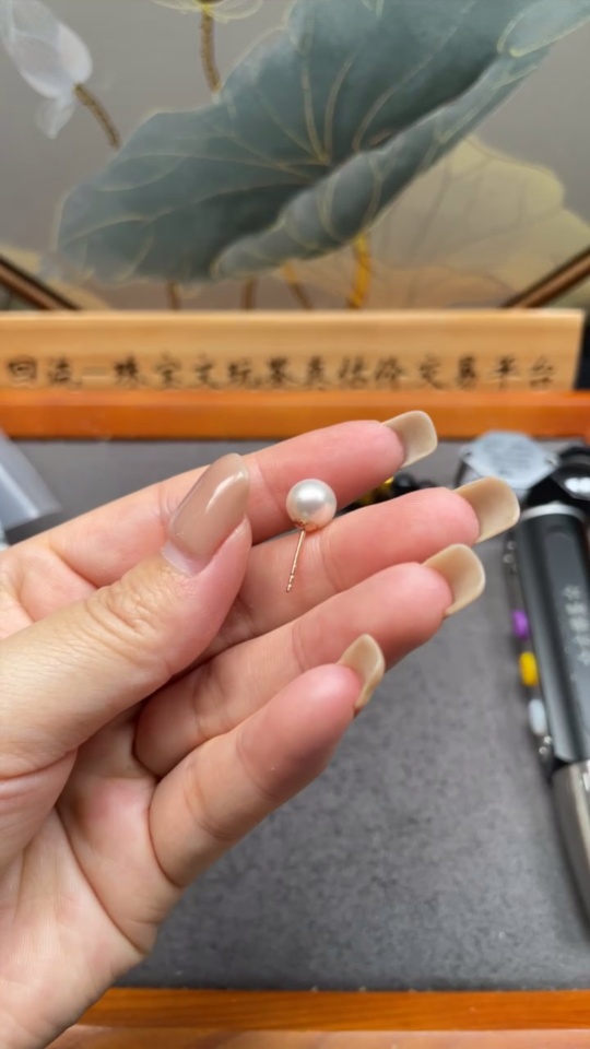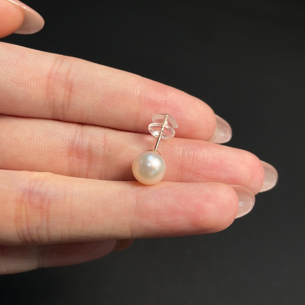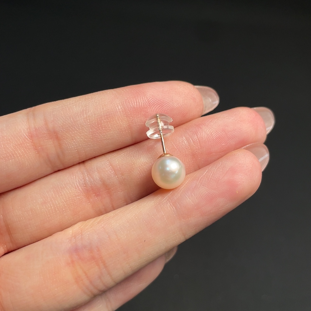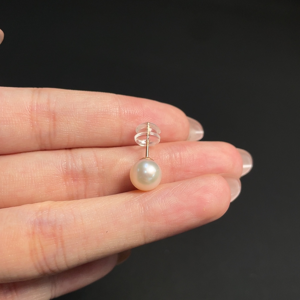 18k Single-sided Seawater Pearl Earrings, Total Weight Approx. 0.87g, Pearl Size Around 7.8mm