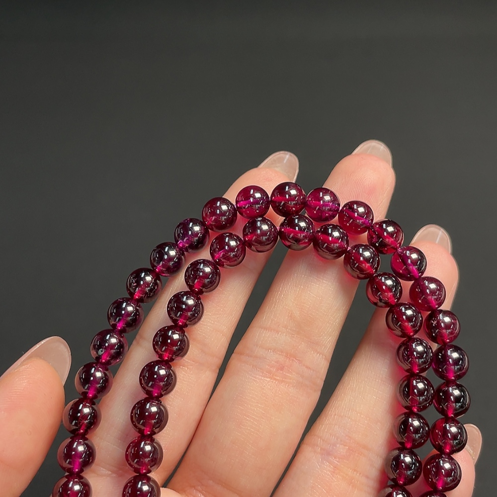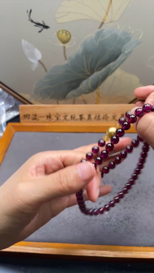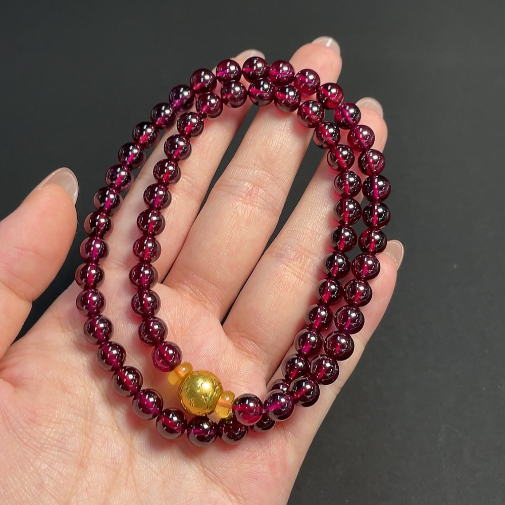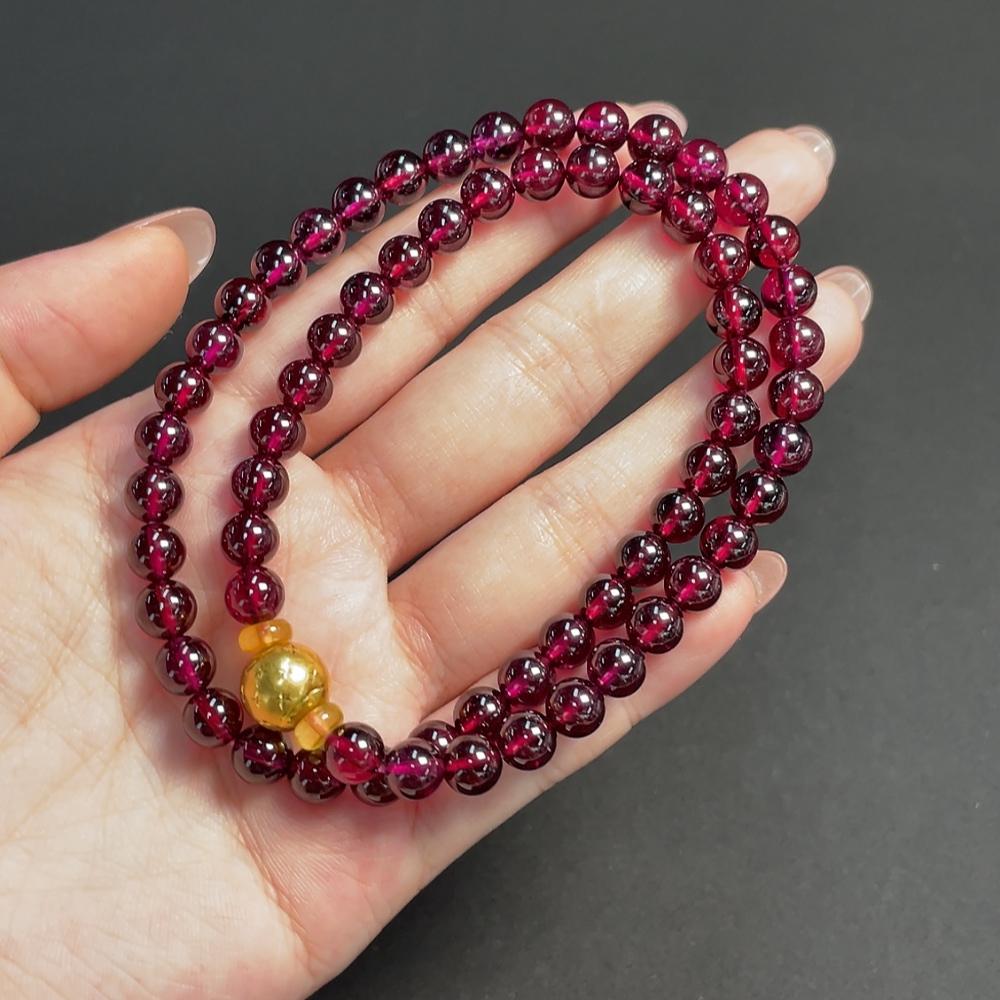 Garnet bead chain, no imprint, gold content tested at Au 99%, total weight approximately 43.57g, bead size about 6.6mm