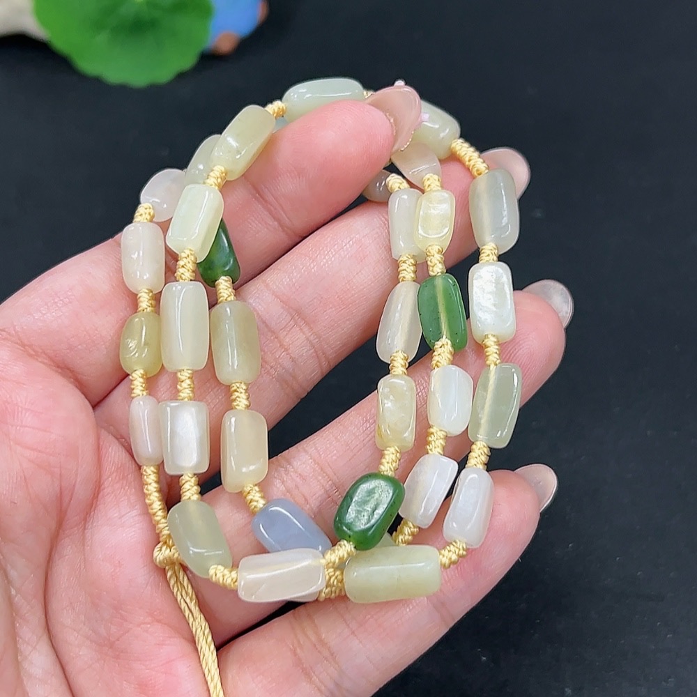Hetian Jade Bead Necklace, Total Weight Approx. 28.3g