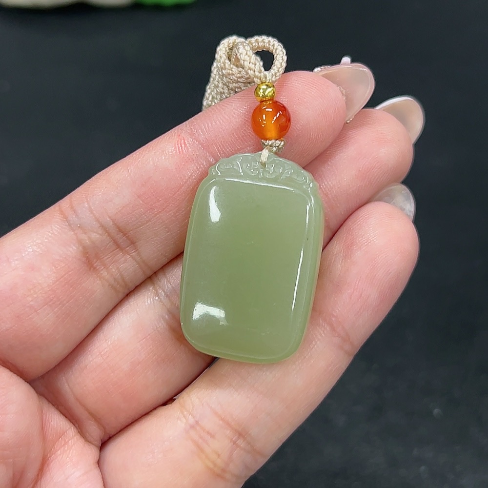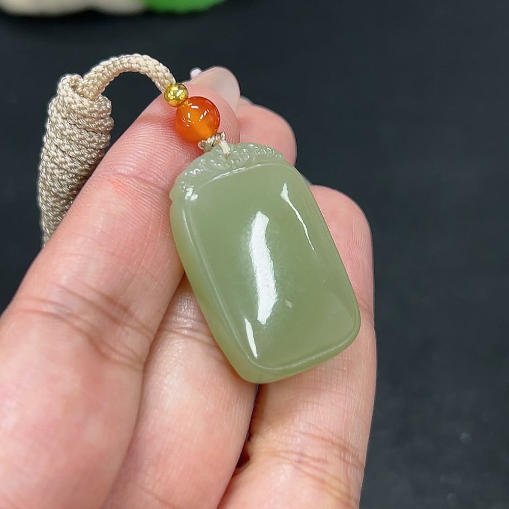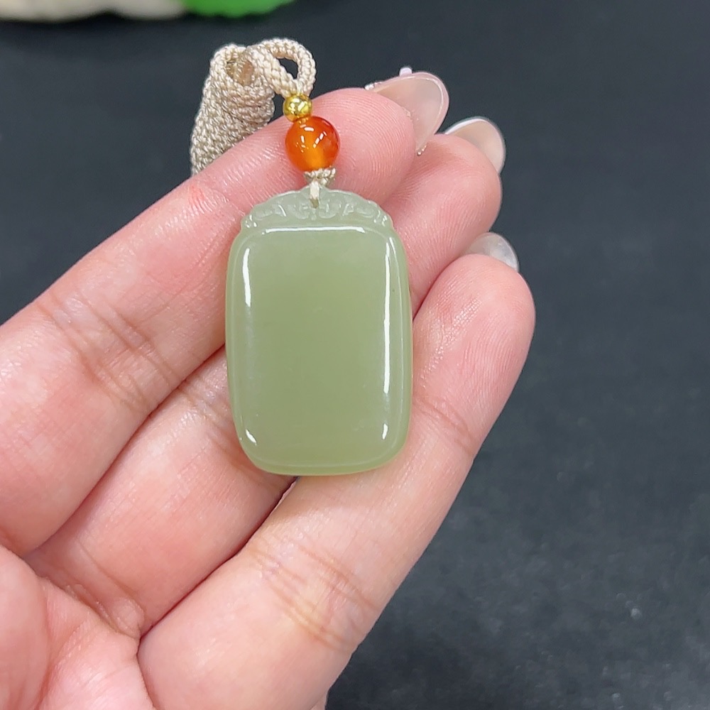 Hetian Jade Pendant Plain Pendant Total Weight Approx. [including rope] 13.4g