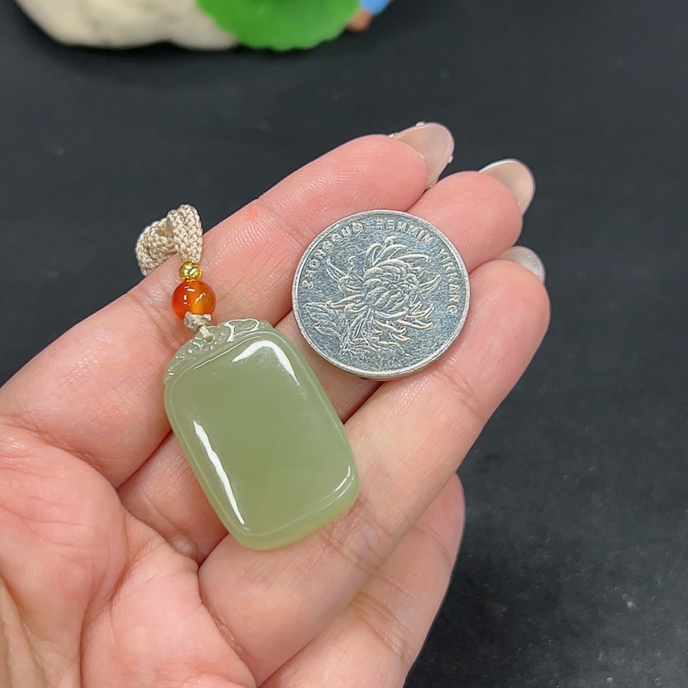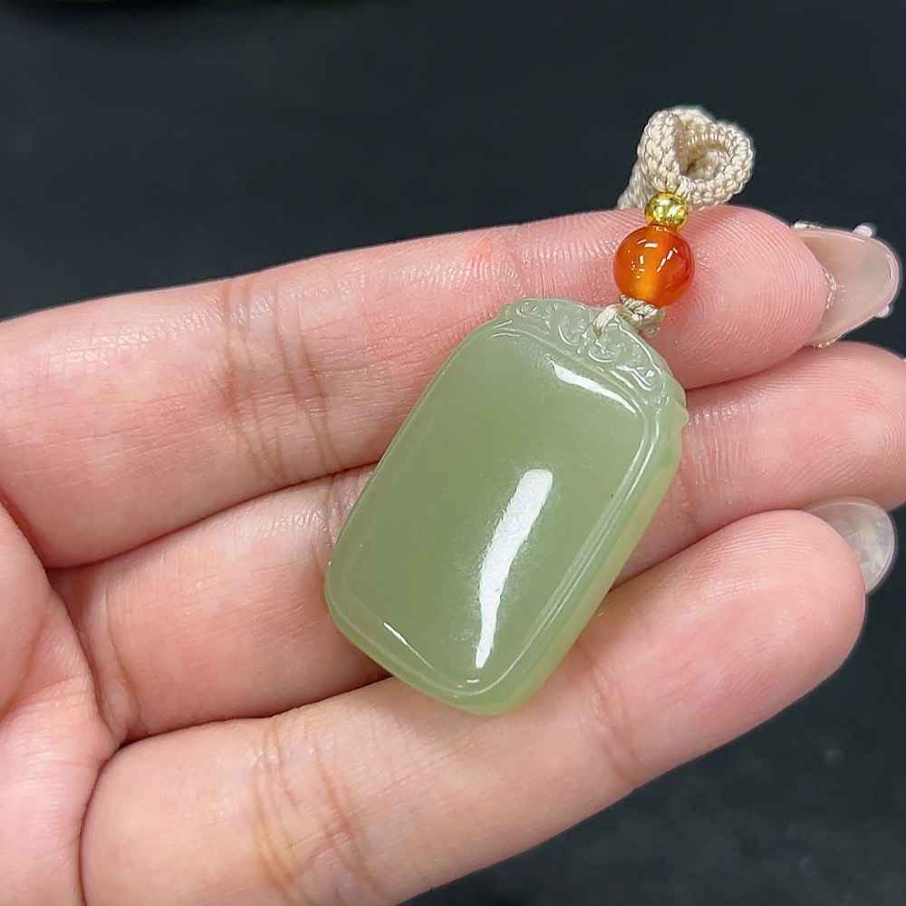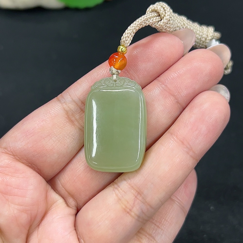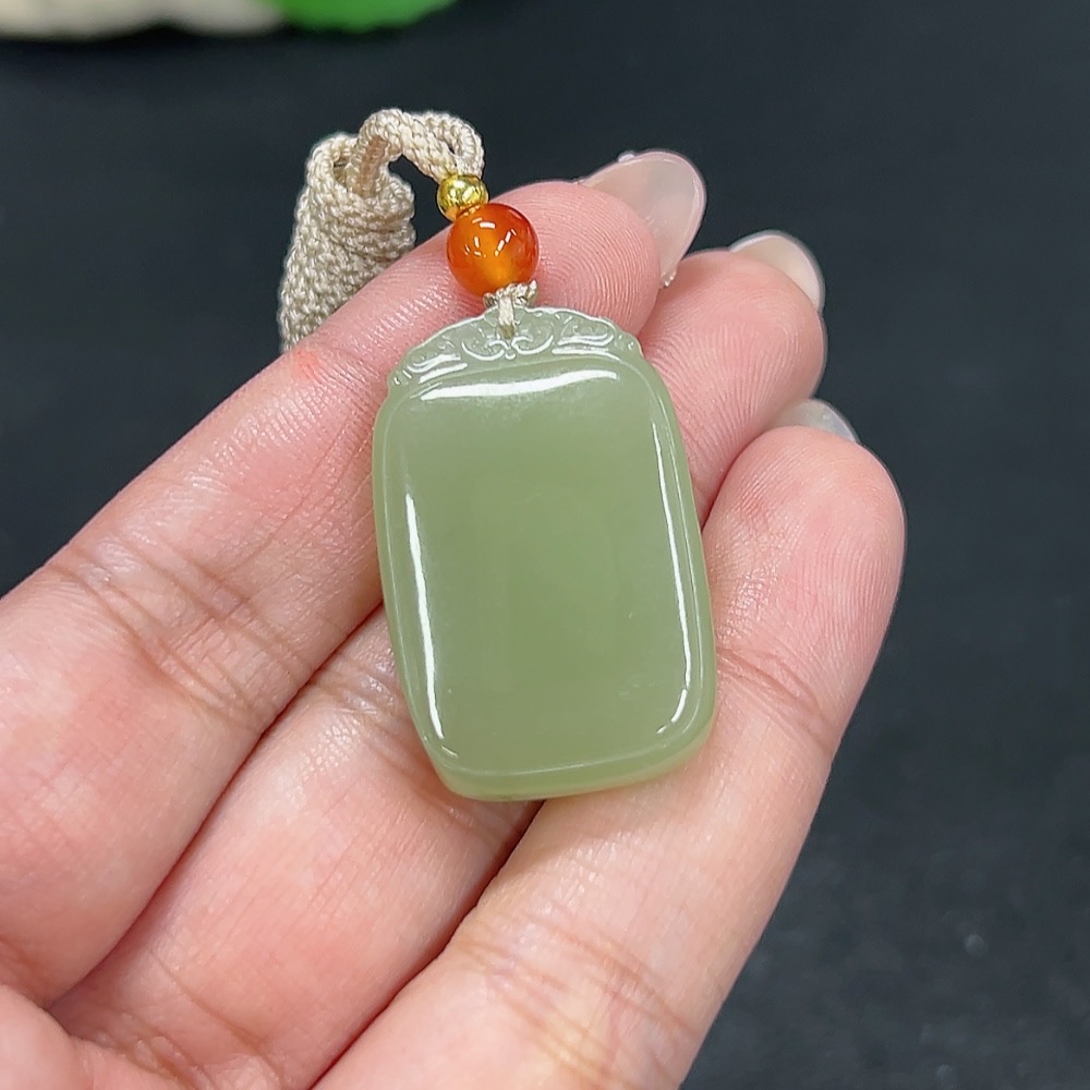 Hetian Jade Pendant Plain Pendant Total Weight Approx. [including rope] 13.4g