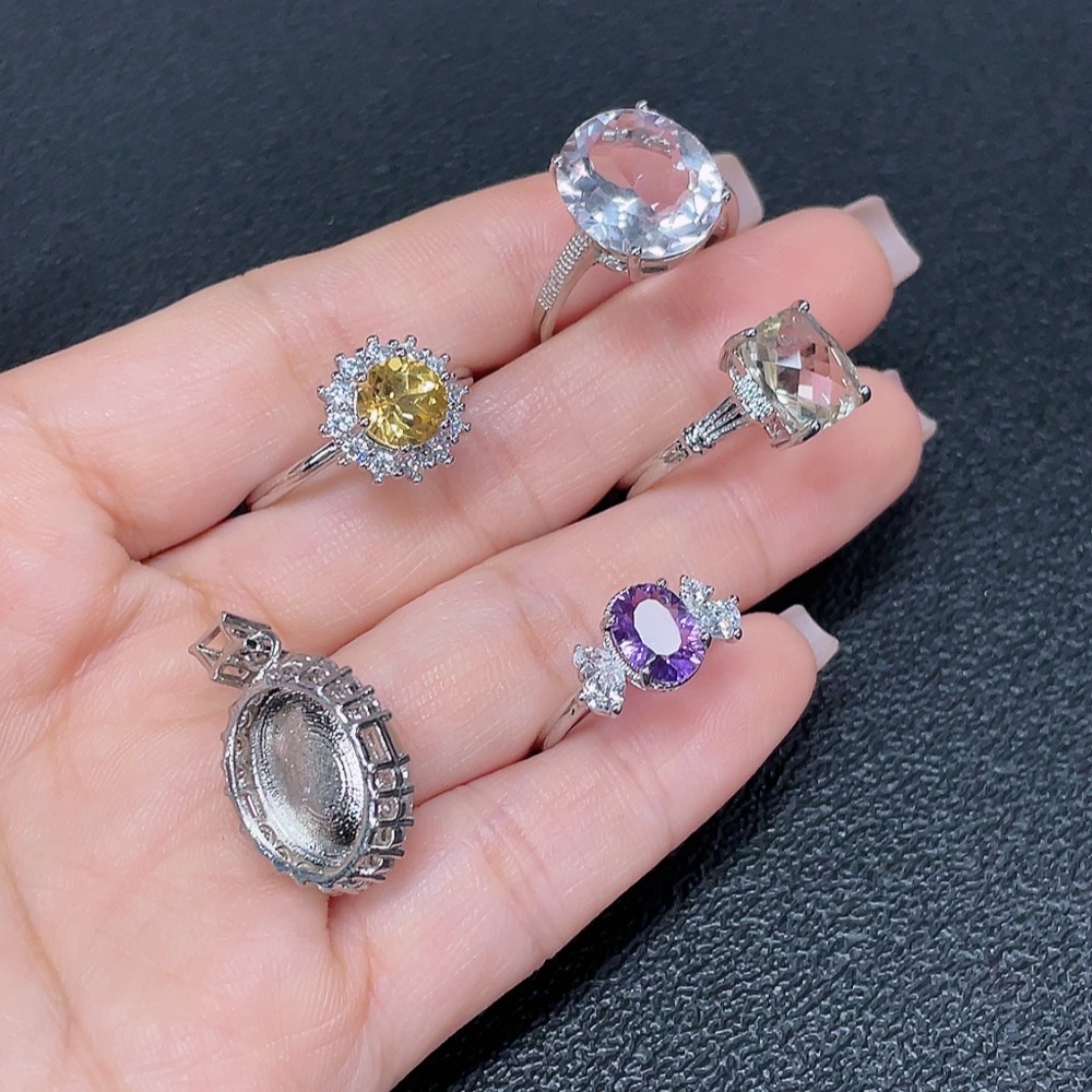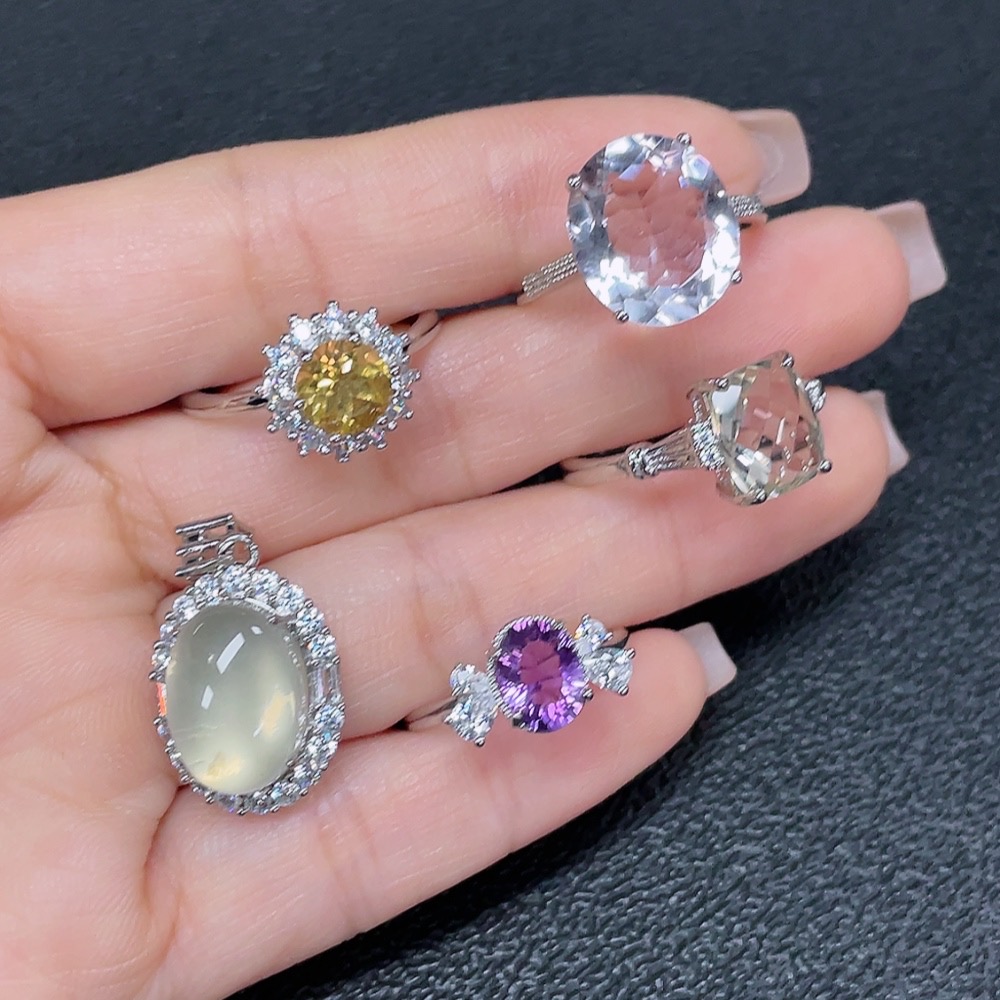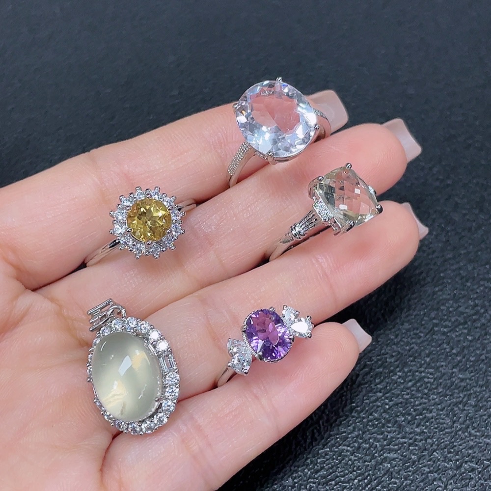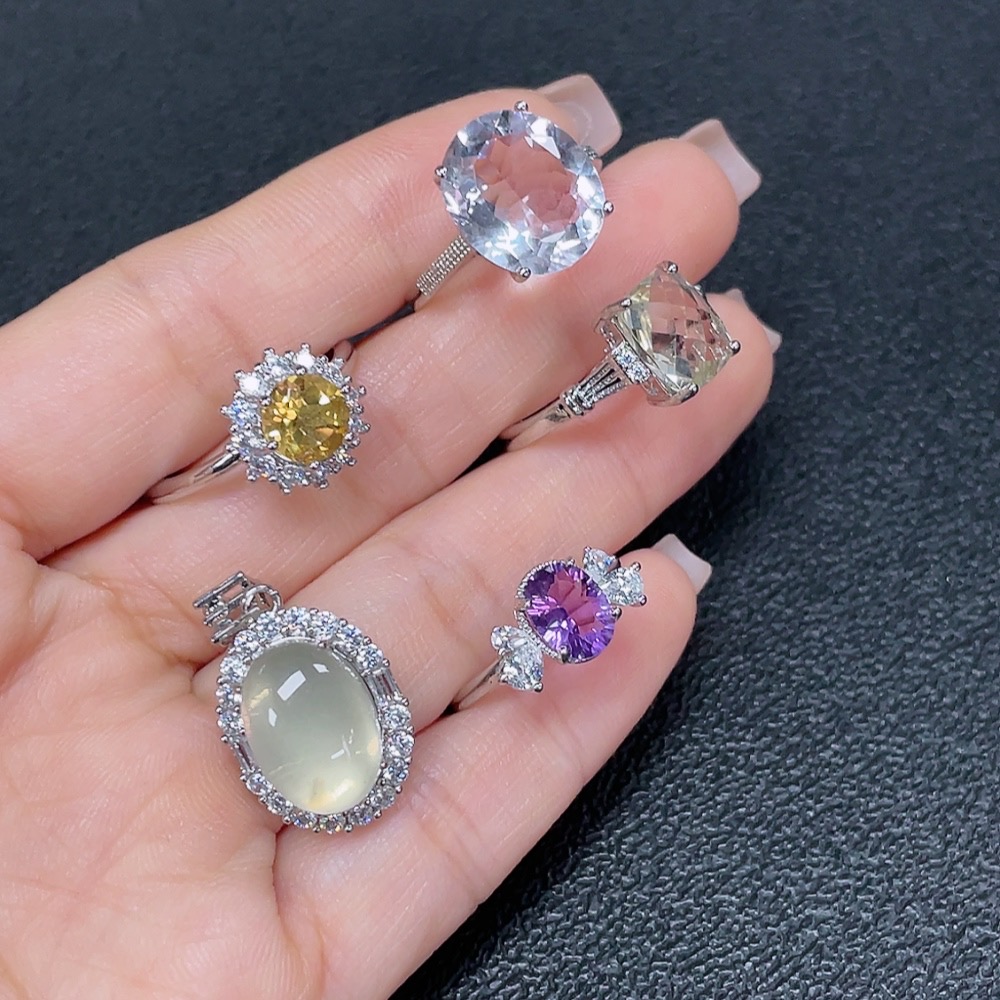 Crystal Set Pendant + Ring Non-Gold Setting Total Weight Approx. 14.10g