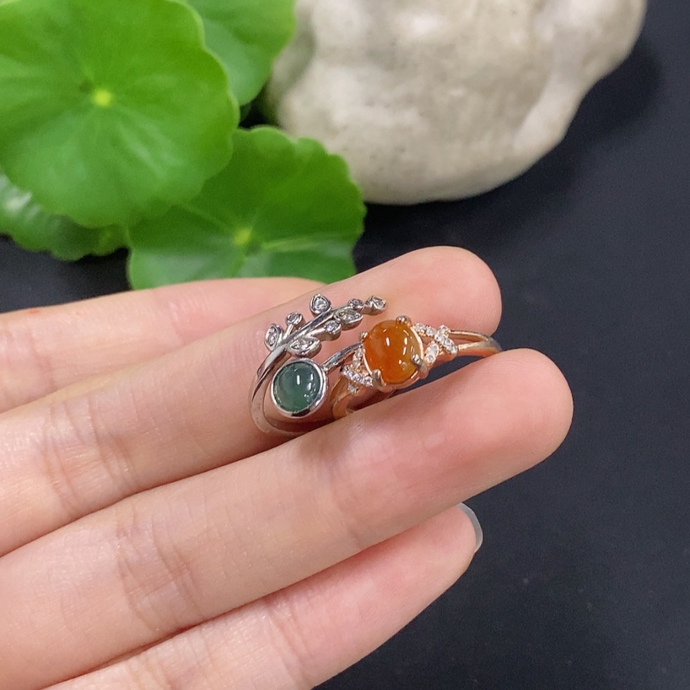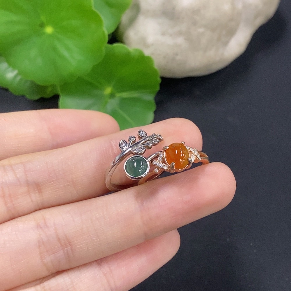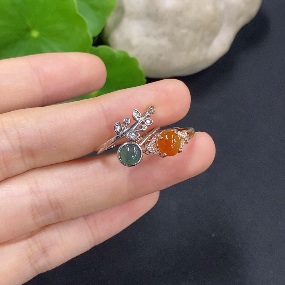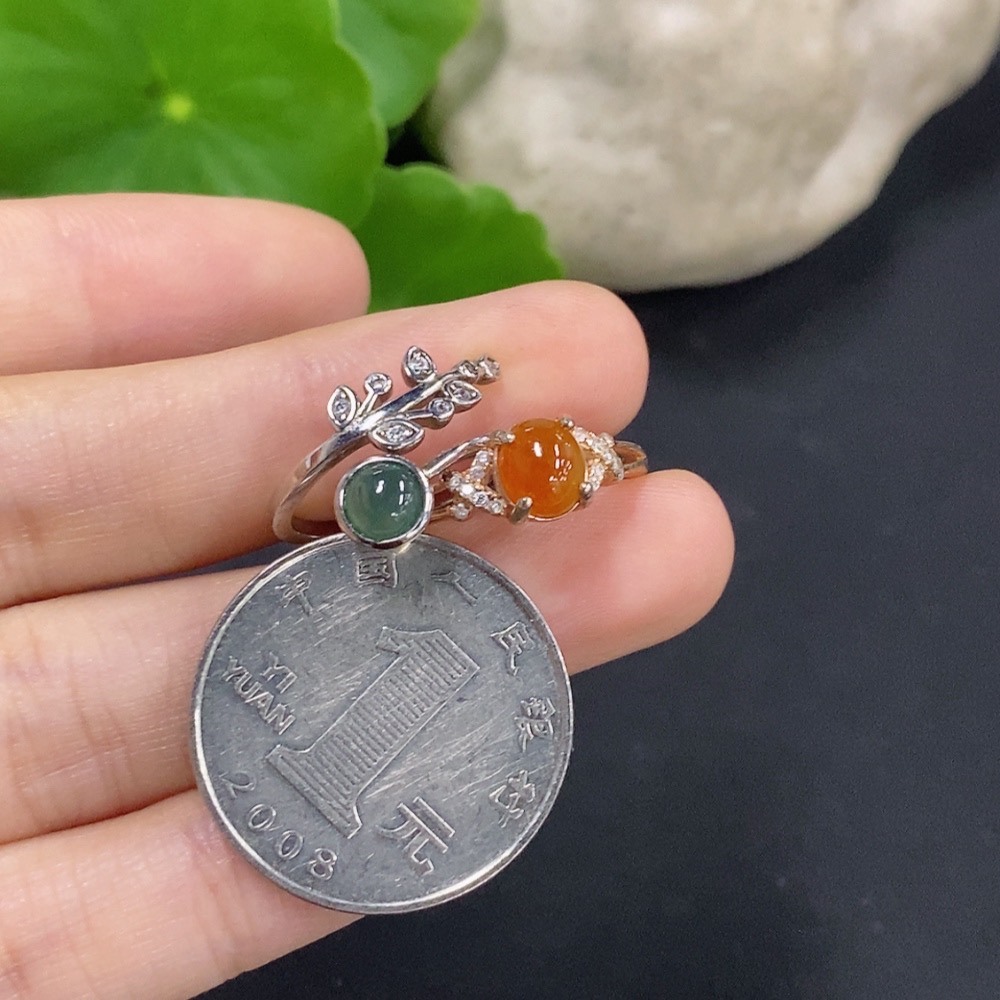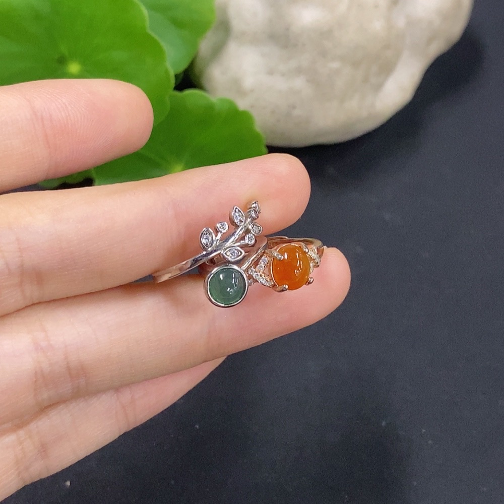 Jadeite cabochon ring, non-gold setting, adjustable