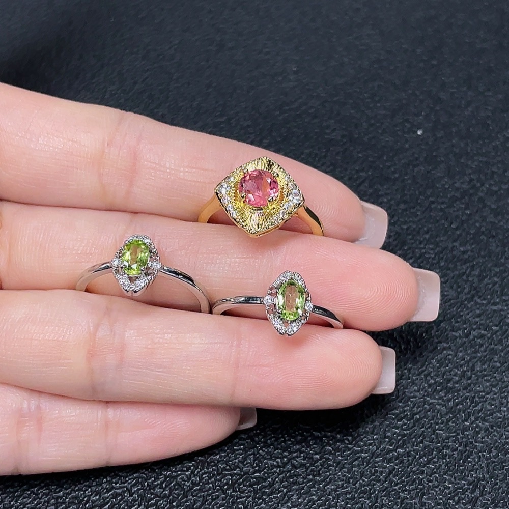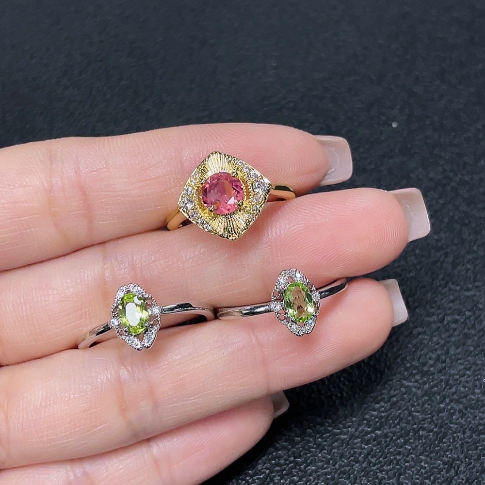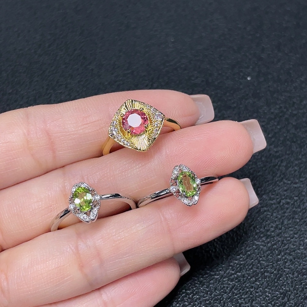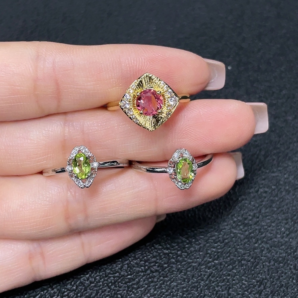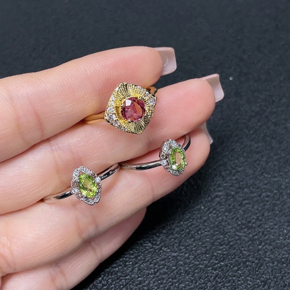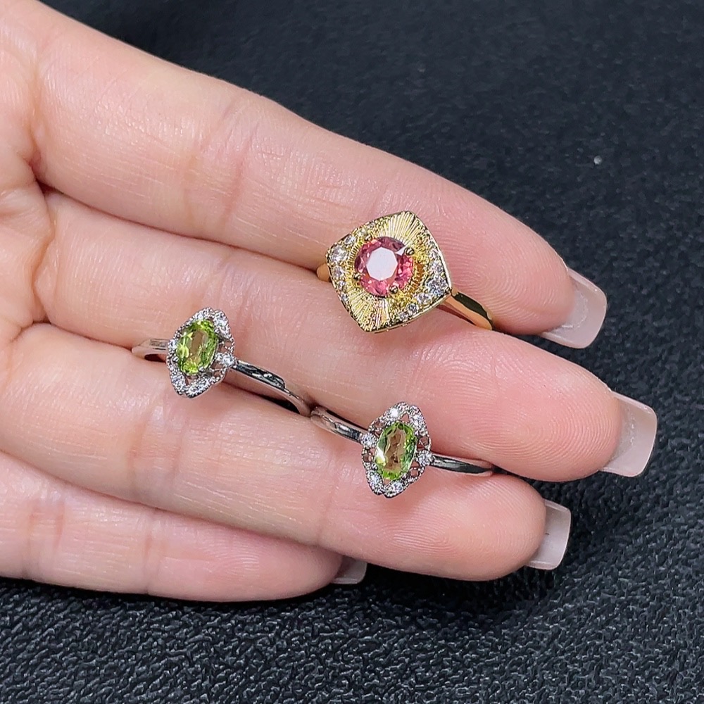 Tourmaline and Peridot Inlaid Ring (Non-Gold Setting, Adjustable, Total Weight Approximately 5.02g)
