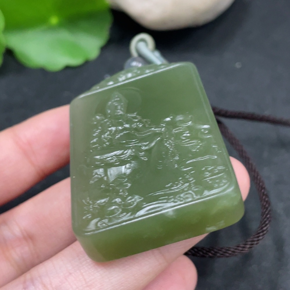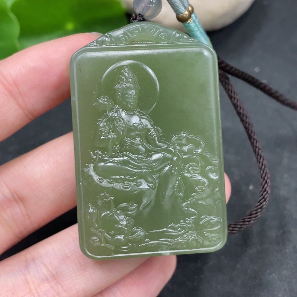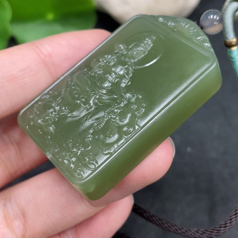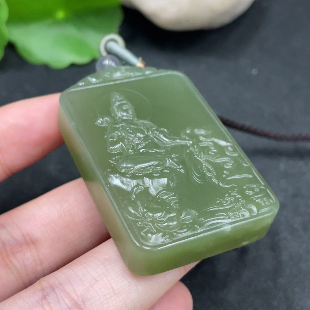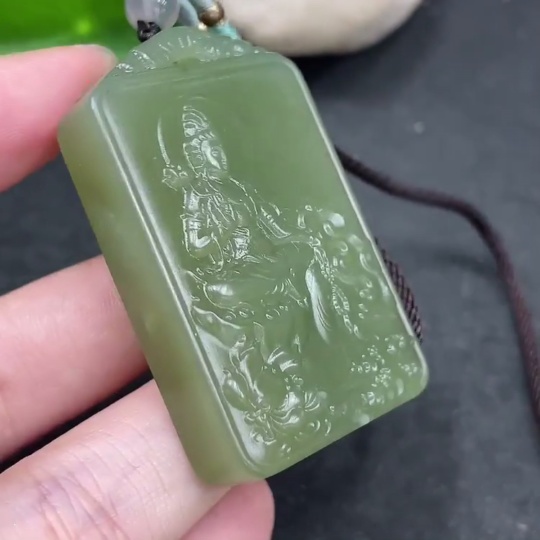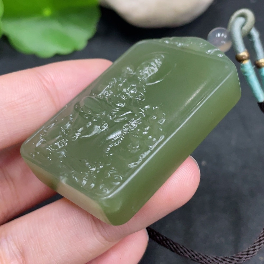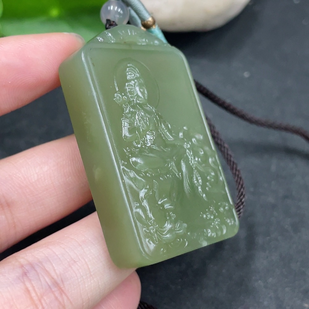 Hetian Jade Pendant Guanyin with Non-Hetian Jade Beads Total Weight Approx. (Including Rope) 42.8g