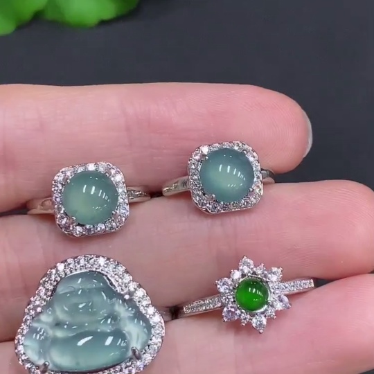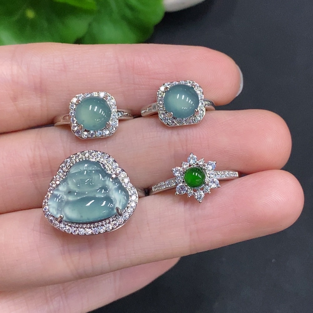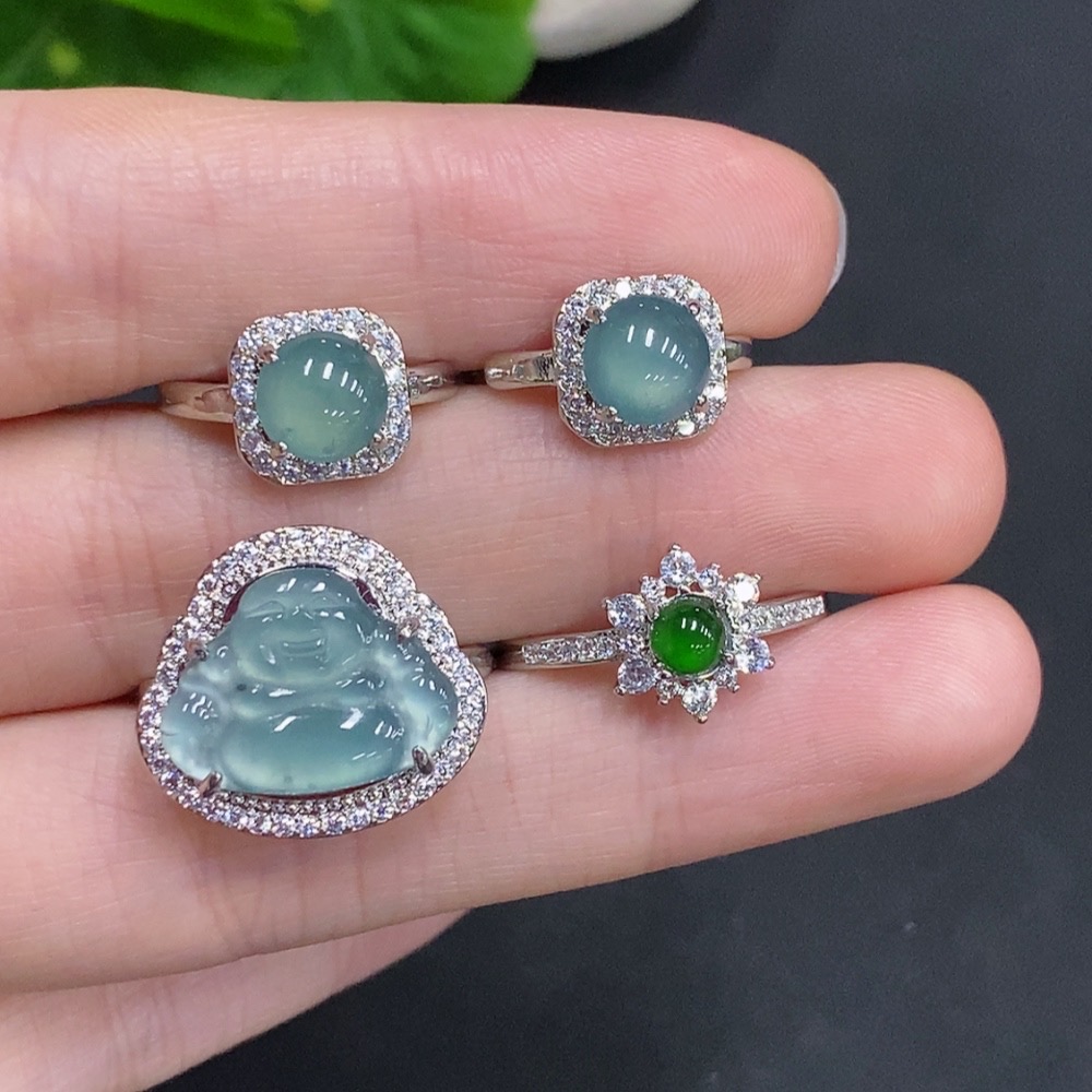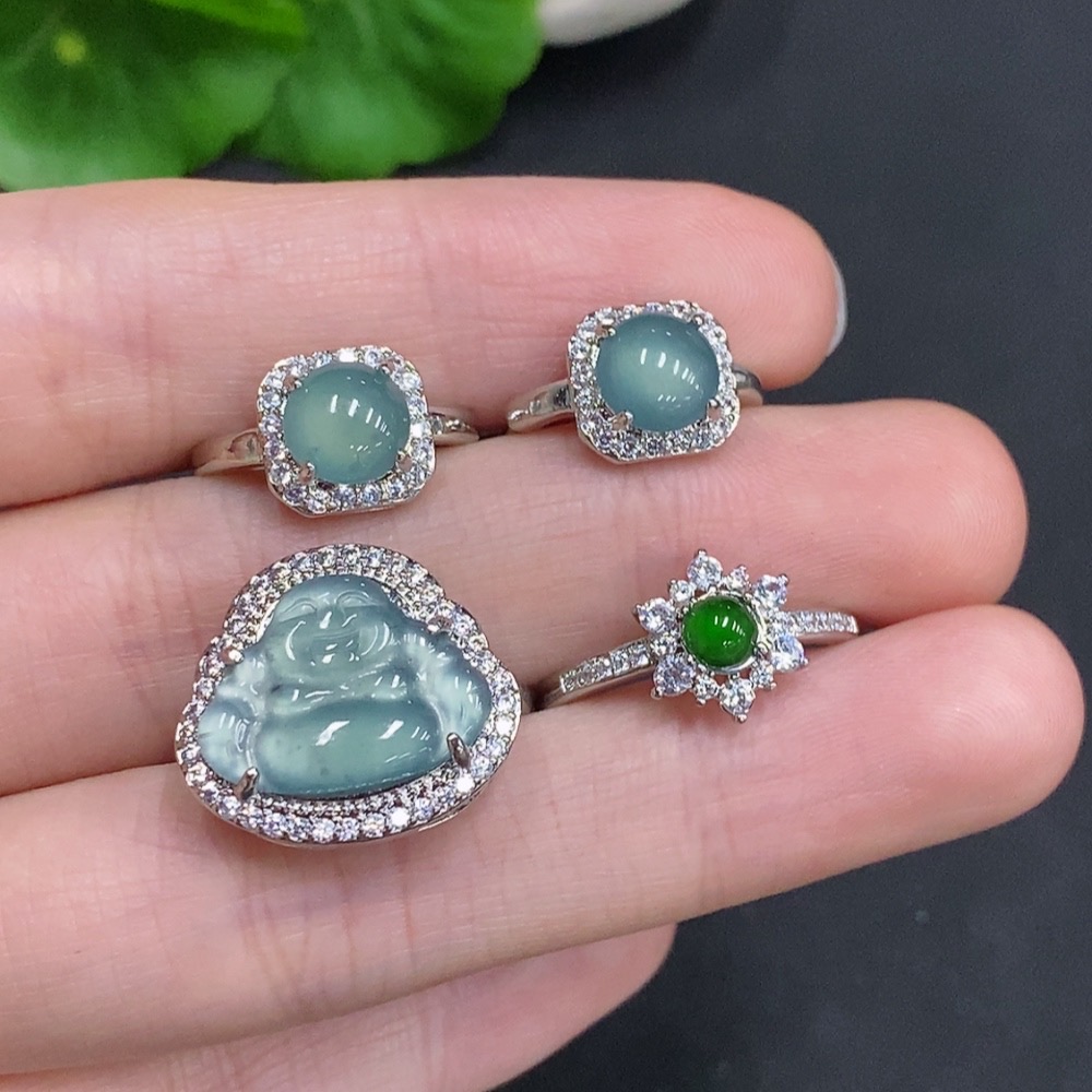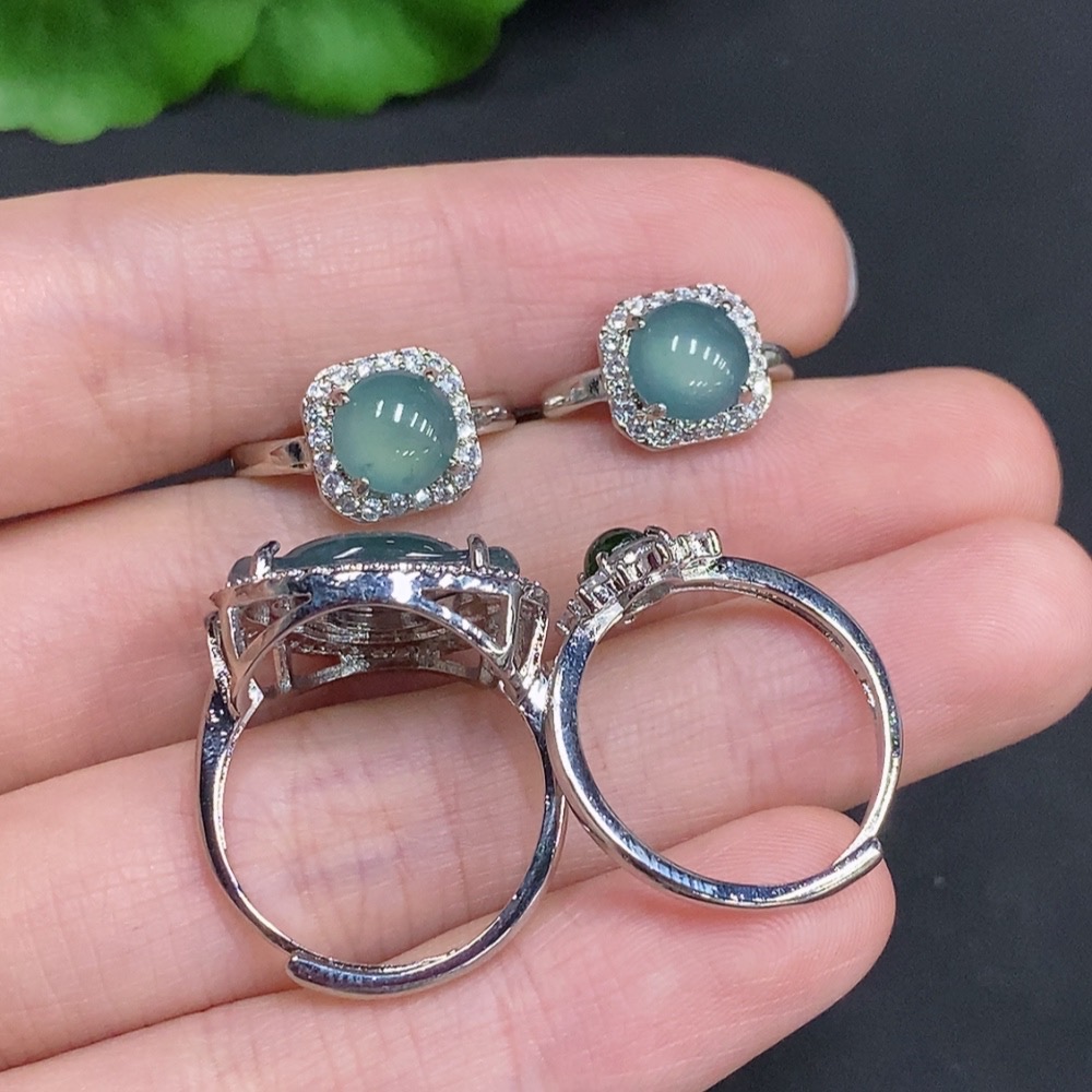 Jadeite Inlaid Ring + Inlaid Earring Sell as a Lot Non-Gold Inlaid