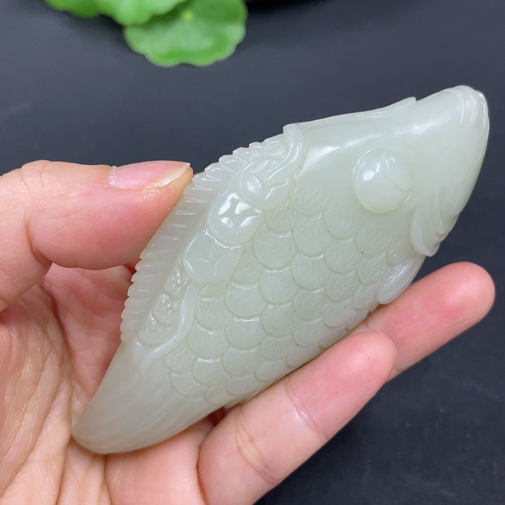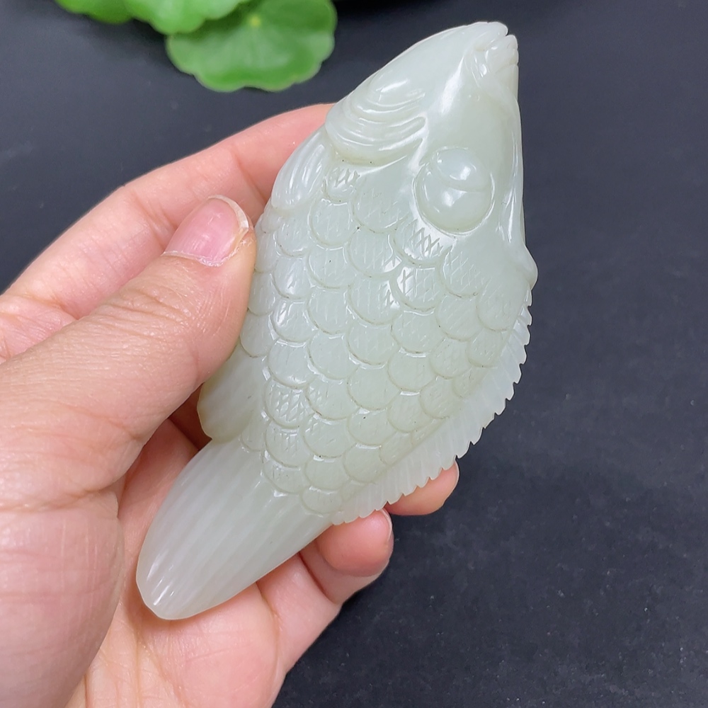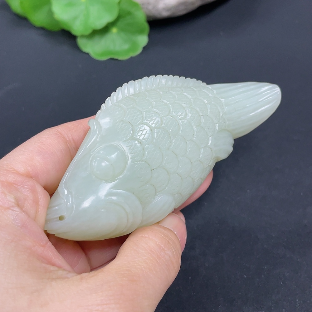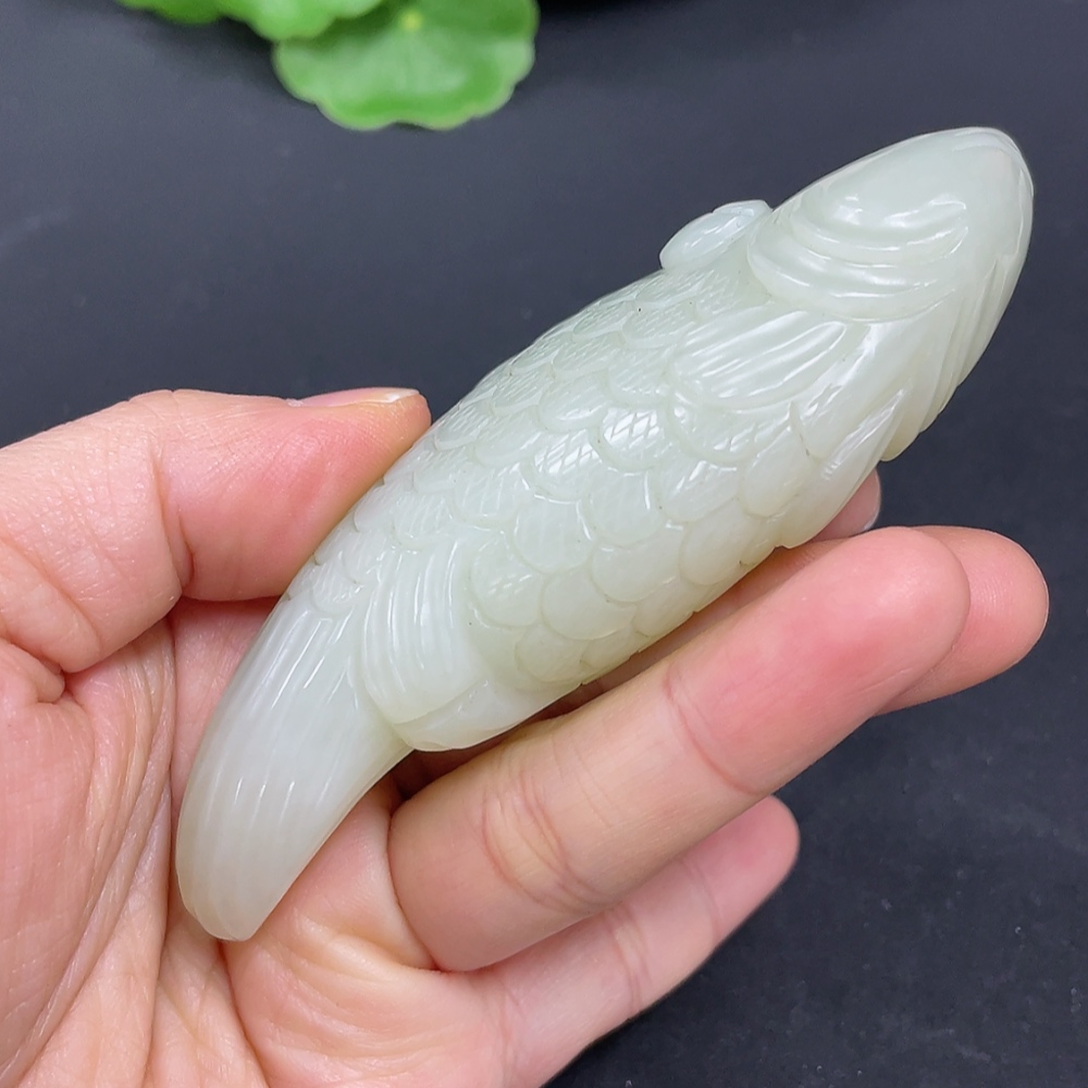 Hetian Jade Handheld Carving Fish Total Weight Approx. 110g