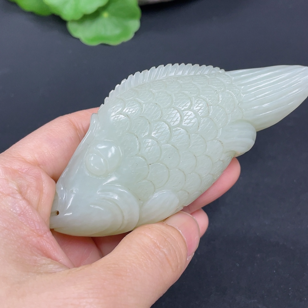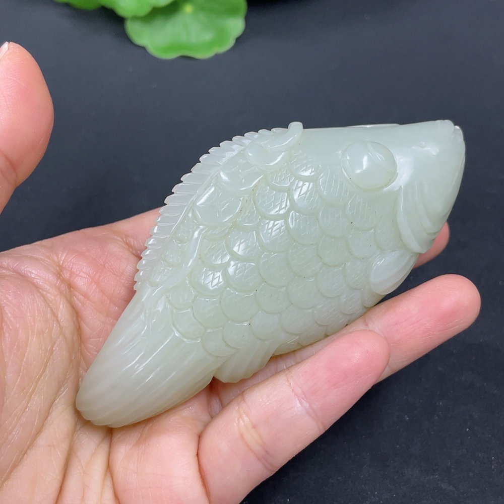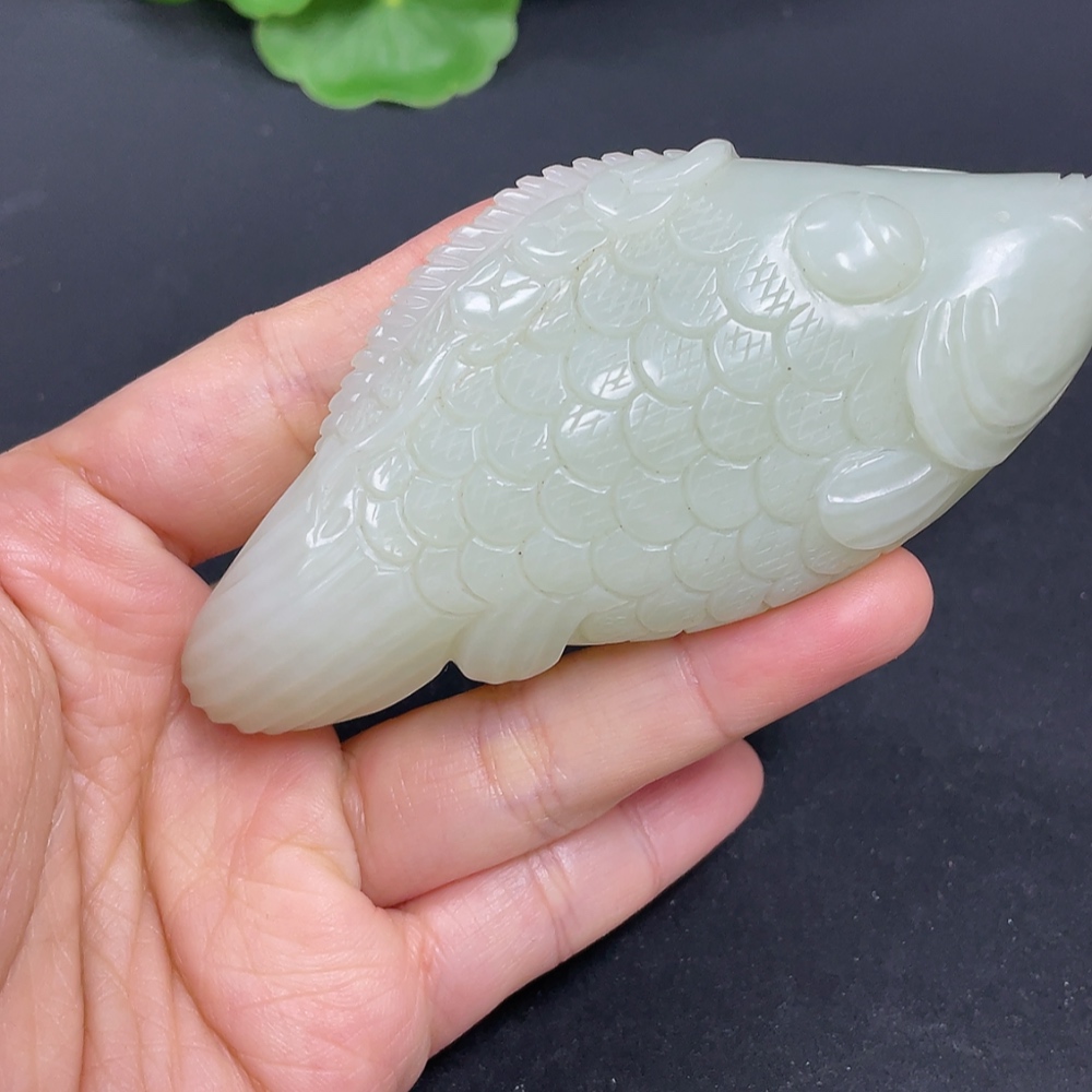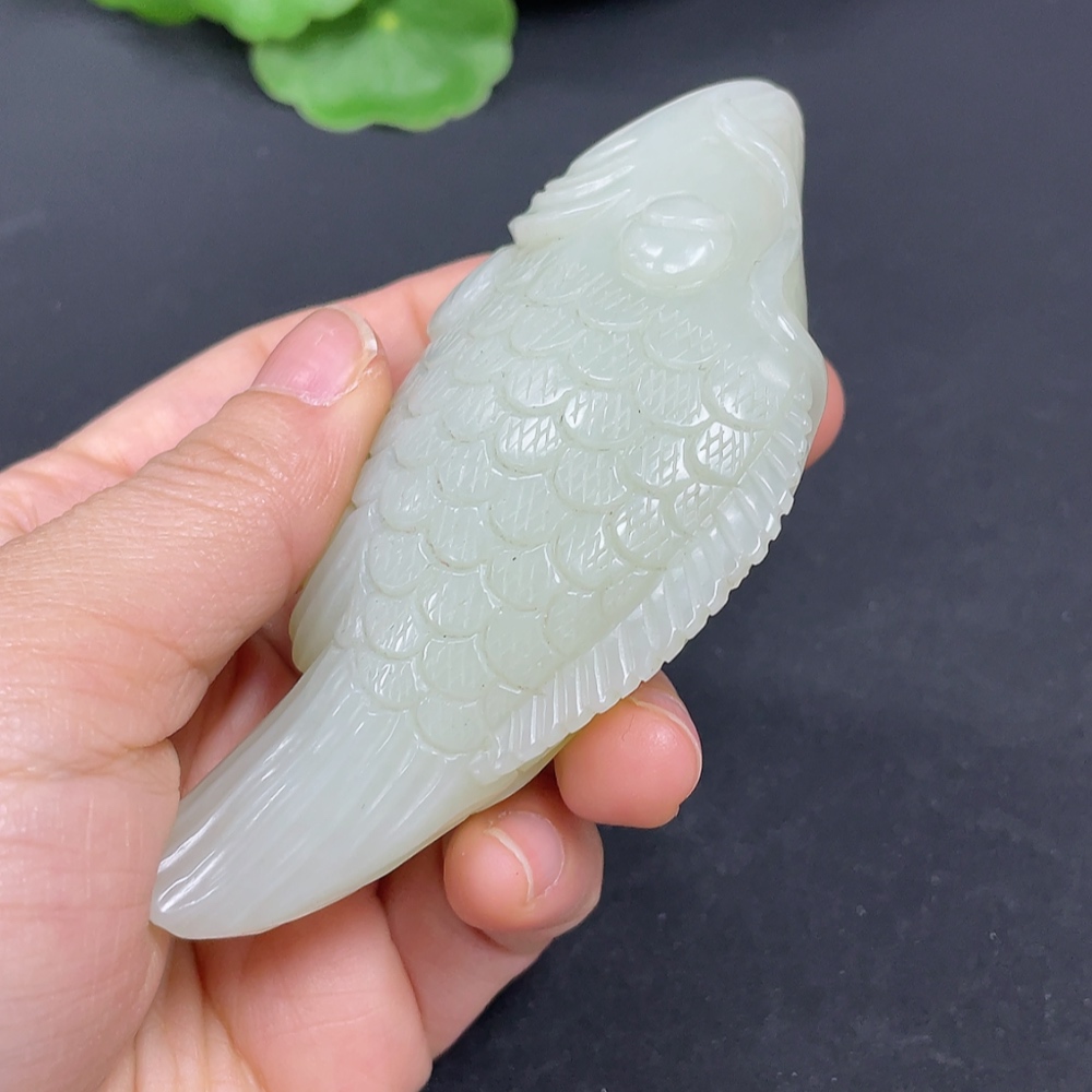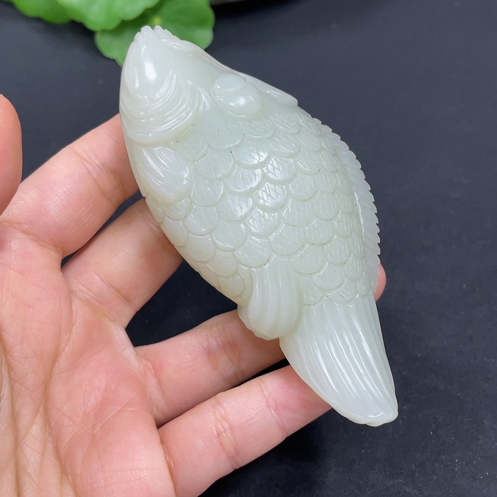 Hetian Jade Handheld Carving Fish Total Weight Approx. 110g