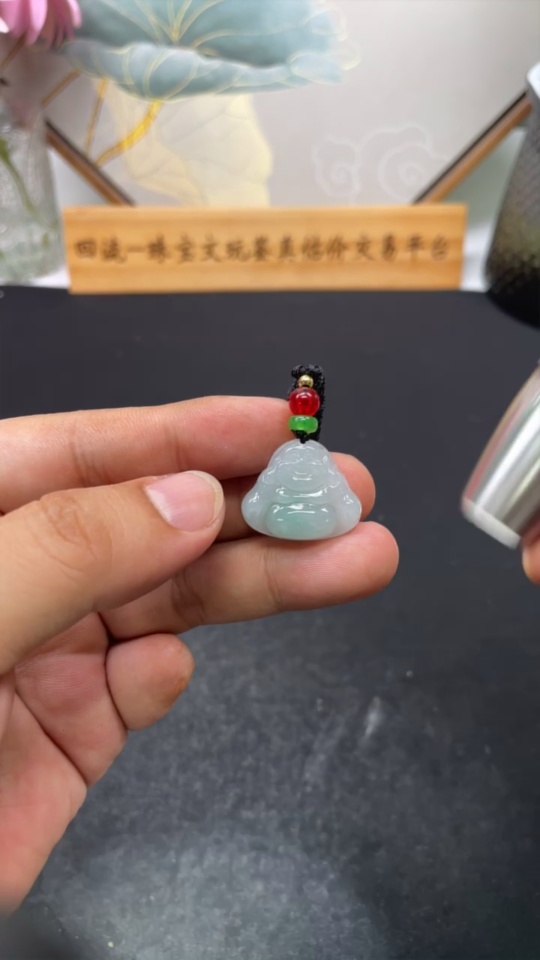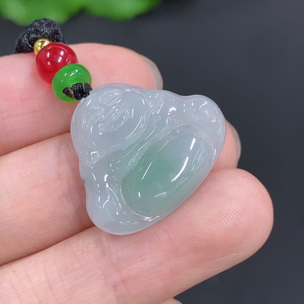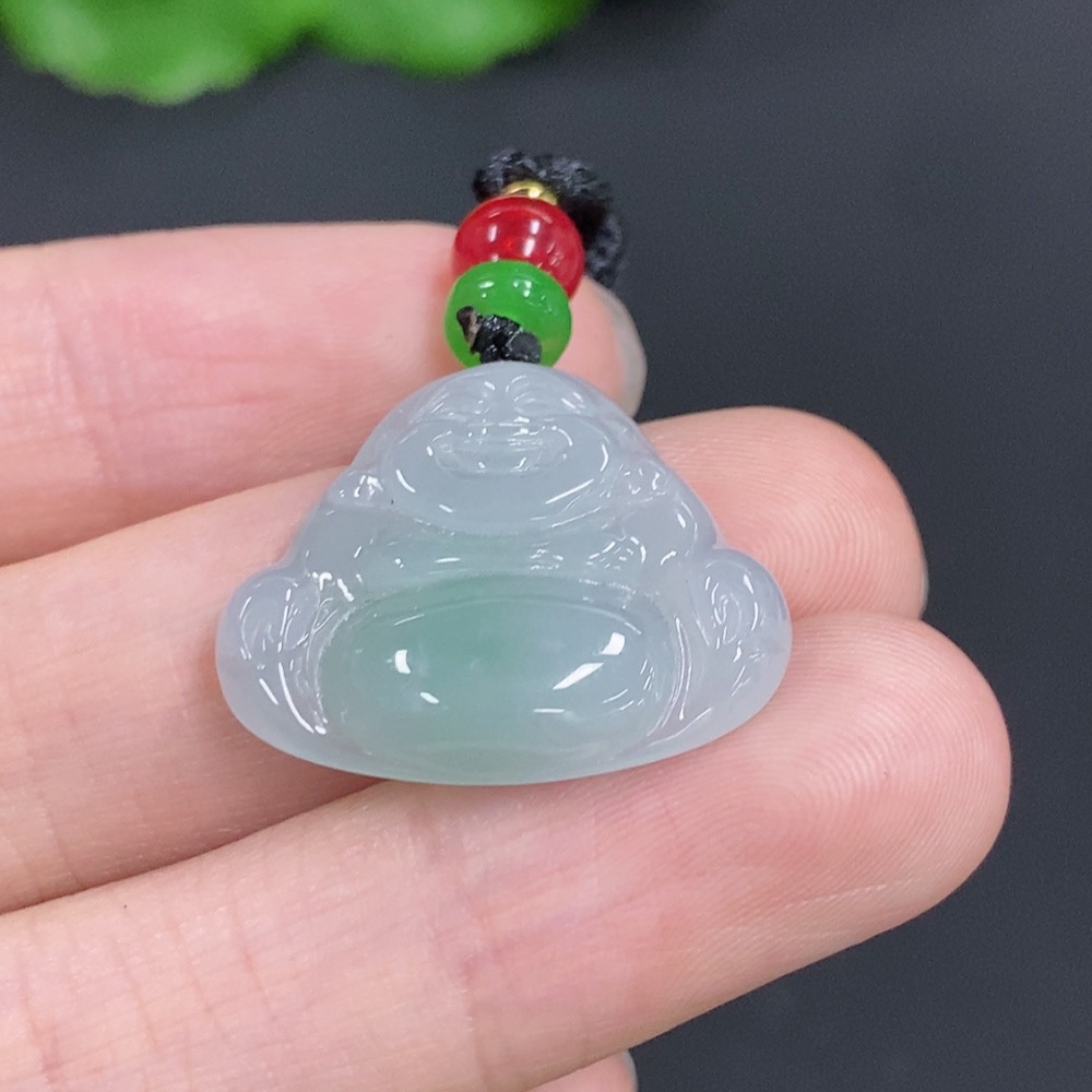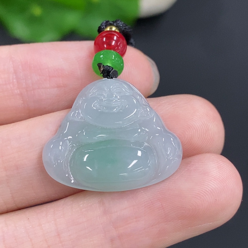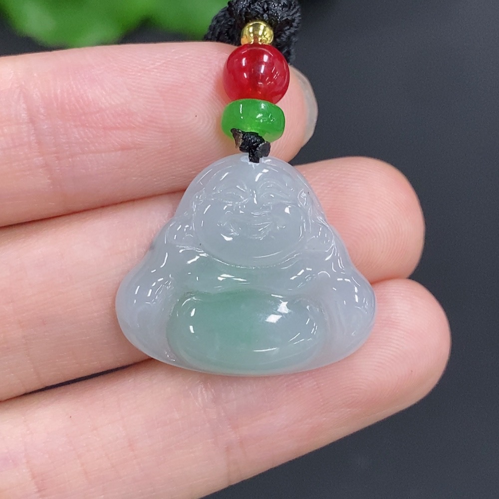 Jadeite Buddha Pendant, Total Weight Approx. 5.3g (Including Rope Weight)
