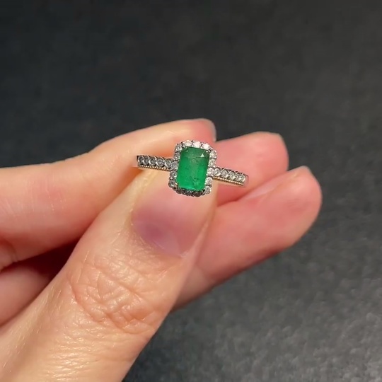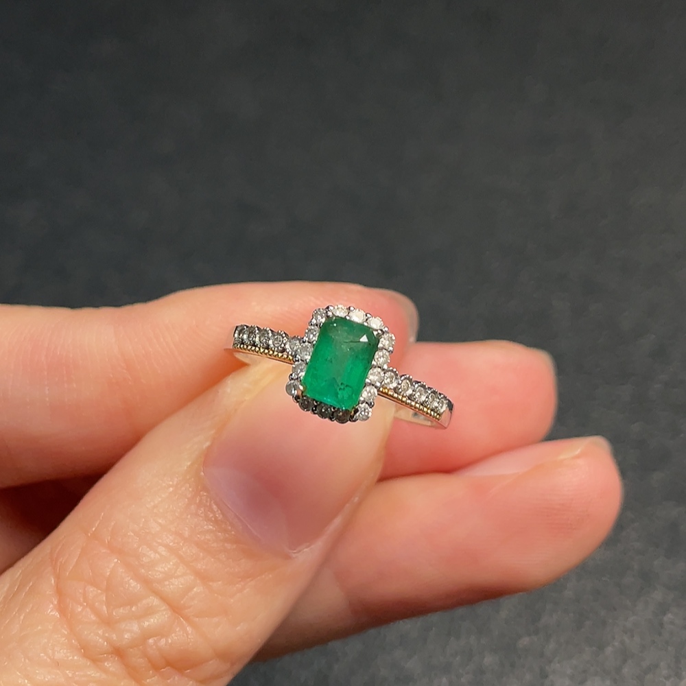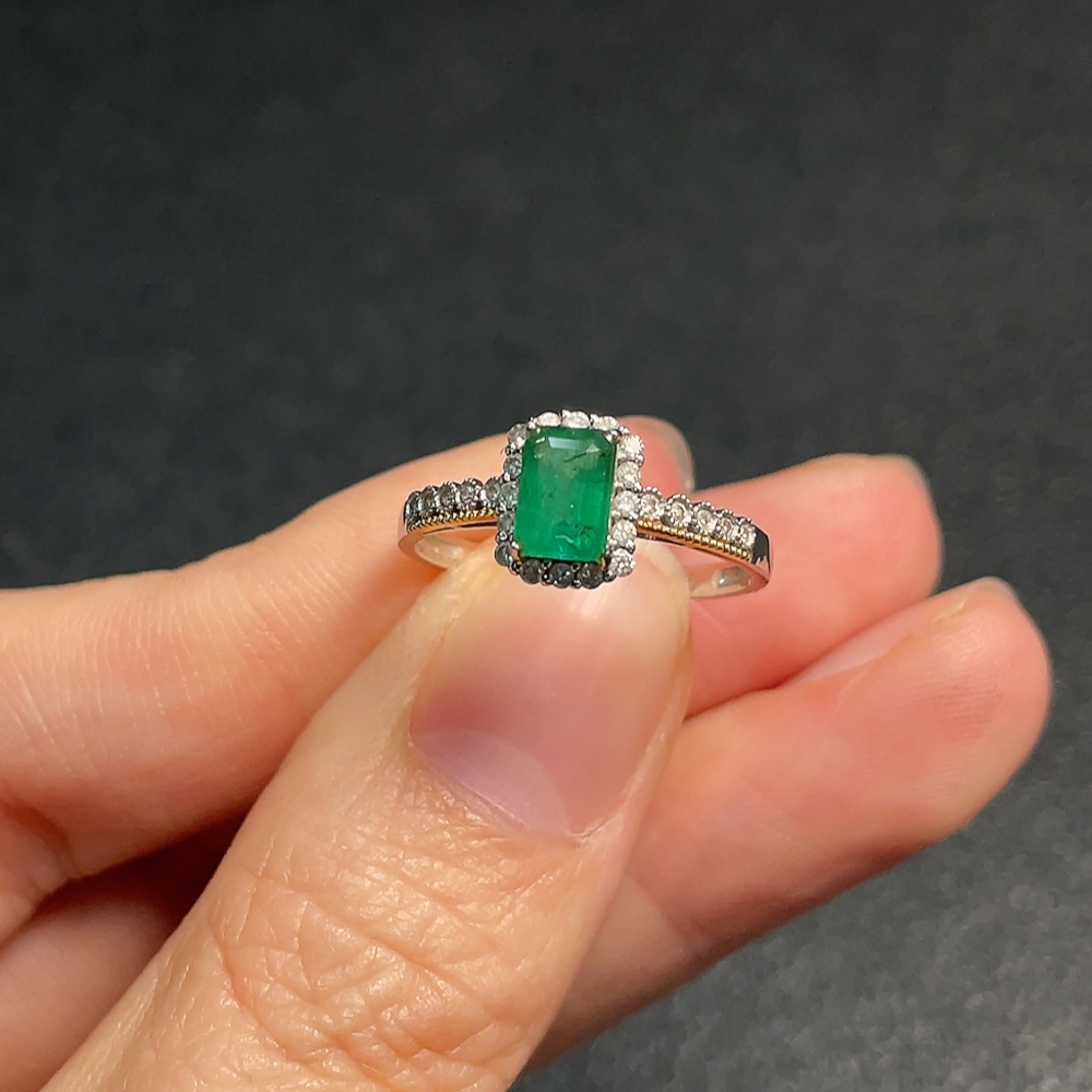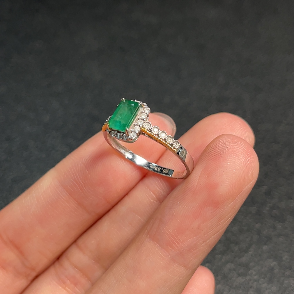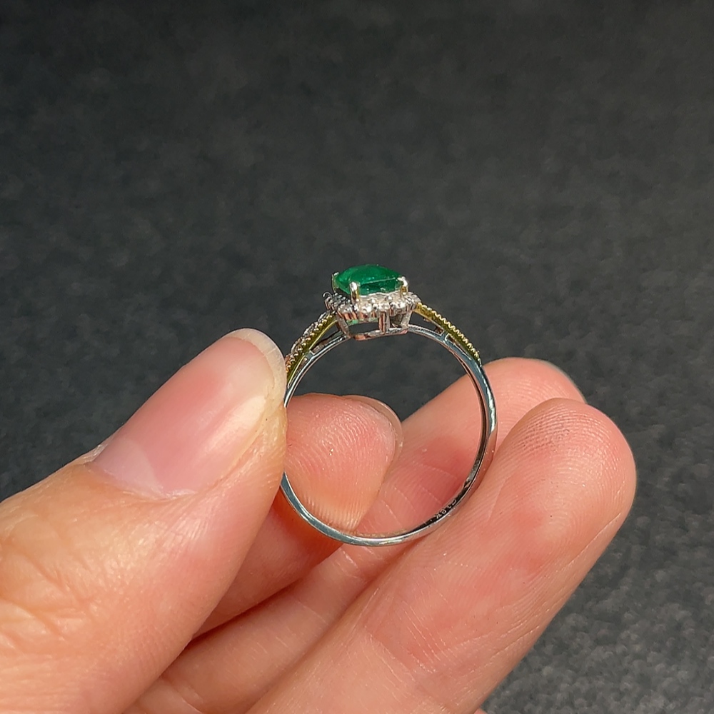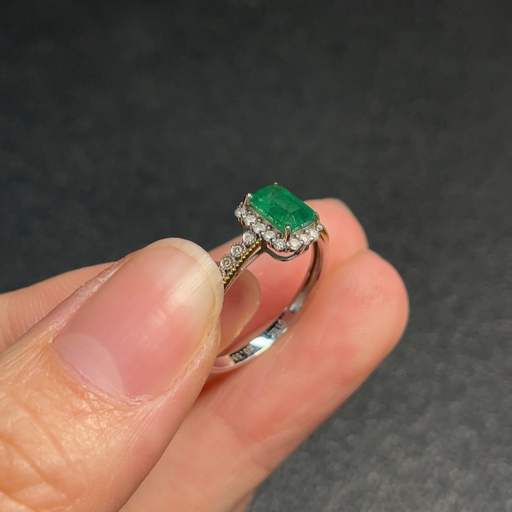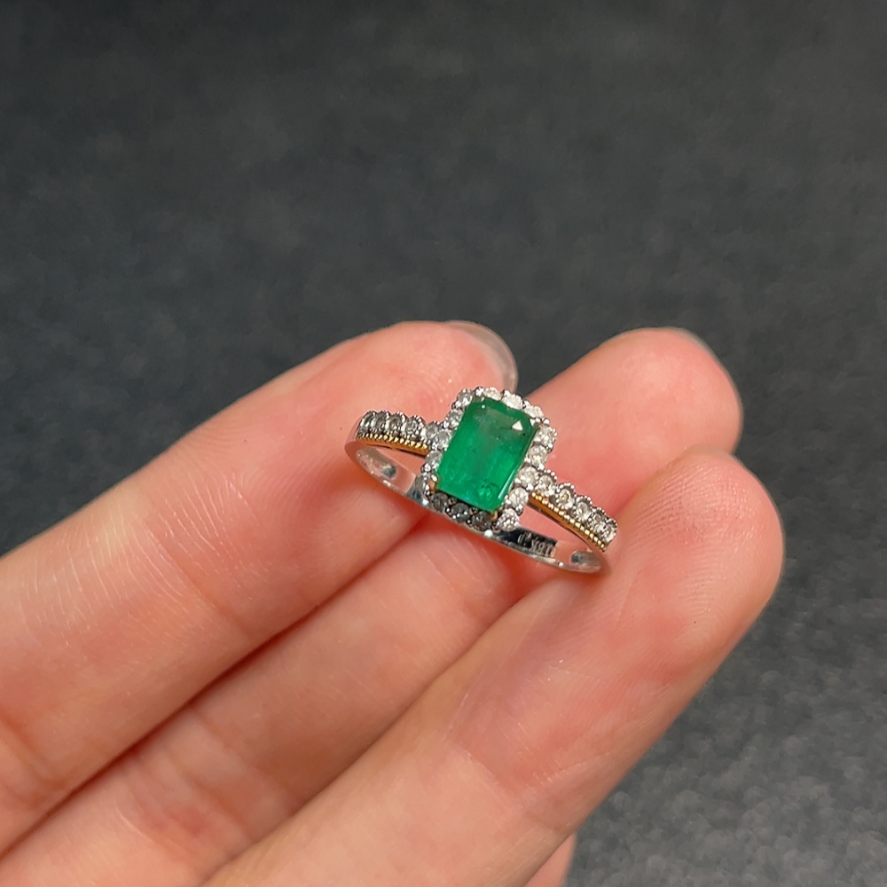 18K Emerald Ring with Diamond Accents, Clarity Enhanced, Total Weight Approx. 1.57g, Size 14