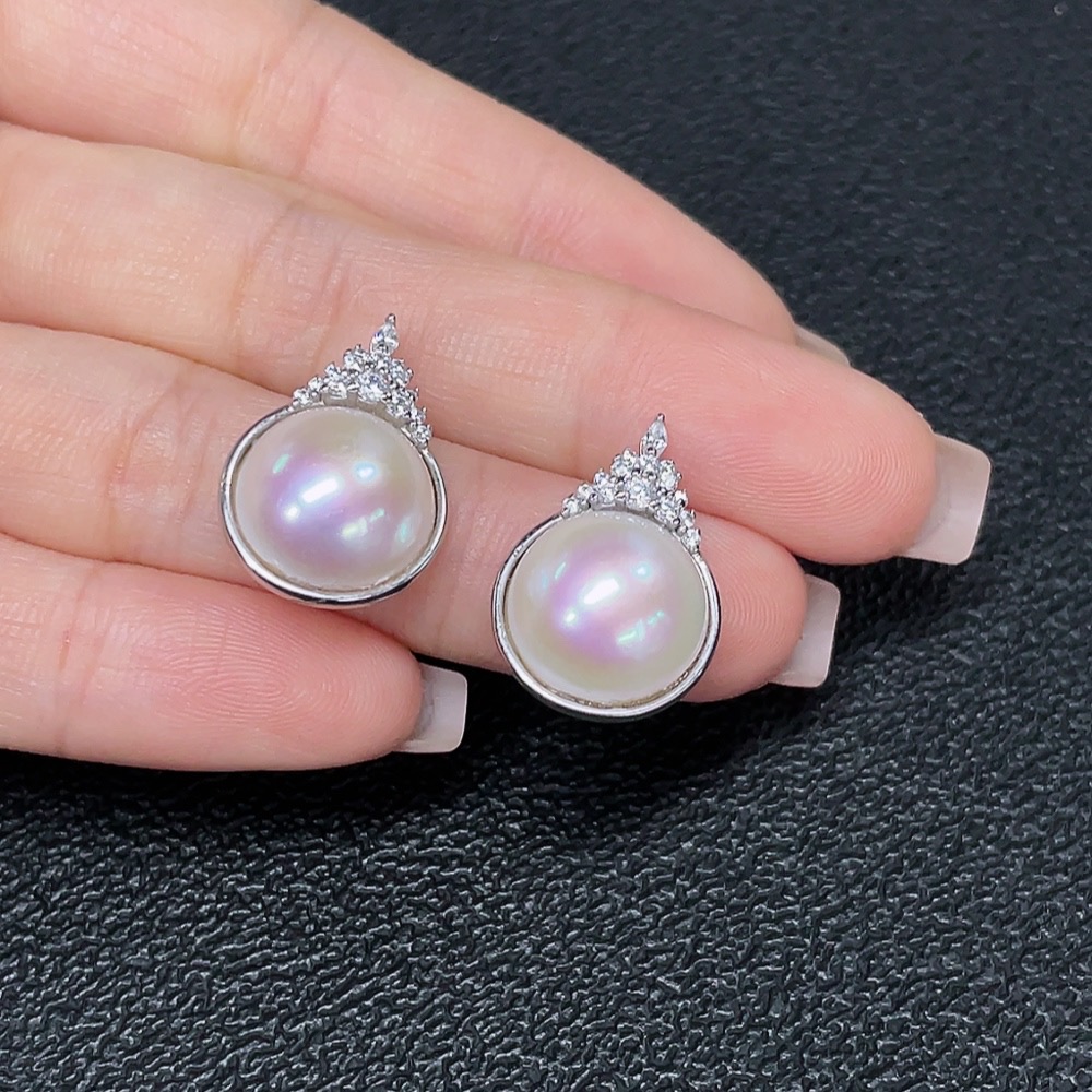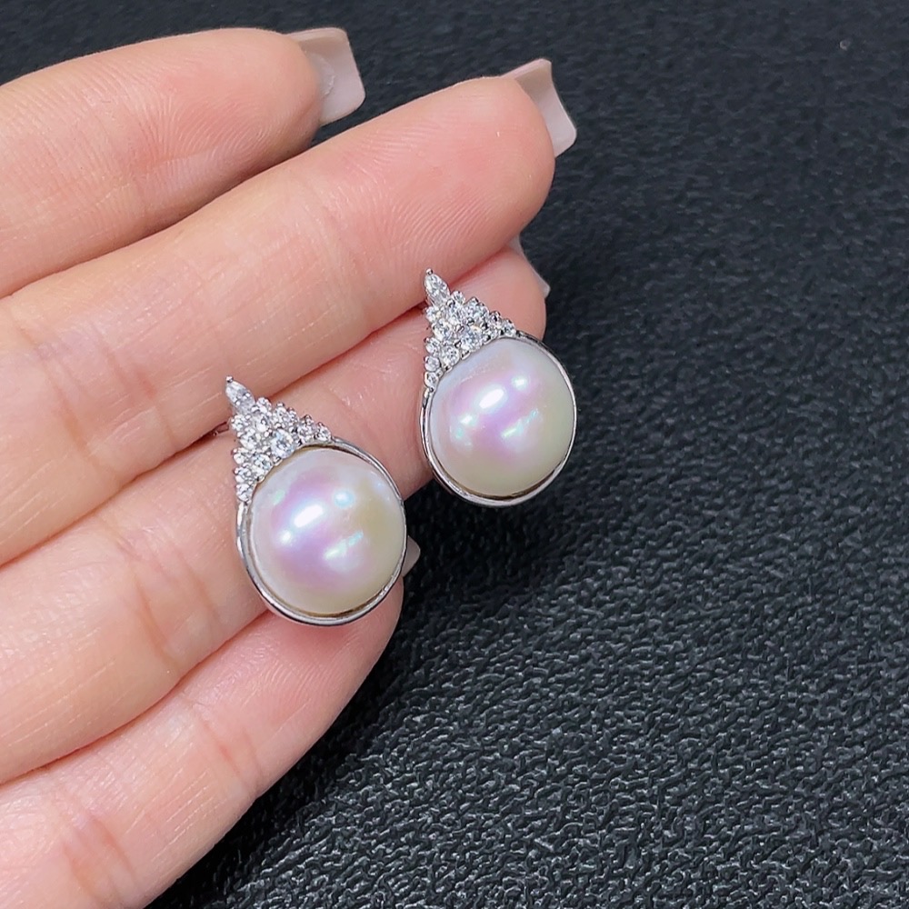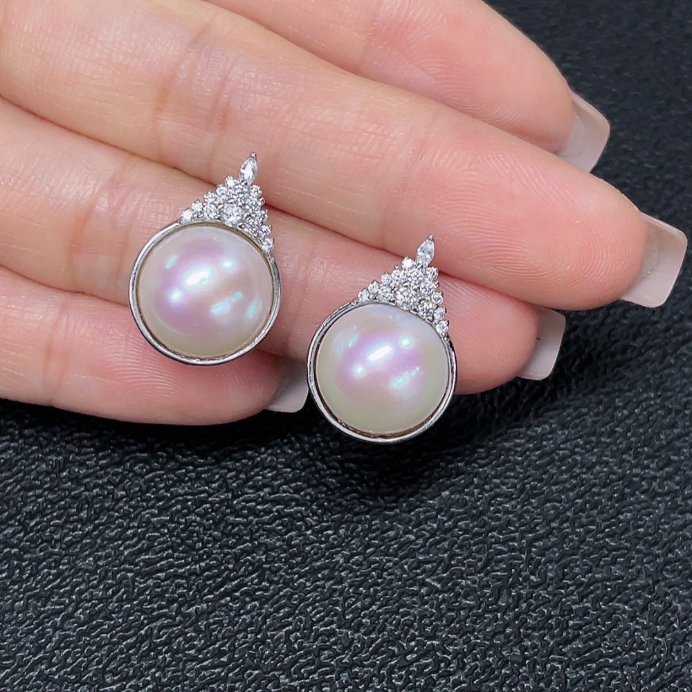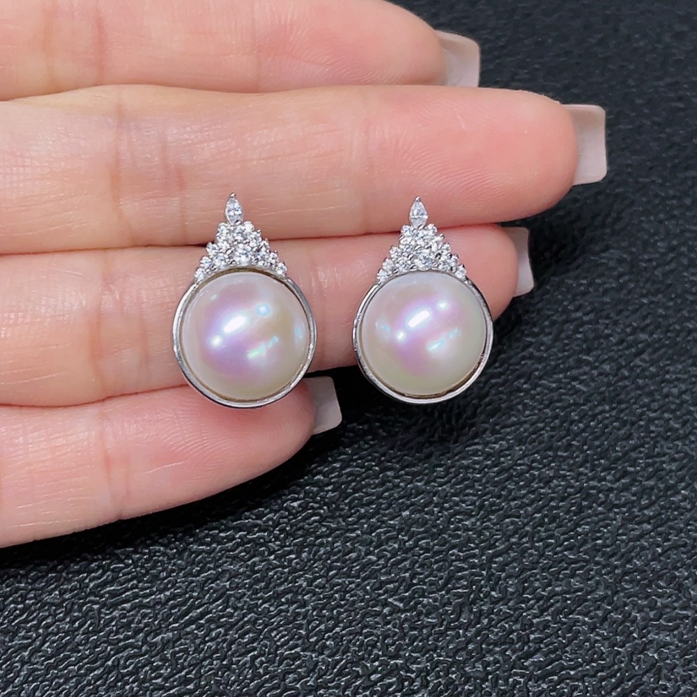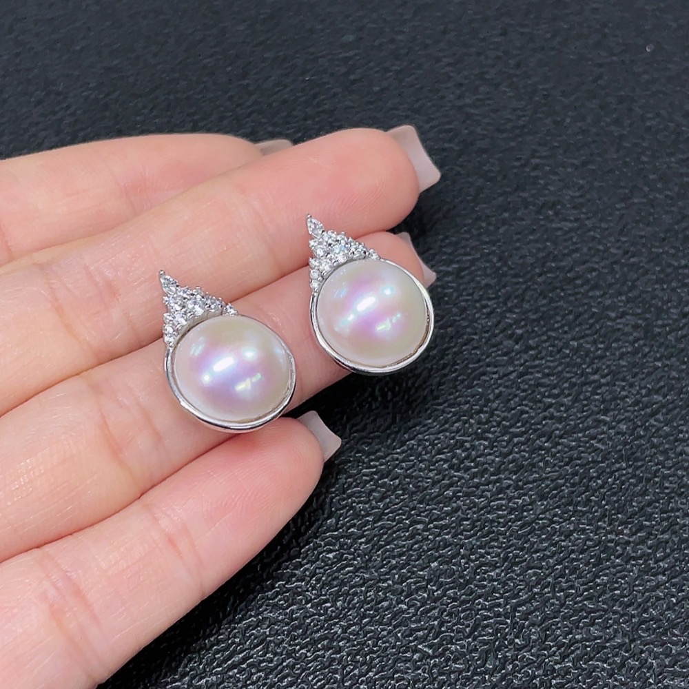 Assembled Pearl Ear Studs Non-Gold Setting Approx. 11.1mm Total Weight About 5.59g