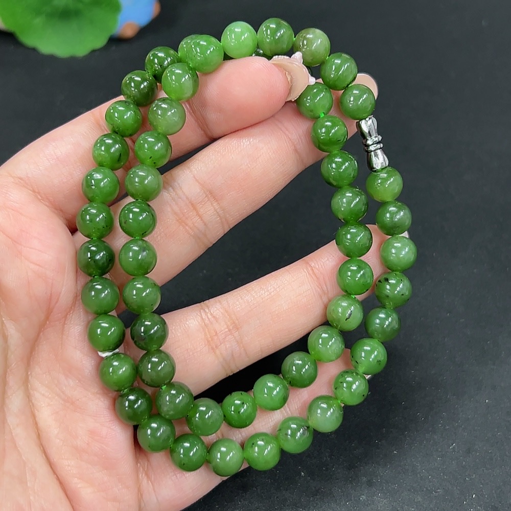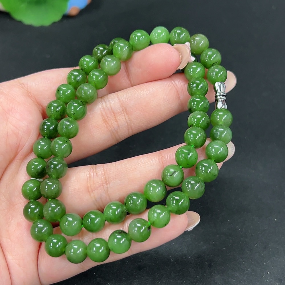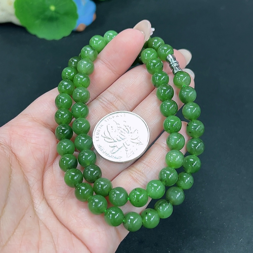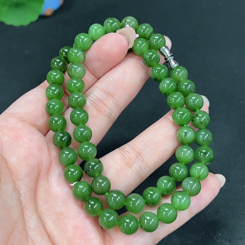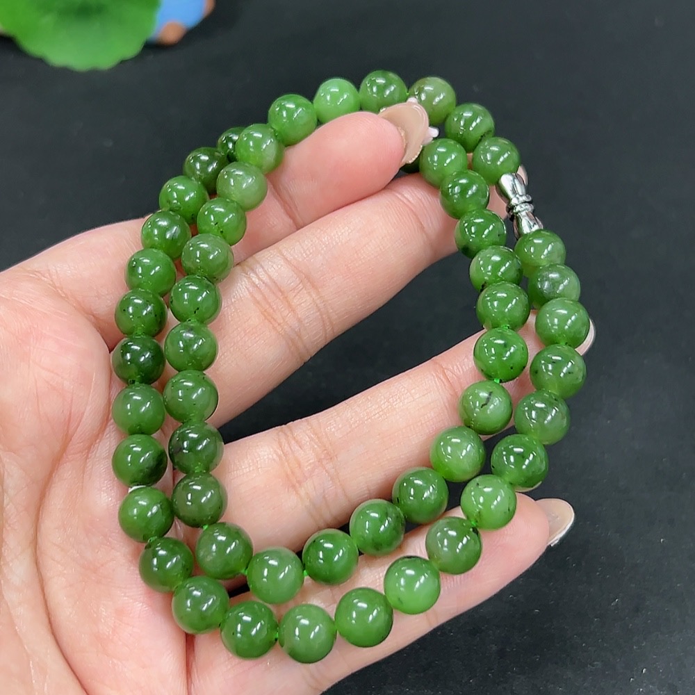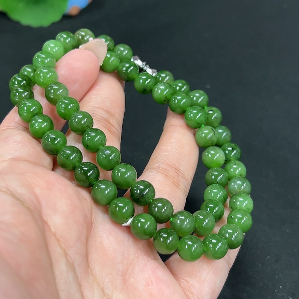 Hetian Jade Bead Necklace, Approx. 7.8mm, Total Weight Approx. 45.6g