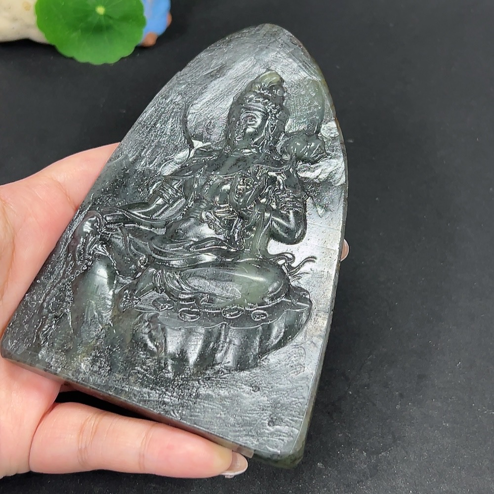Hetian Jade Ornament - Bodhisattva Mahasthamaprapta, Total Weight Approx. 249.9g, Undetermined Skin Color Origin