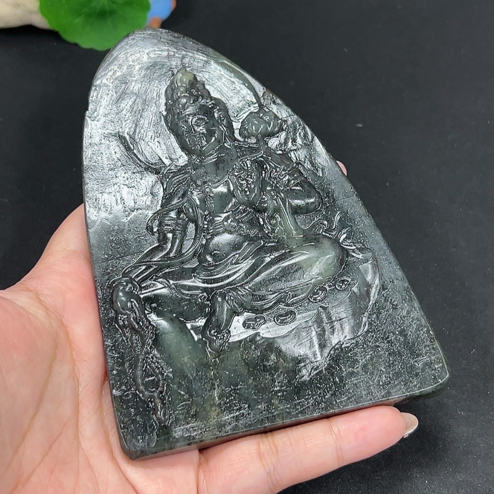 Trezaar - Hetian Jade Ornament - Bodhisattva Mahasthamaprapta, Total Weight Approx. 249.9g, Undetermined Skin Color Origin
