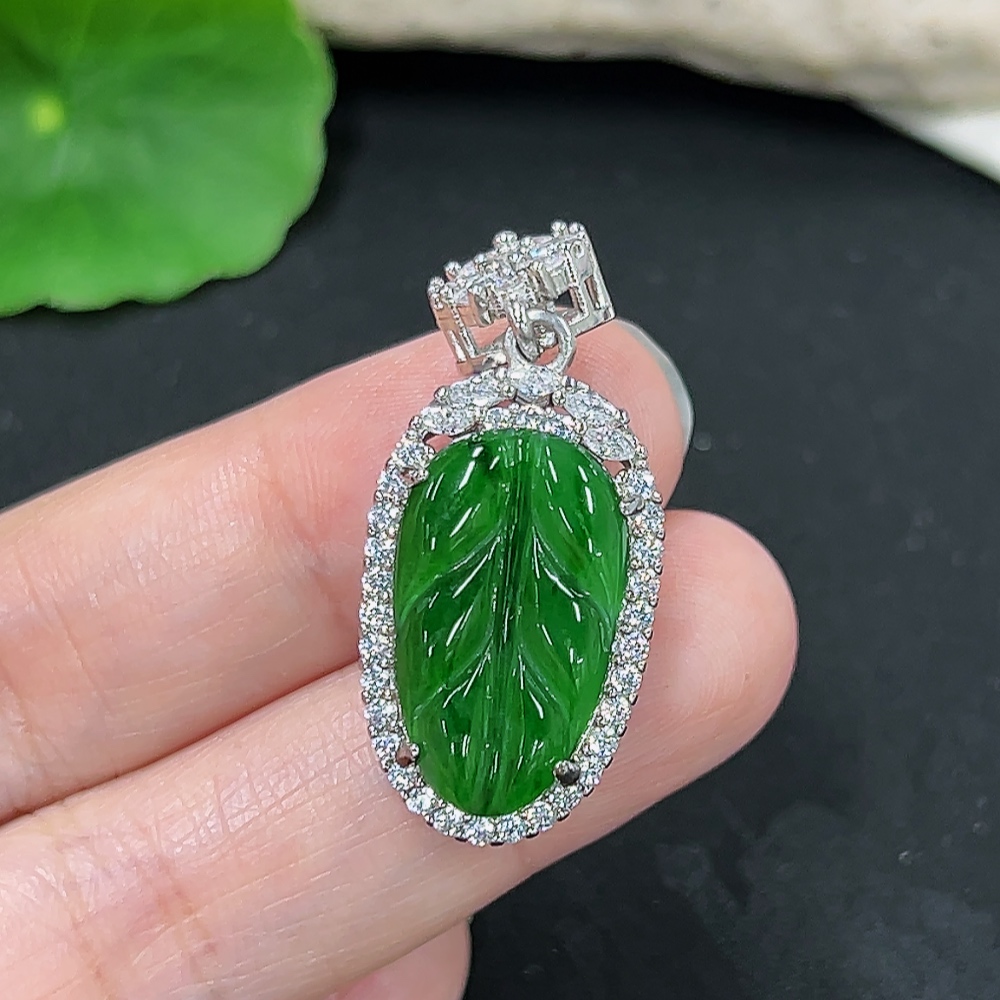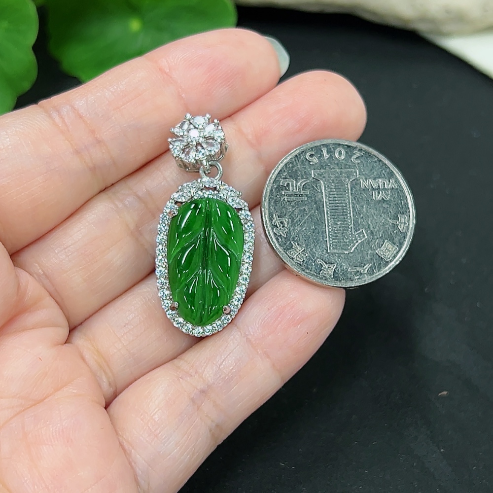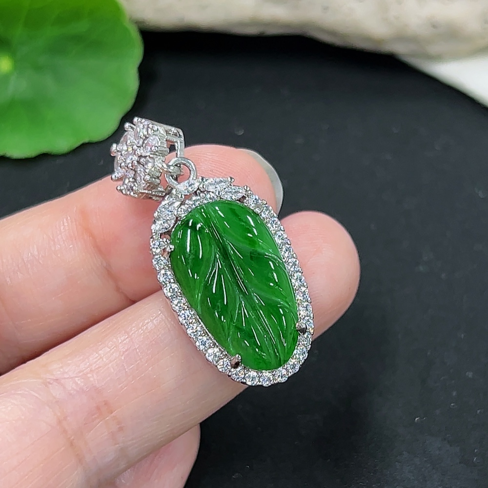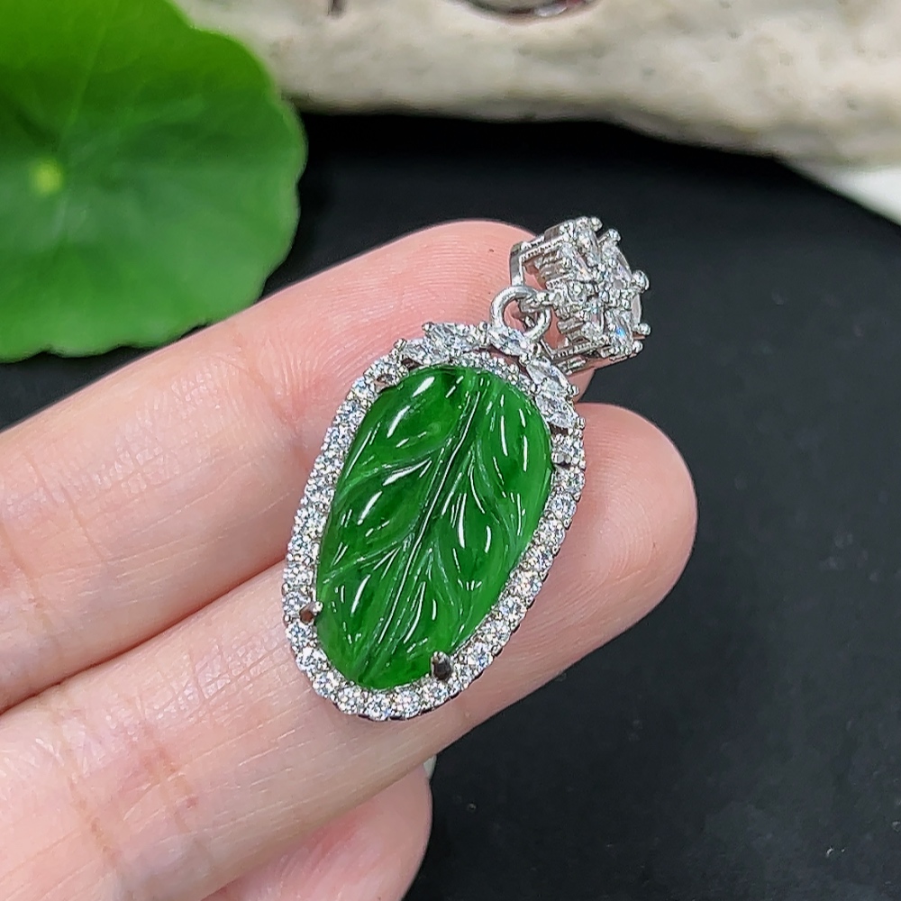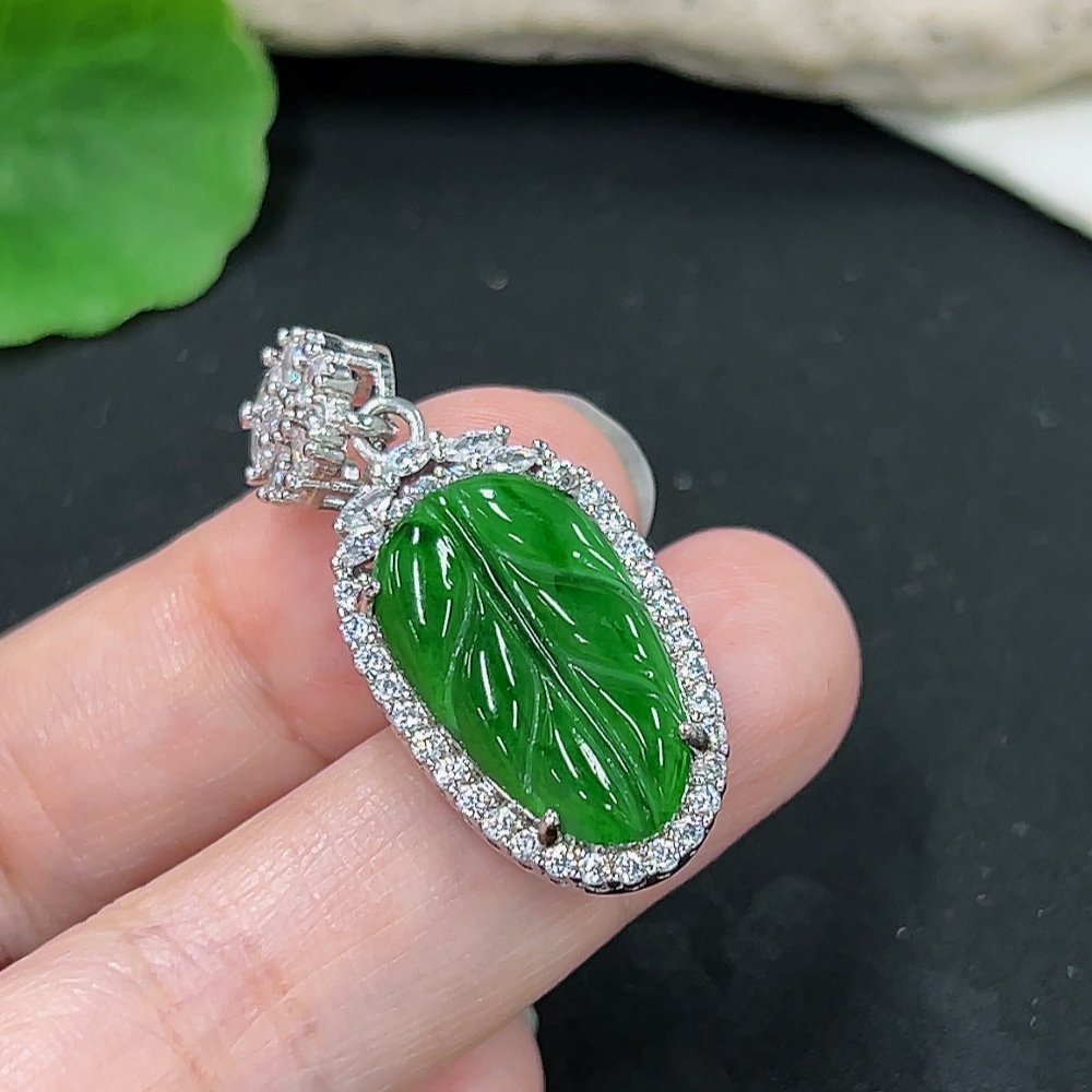 Jadeite Leaf Pendant Total Weight About 5.7g (Non-Gold Inlaid)