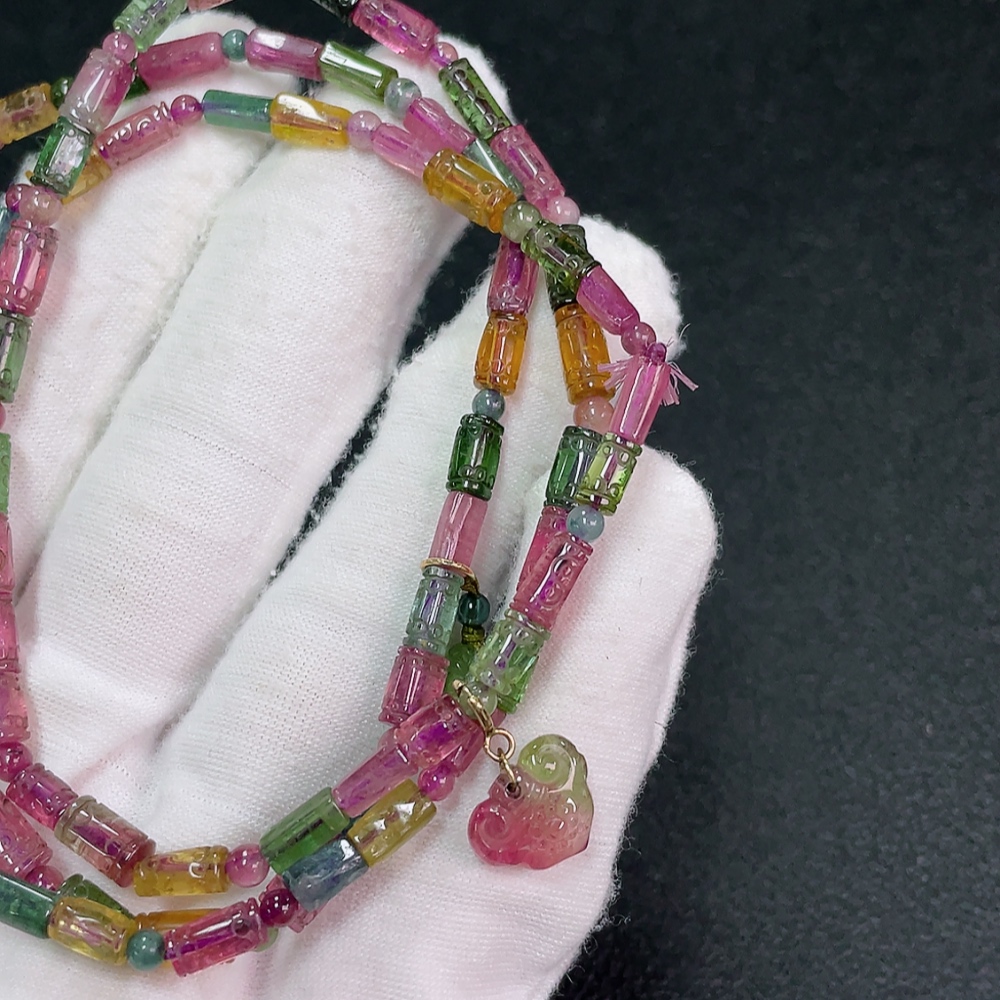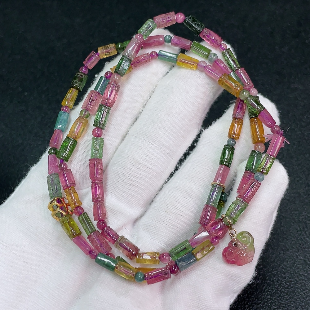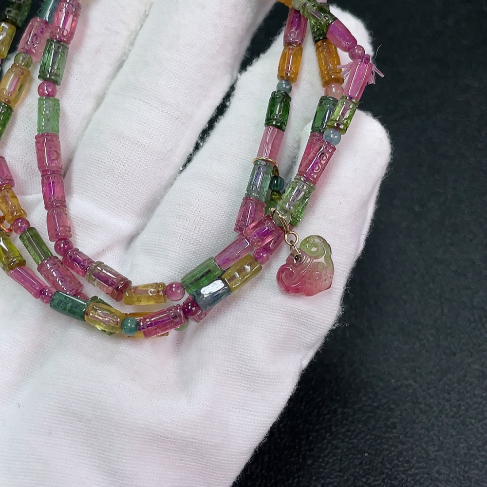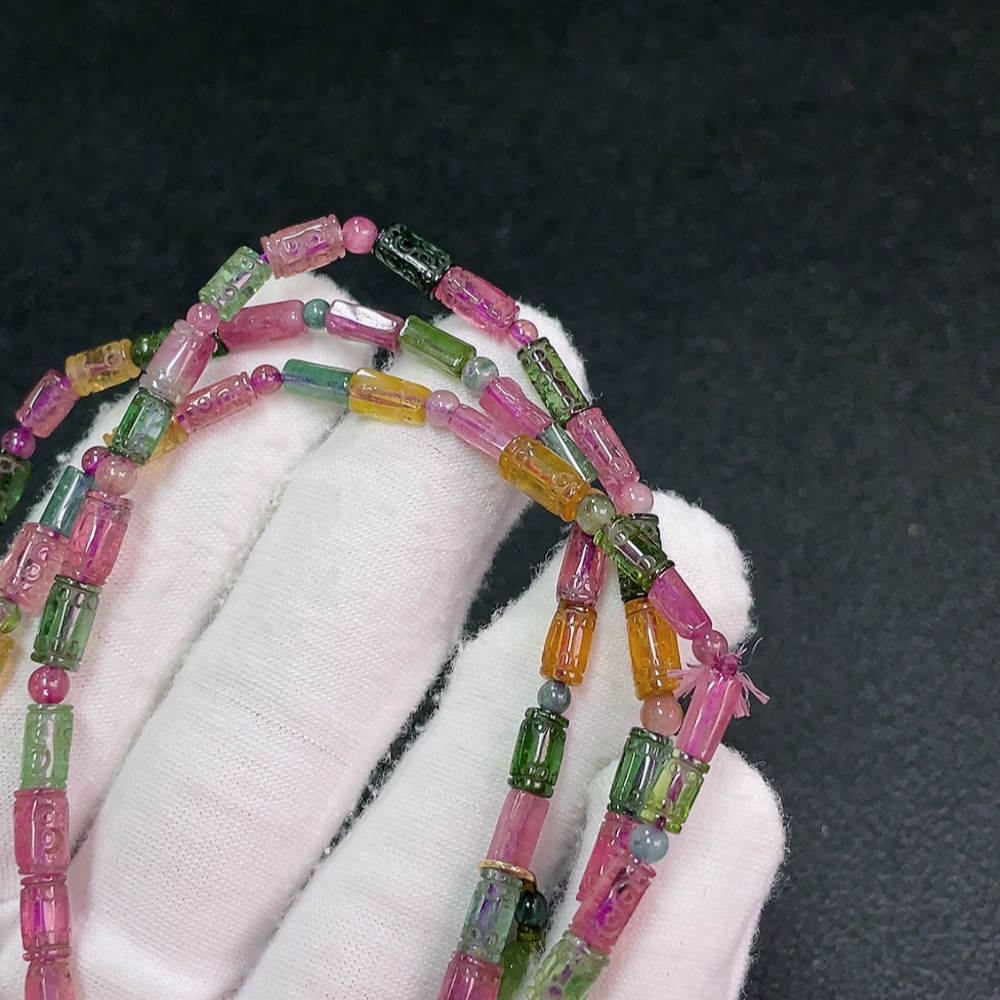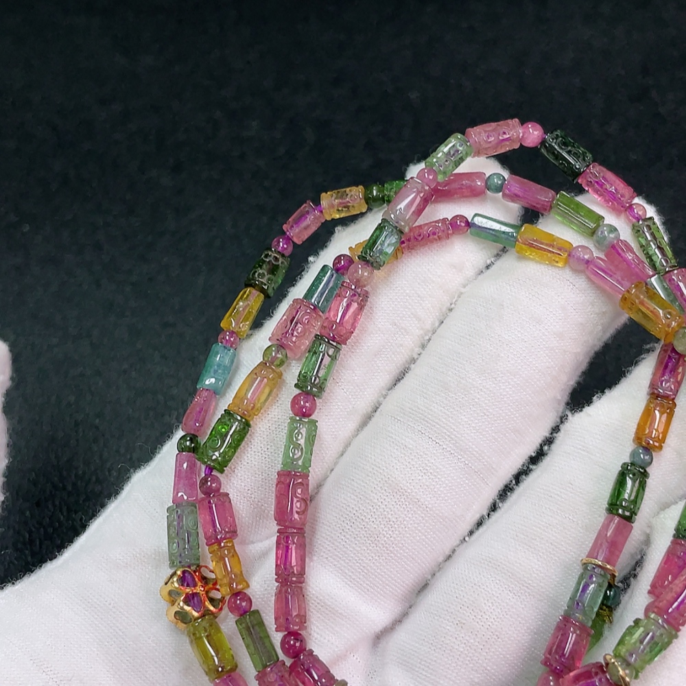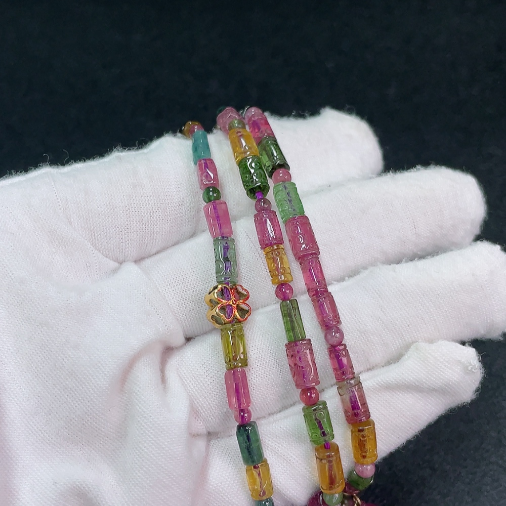 Tourmaline Bead Necklace No Hallmark Gold Content Marked in Red as 18K Rest Non-Gold Organic Material Visible Total Weight Approx. 21.87g Bead Size ~4.2mm