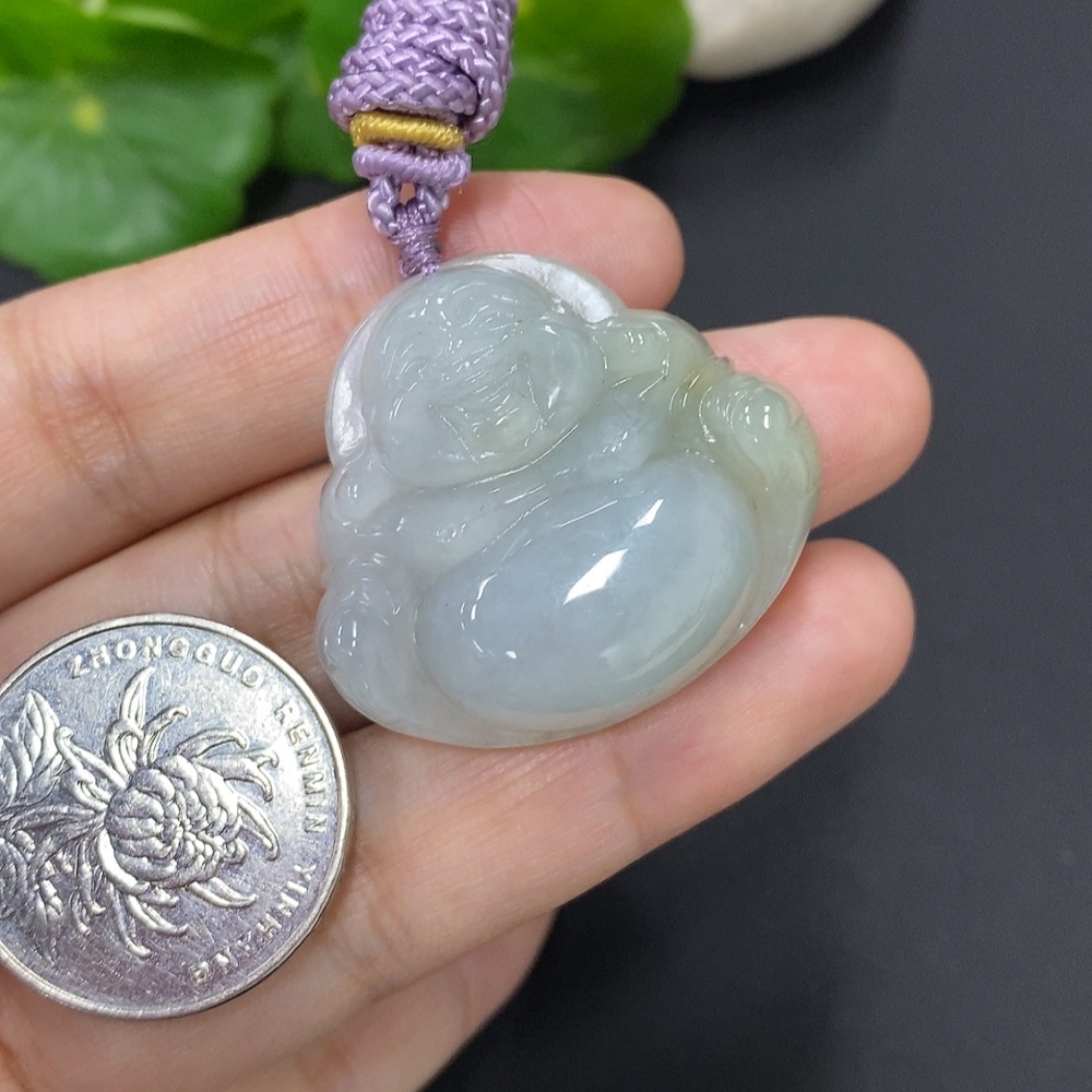 Jadeite Buddha Pendant with Cord Total Weight Approx. 15.9g