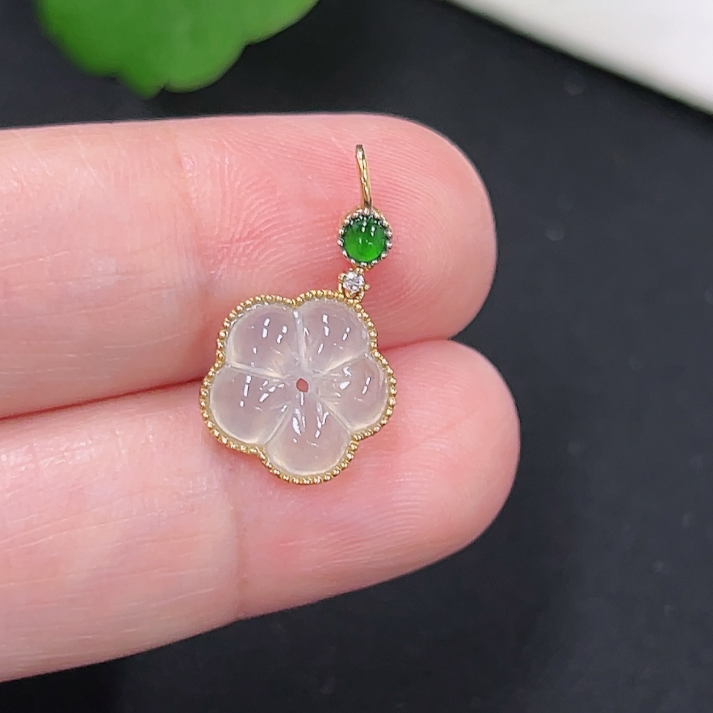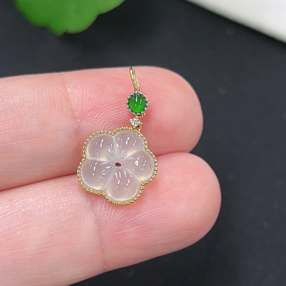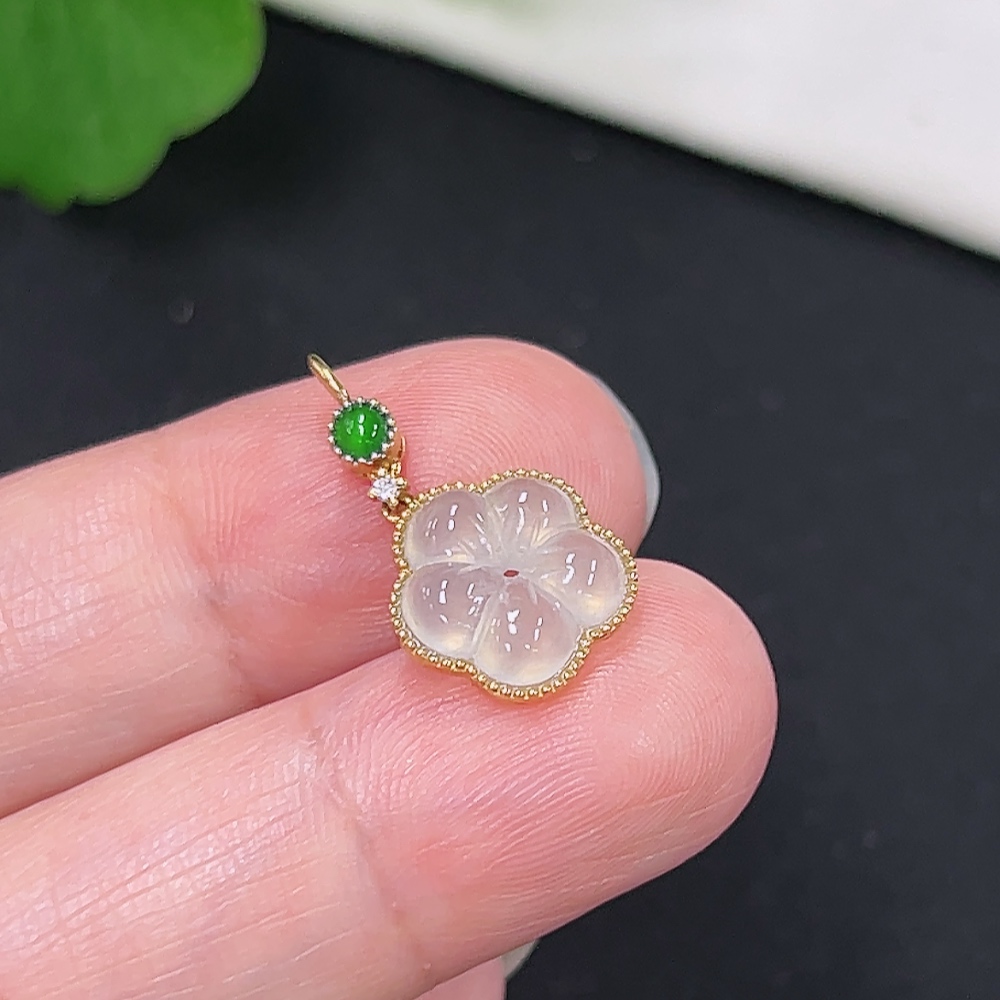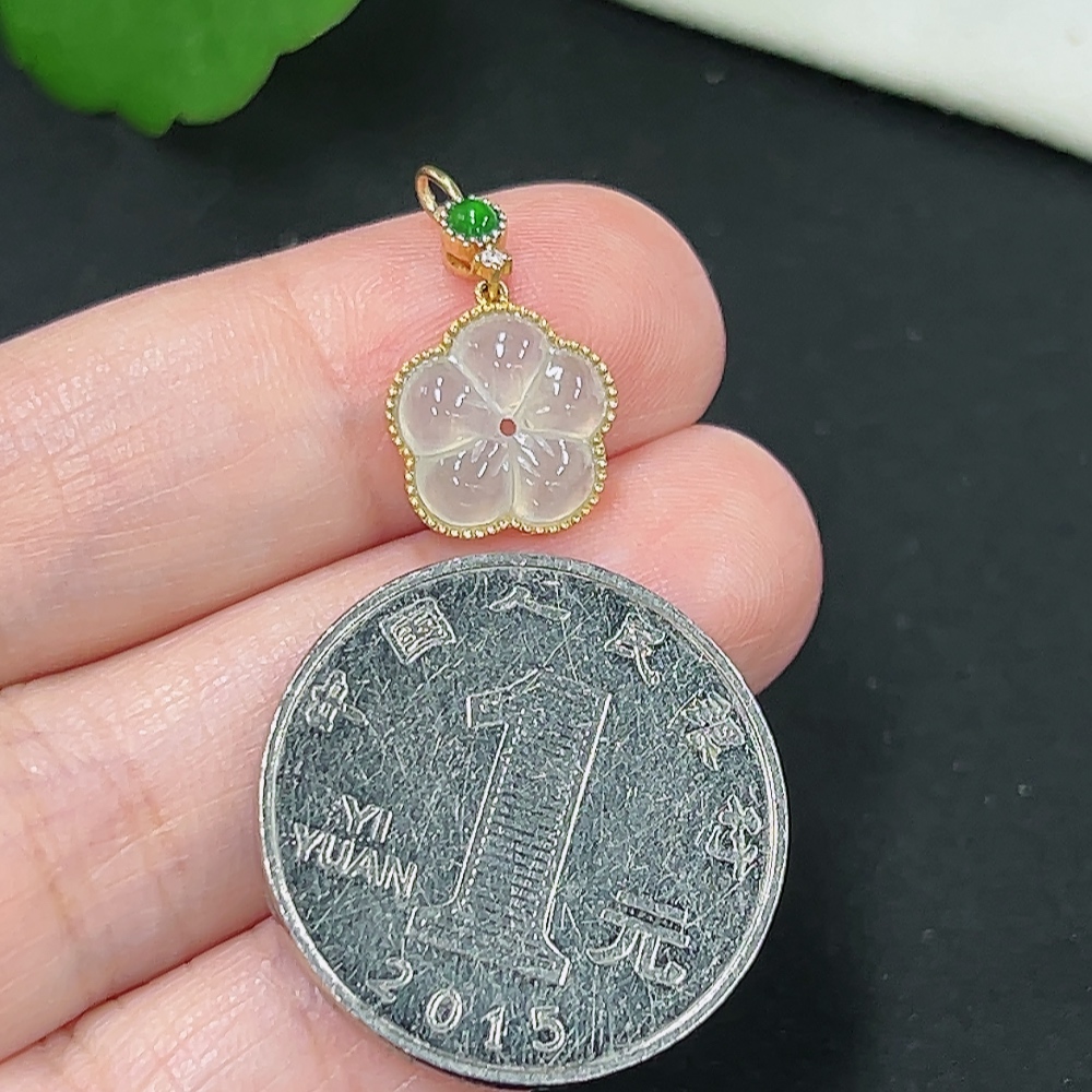 Jadeite Inlaid Pendant 18K Gold Total Weight Approx. 1.1g (Non-Diamond)