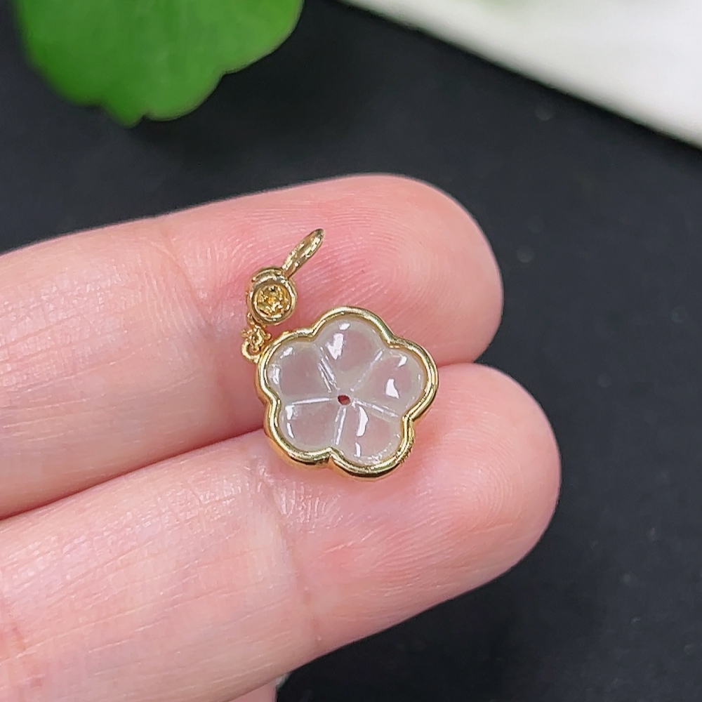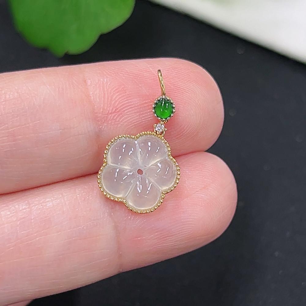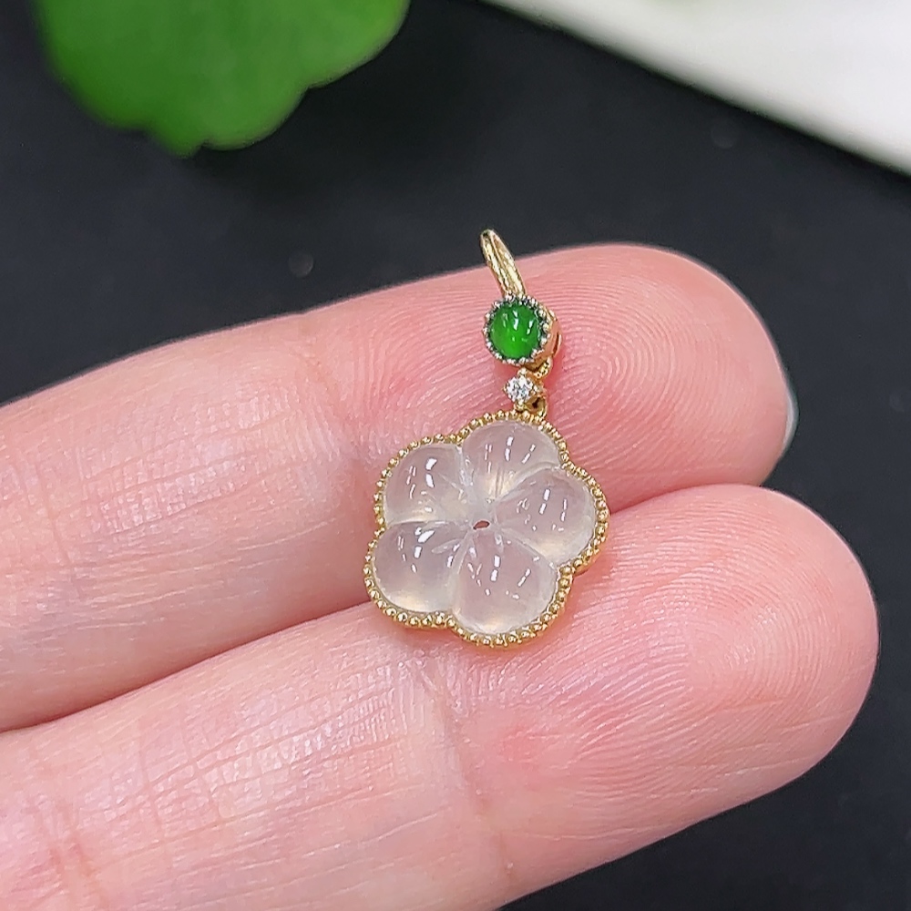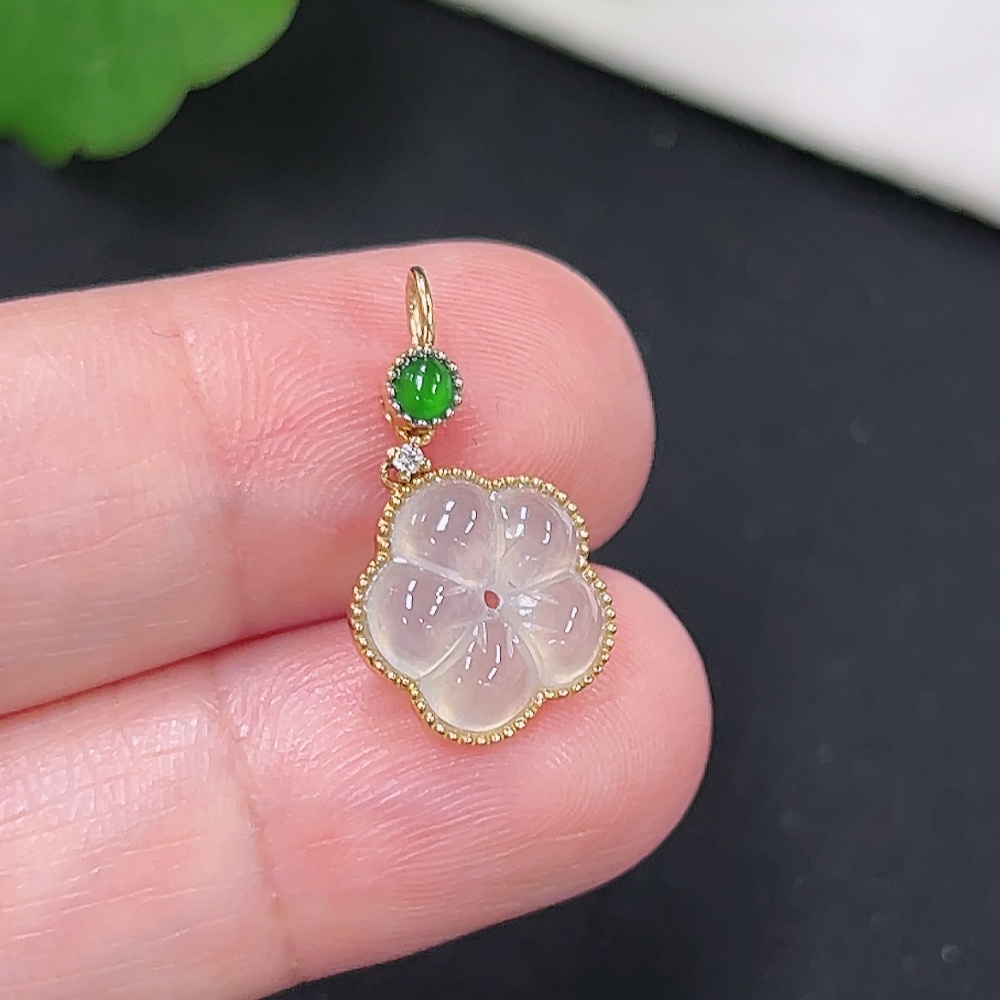 Jadeite Inlaid Pendant 18K Gold Total Weight Approx. 1.1g (Non-Diamond)