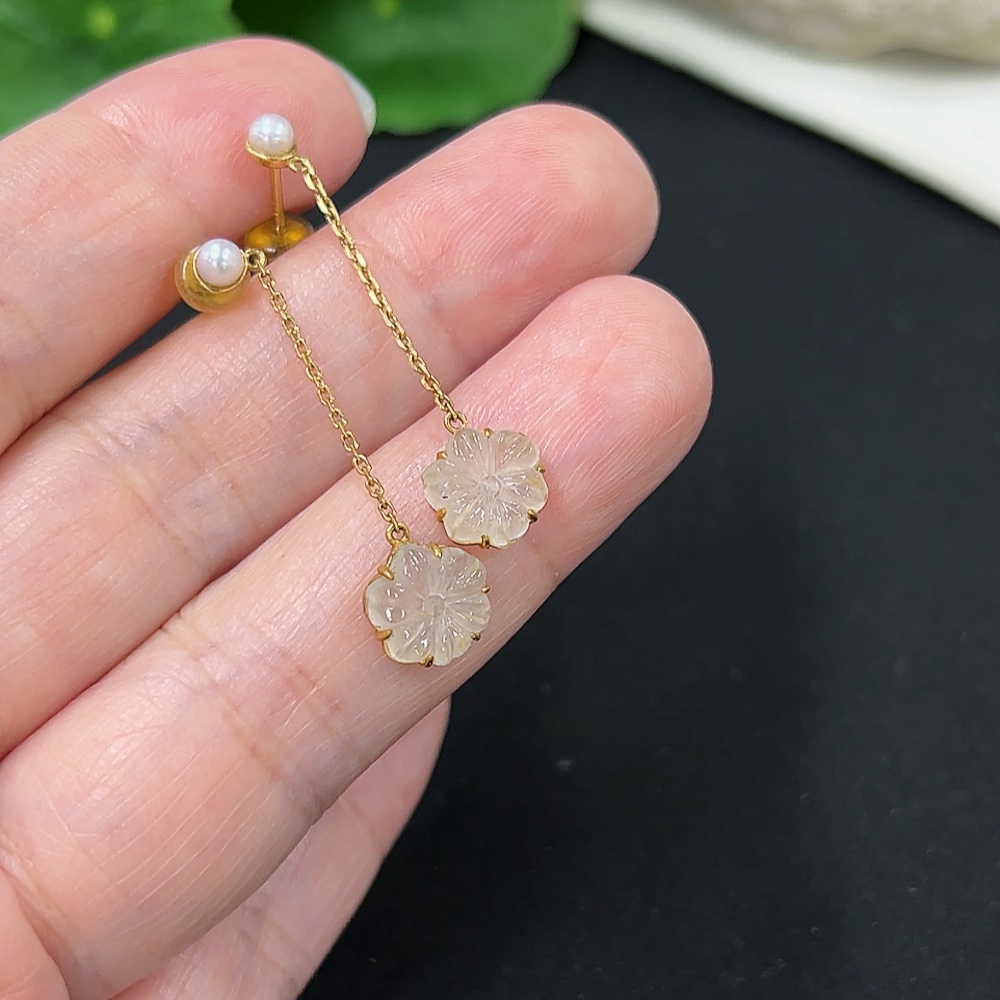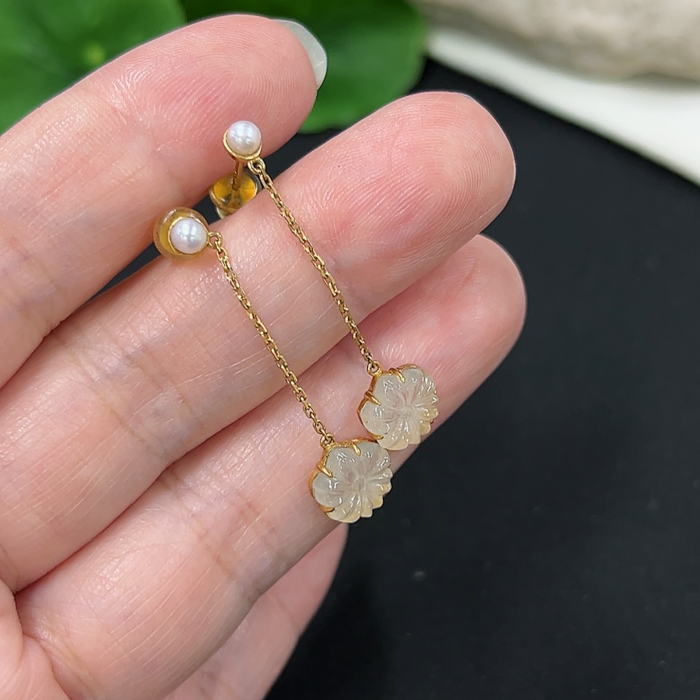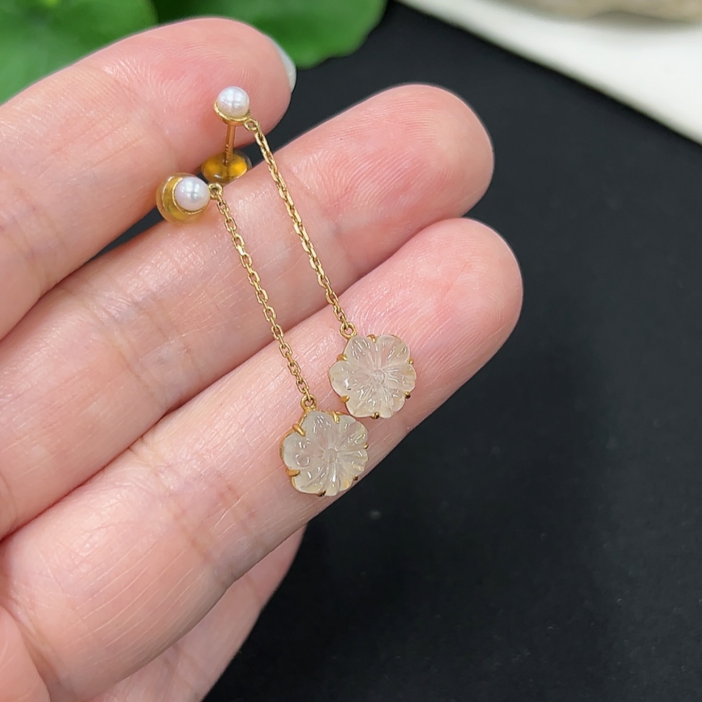 A pair of jadeite inlaid earrings with 18K gold, total weight approx. 1.6g (including ear stoppers) (with non-A grade beads)