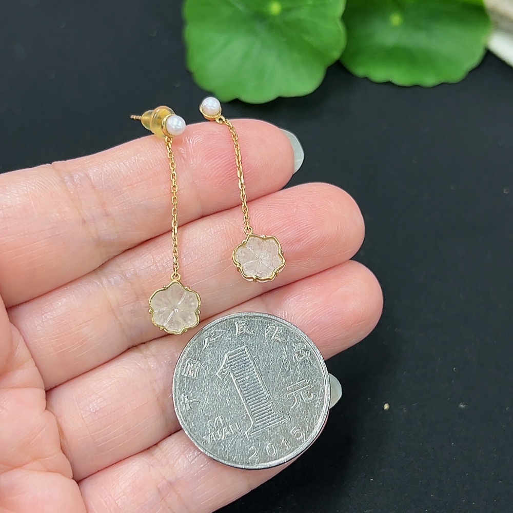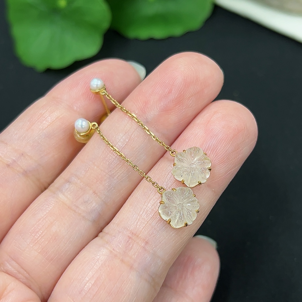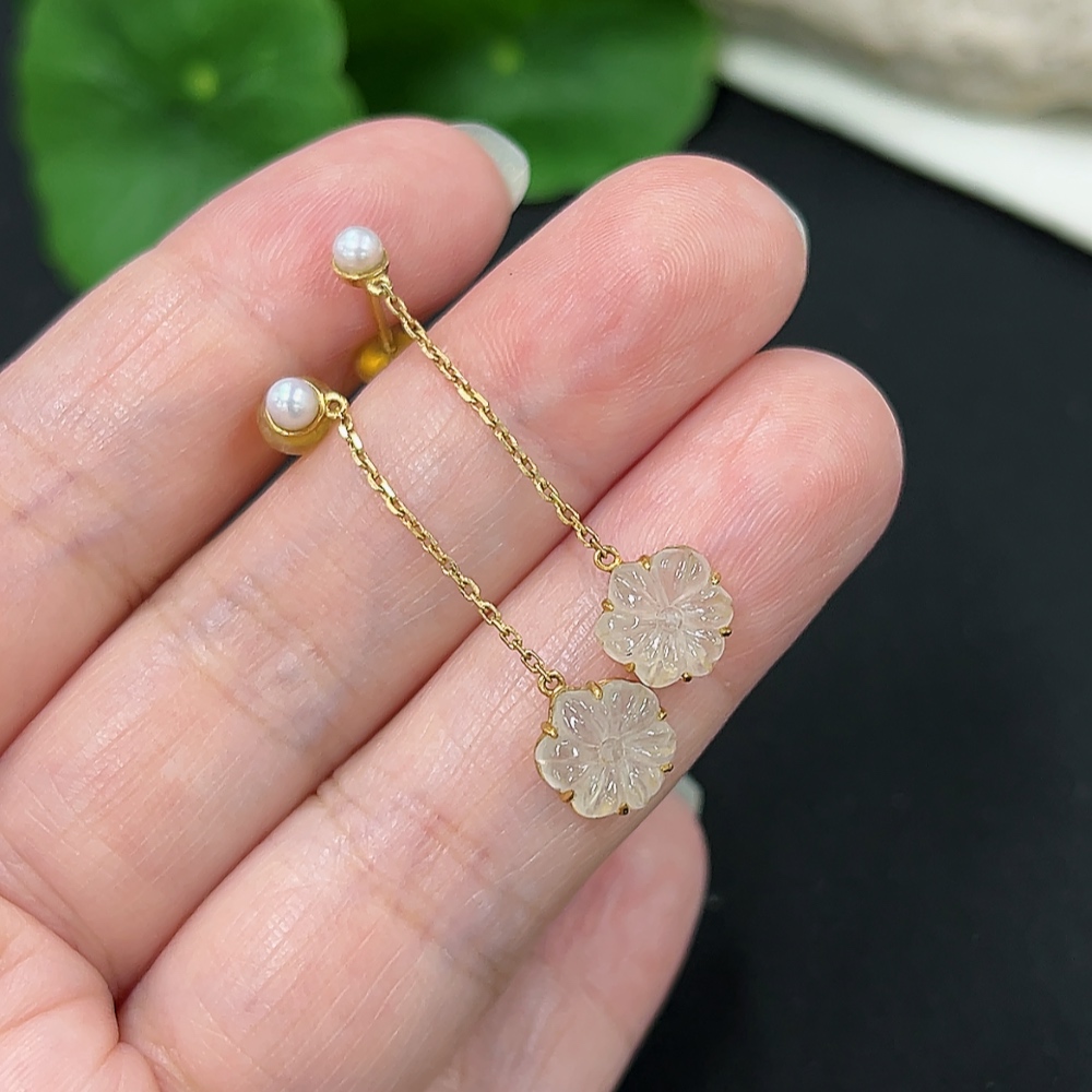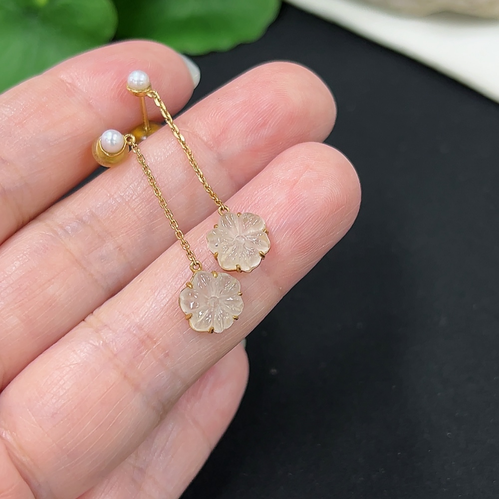 A pair of jadeite inlaid earrings with 18K gold, total weight approx. 1.6g (including ear stoppers) (with non-A grade beads)