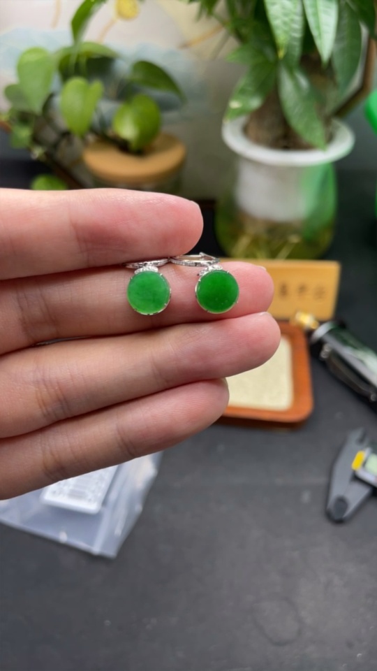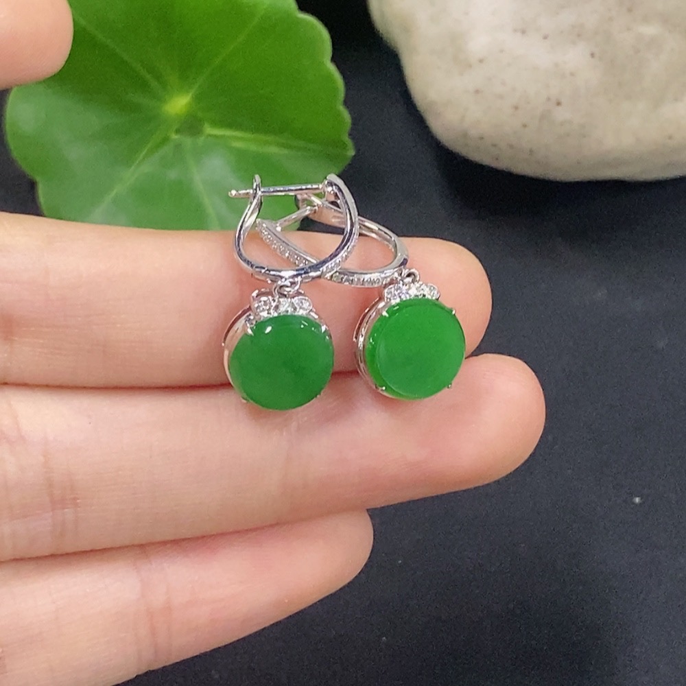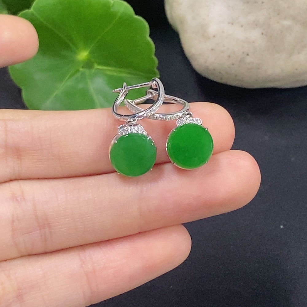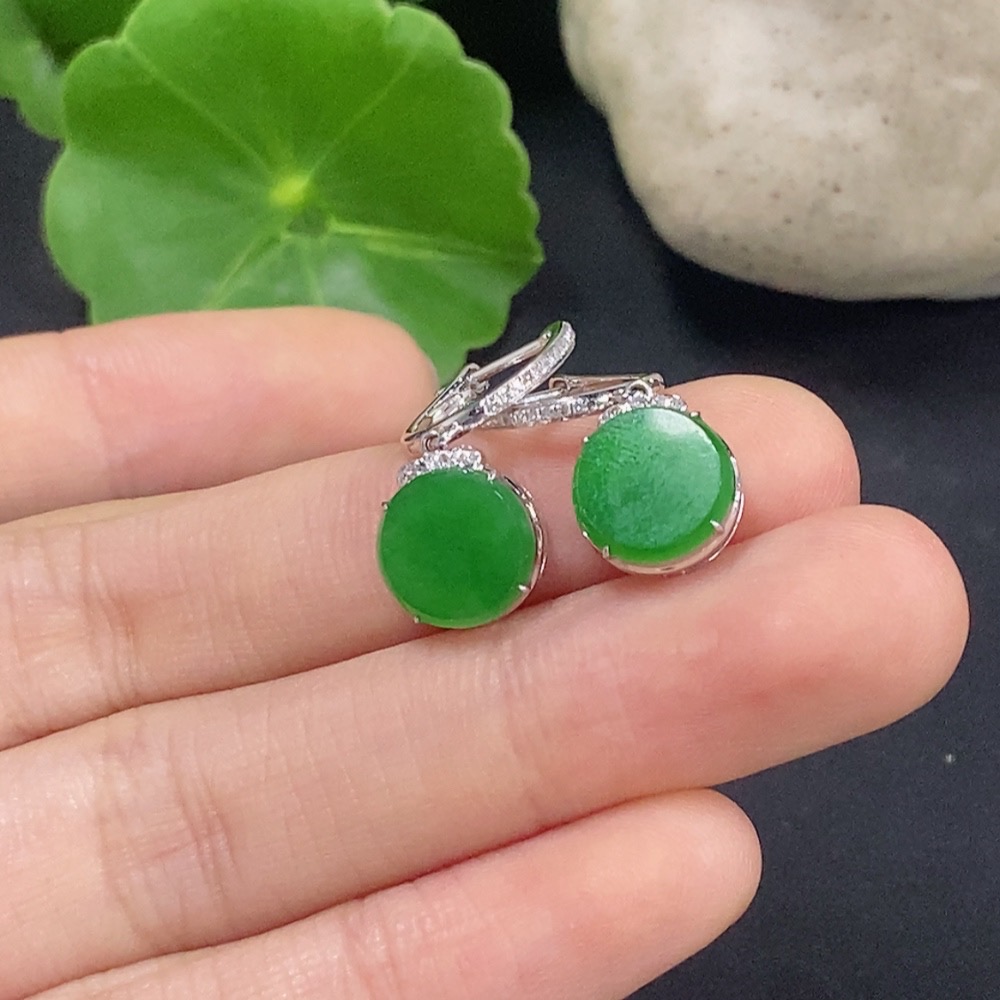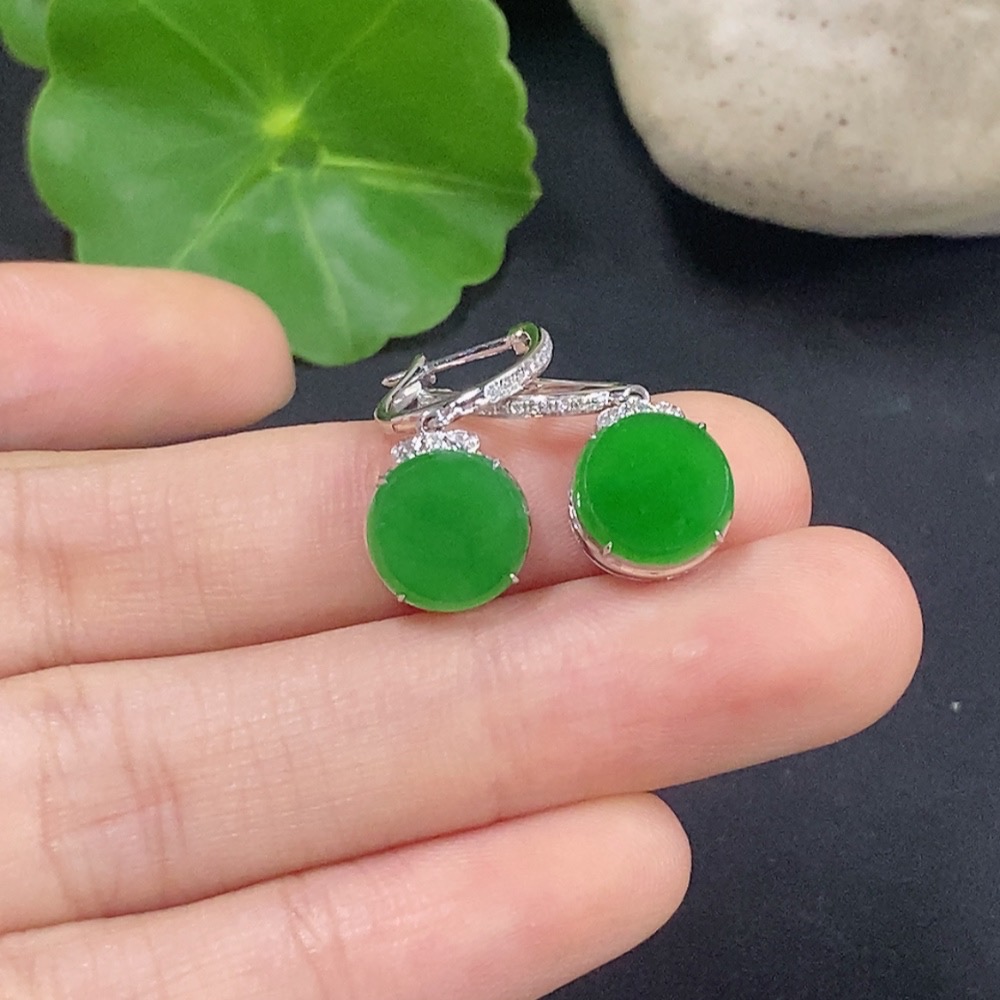 Jadeite Plain Pendant Earrings 18K Gold with Diamond Accents Total Weight Approx. 2.76g