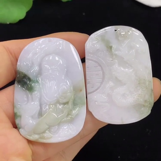 Jadeite Longevity God (with other mineral components) / Dragon Pendant Sell as a Lot